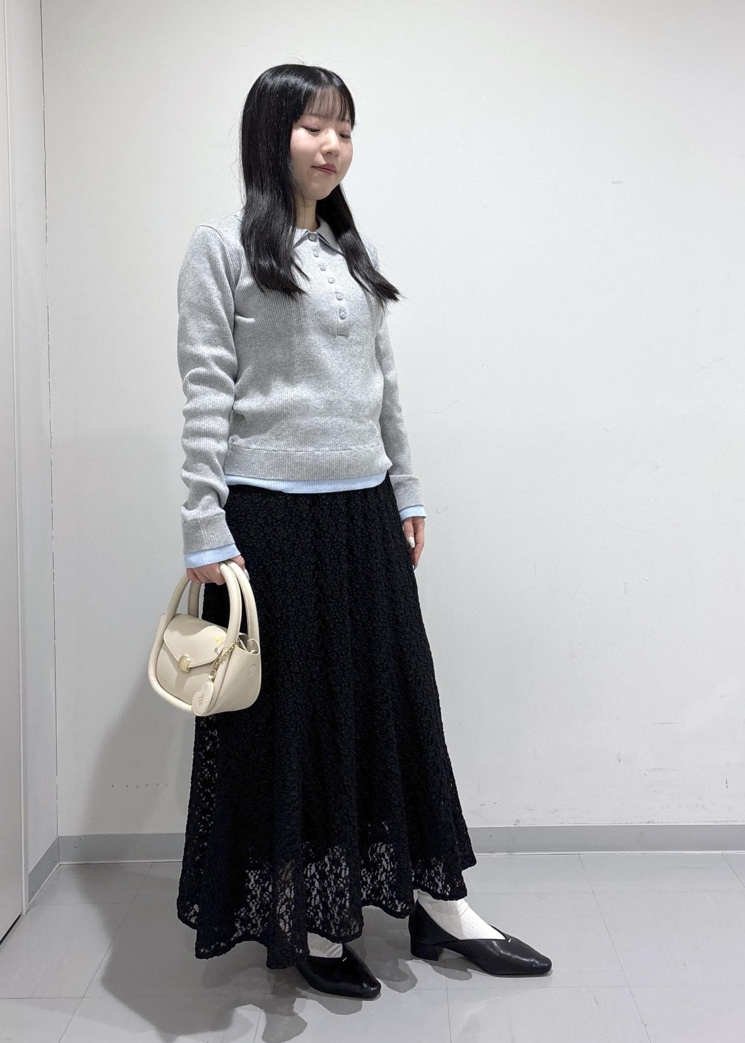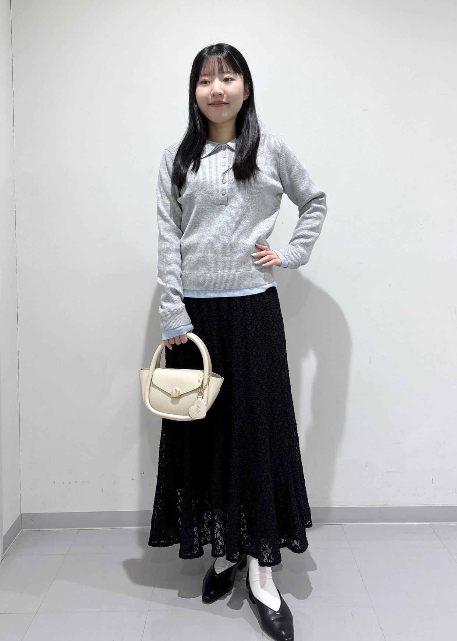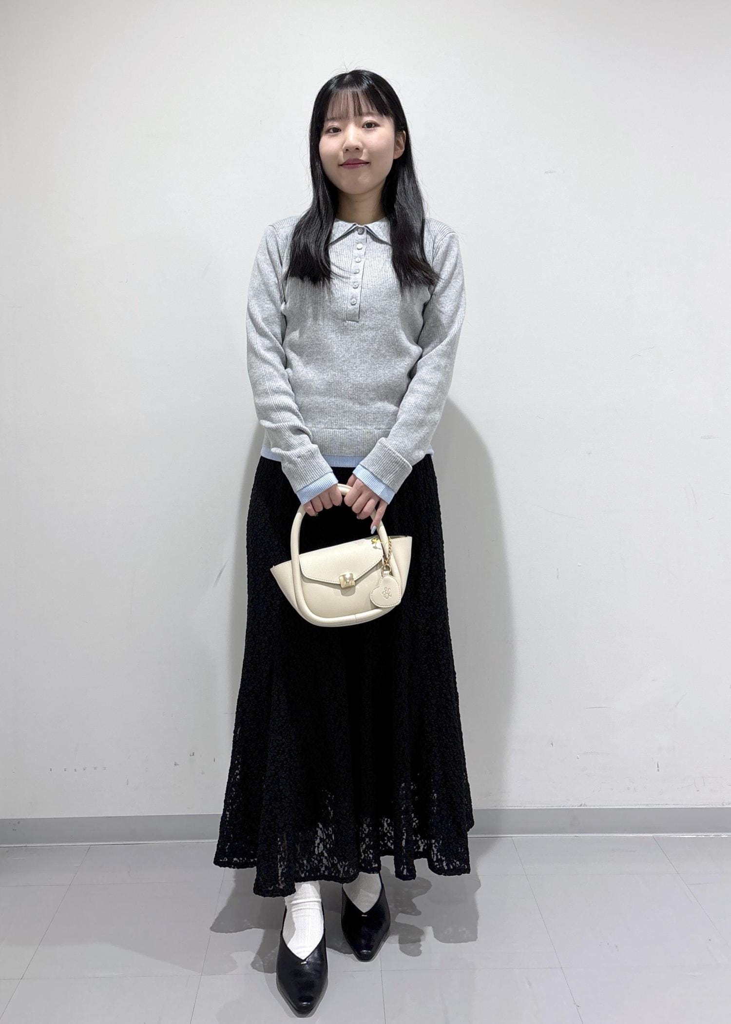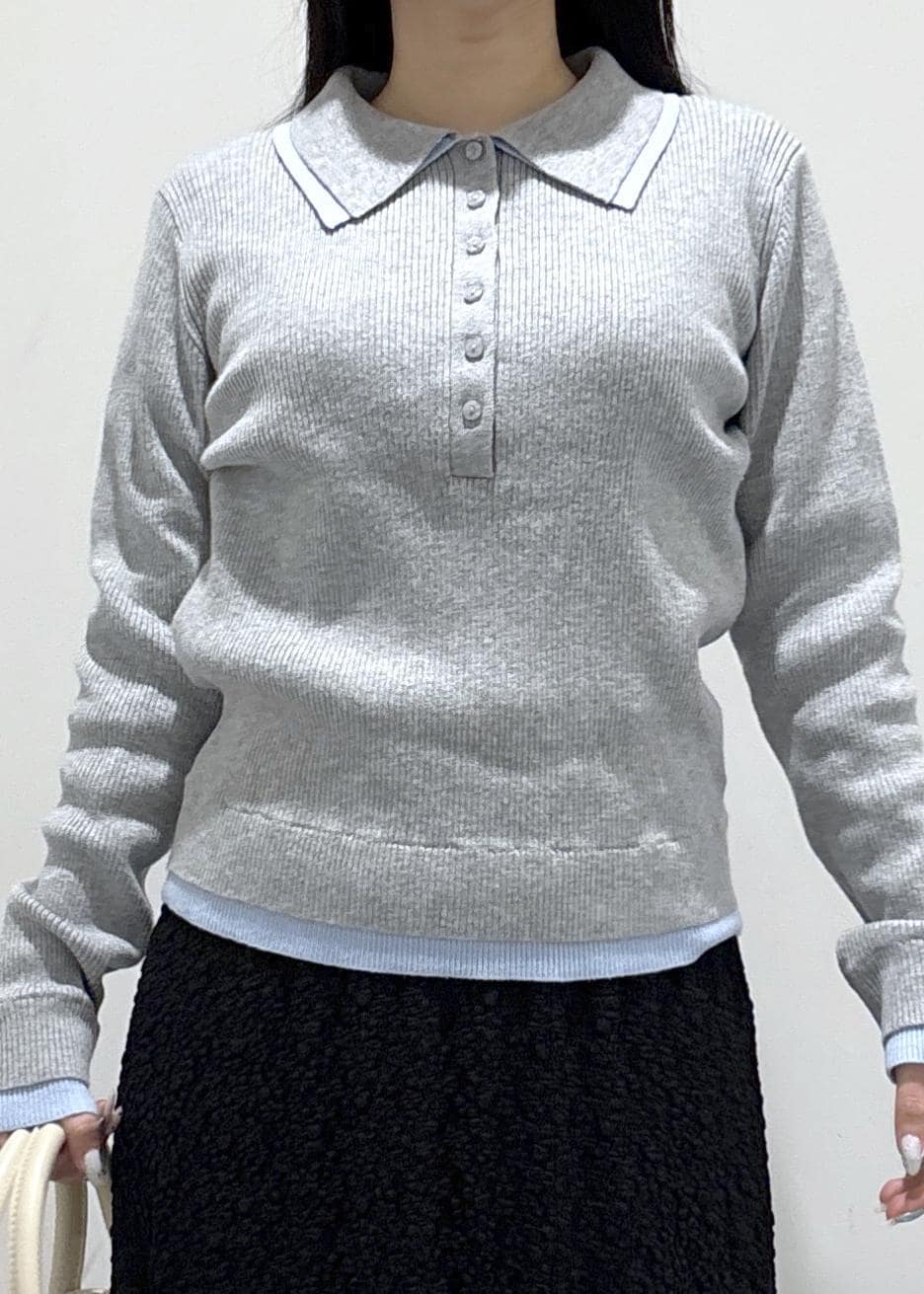 ROPÉ PICNICレイヤード風リブポロニットライトグレー / F¥5,489レビュー身体に程よくフィットするサイズ感で、縦ラインのリブが入っているのですっきりしてみえます。