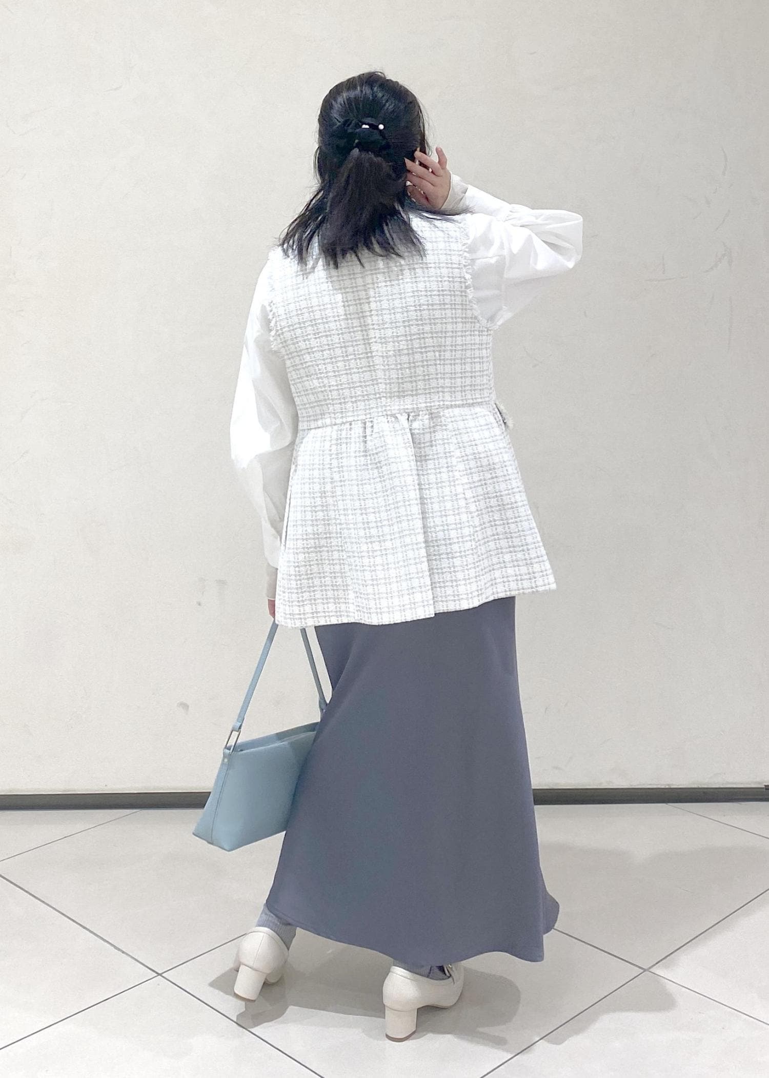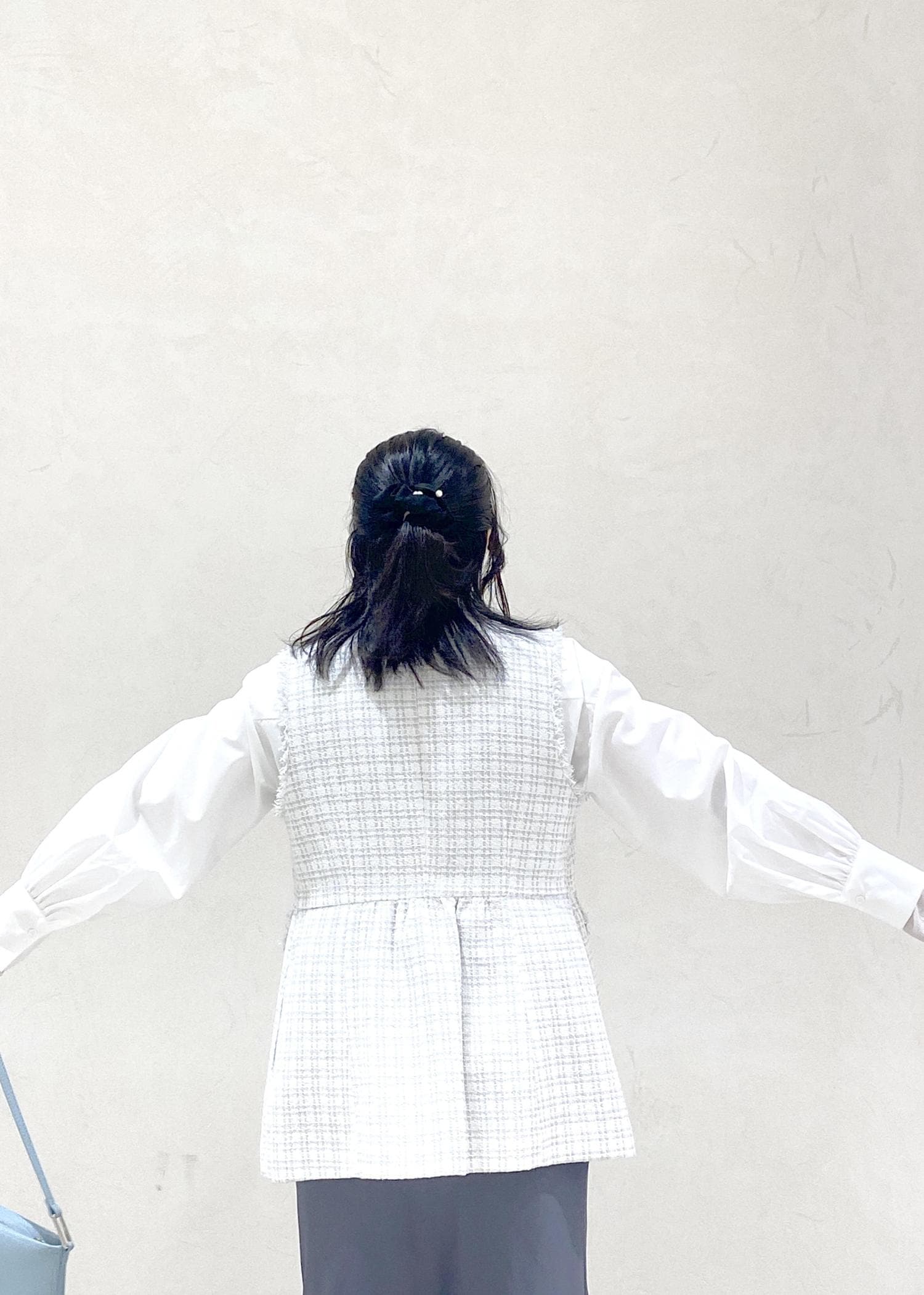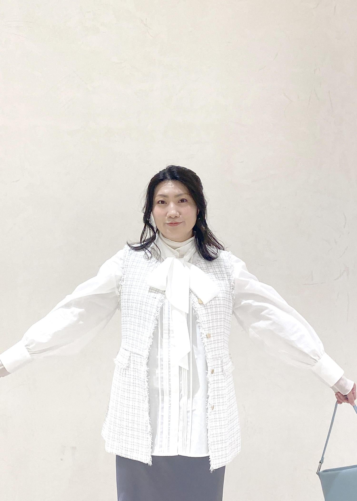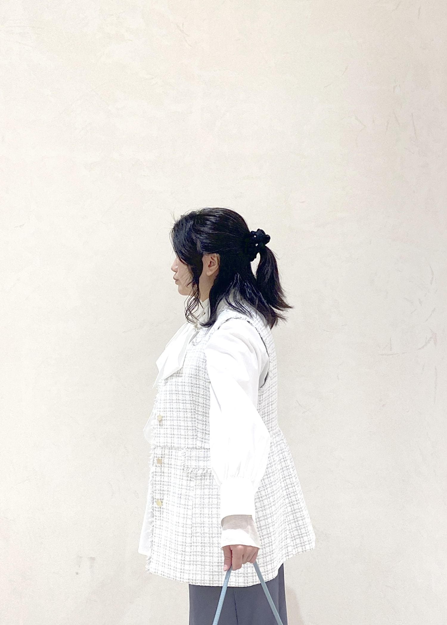 ROPÉ PICNIC【WEB限定カラー】ツイード金ボタンジレベスト/セレモニー対応・リンクコーデライトグレー / F¥8,998レビューヒップラインの隠れる長さでボトムも問わずに合わせられるアイテム。伸縮性はないが脇下はピタピタすぎないサイズ感でジャケットのパリパリ感が苦手な方も挑戦しやすいです