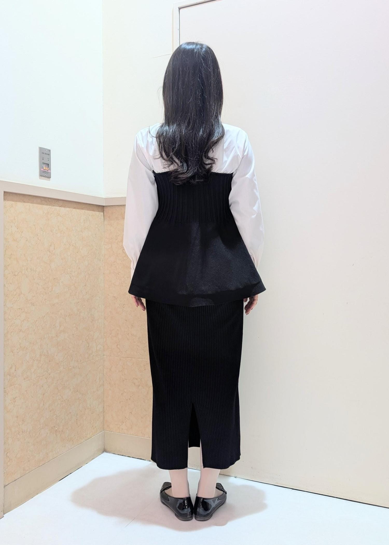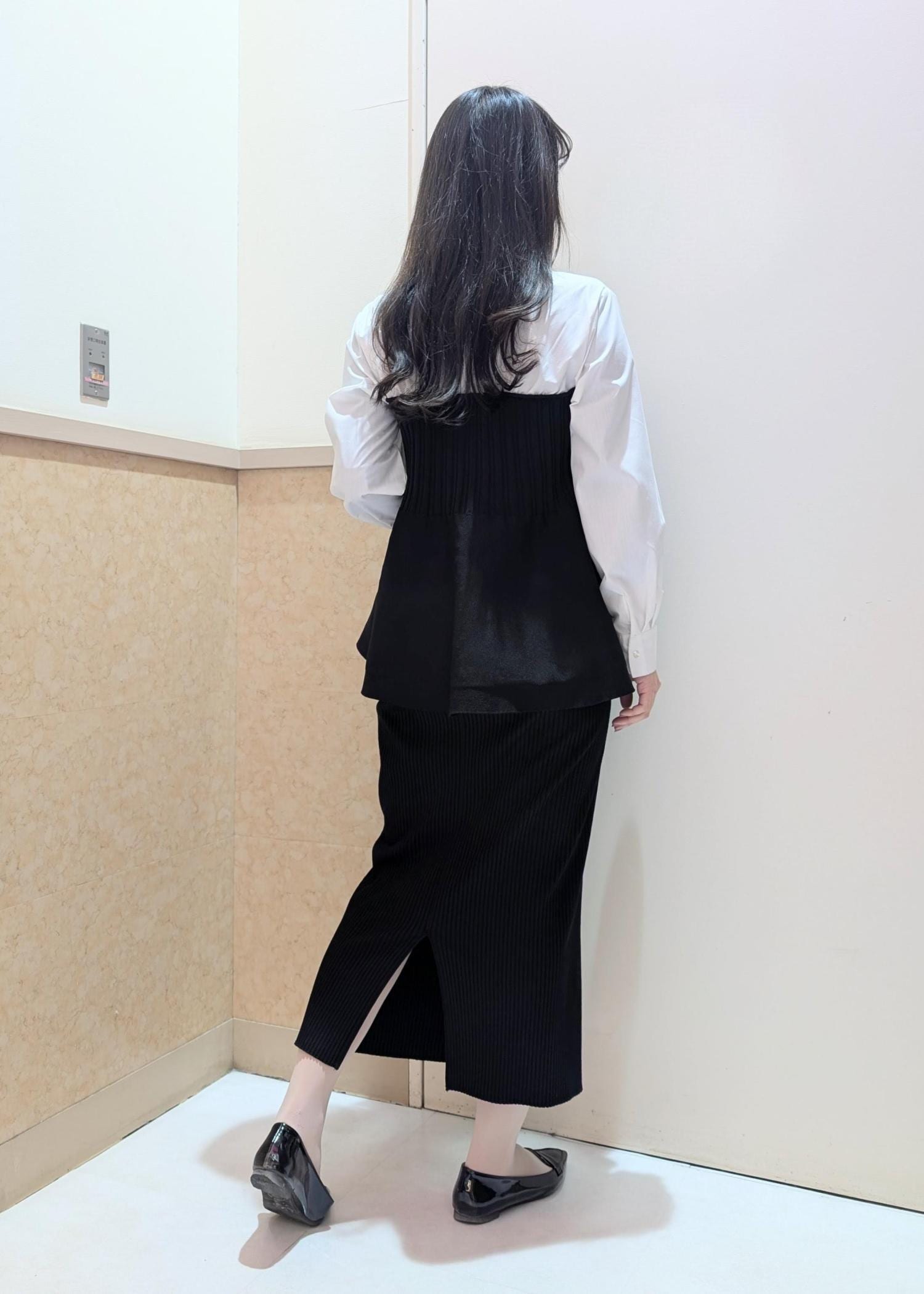 ROPÉ PICNICトタンテレコ Iラインリブニットスカートブラック / M¥4,994レビュー私は骨格ウェーブで腰が張っているのでタイトスカートは大体40サイズですが、こちらは38サイズでも履けました!