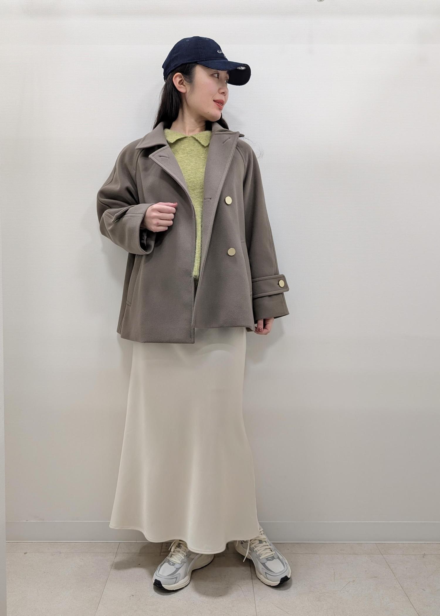 ROPÉ PICNICジャージーメルトンシリーズ 金ボタンミドル丈コート/リンクコーデブラウン系 / F¥6,593レビューアームホール、身幅ともにゆったりしています。