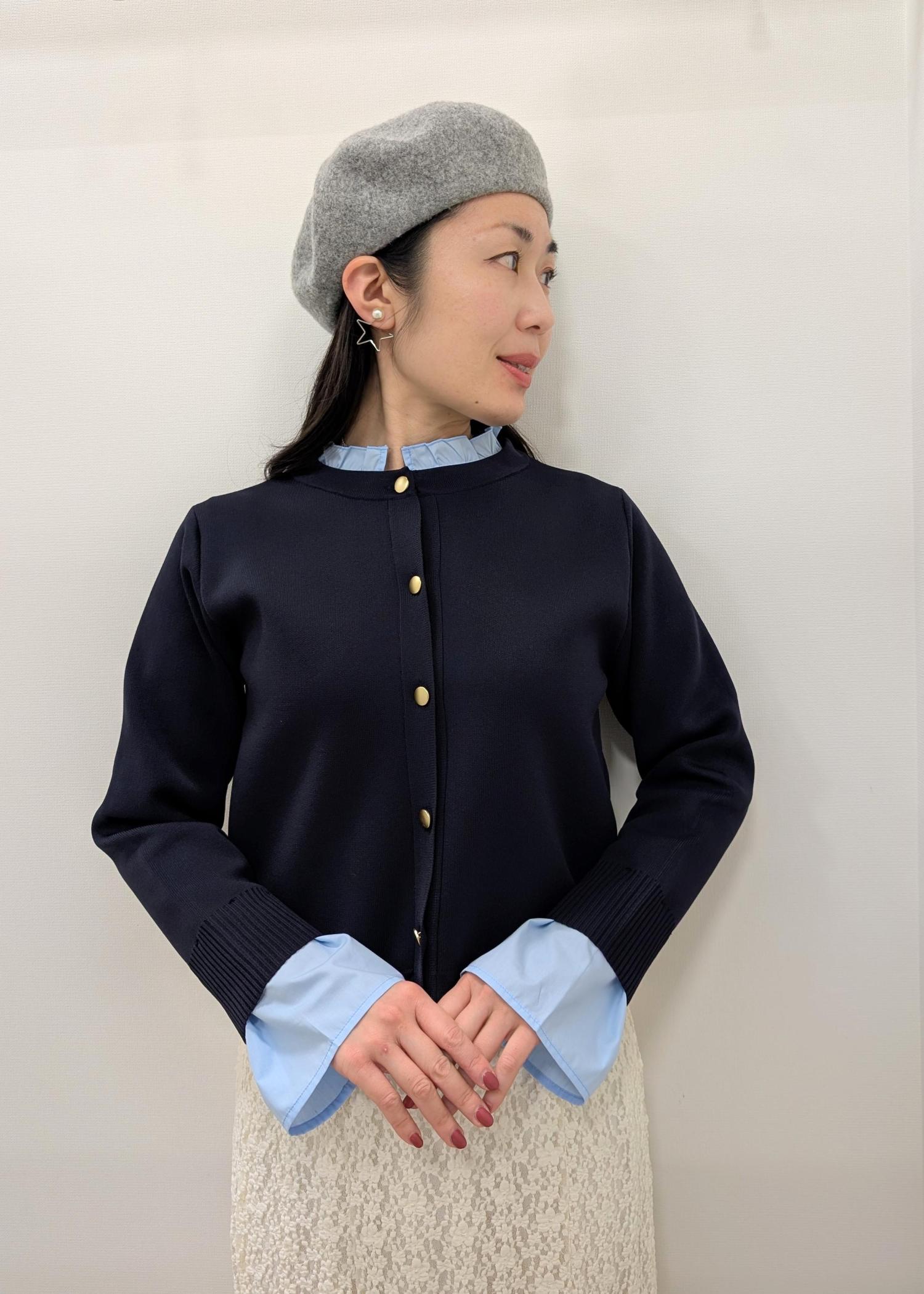 ROPÉ PICNIC襟フリルドッキングカーディガンネイビー / F¥5,995レビューアームホール、身幅ともにゆったりめです。