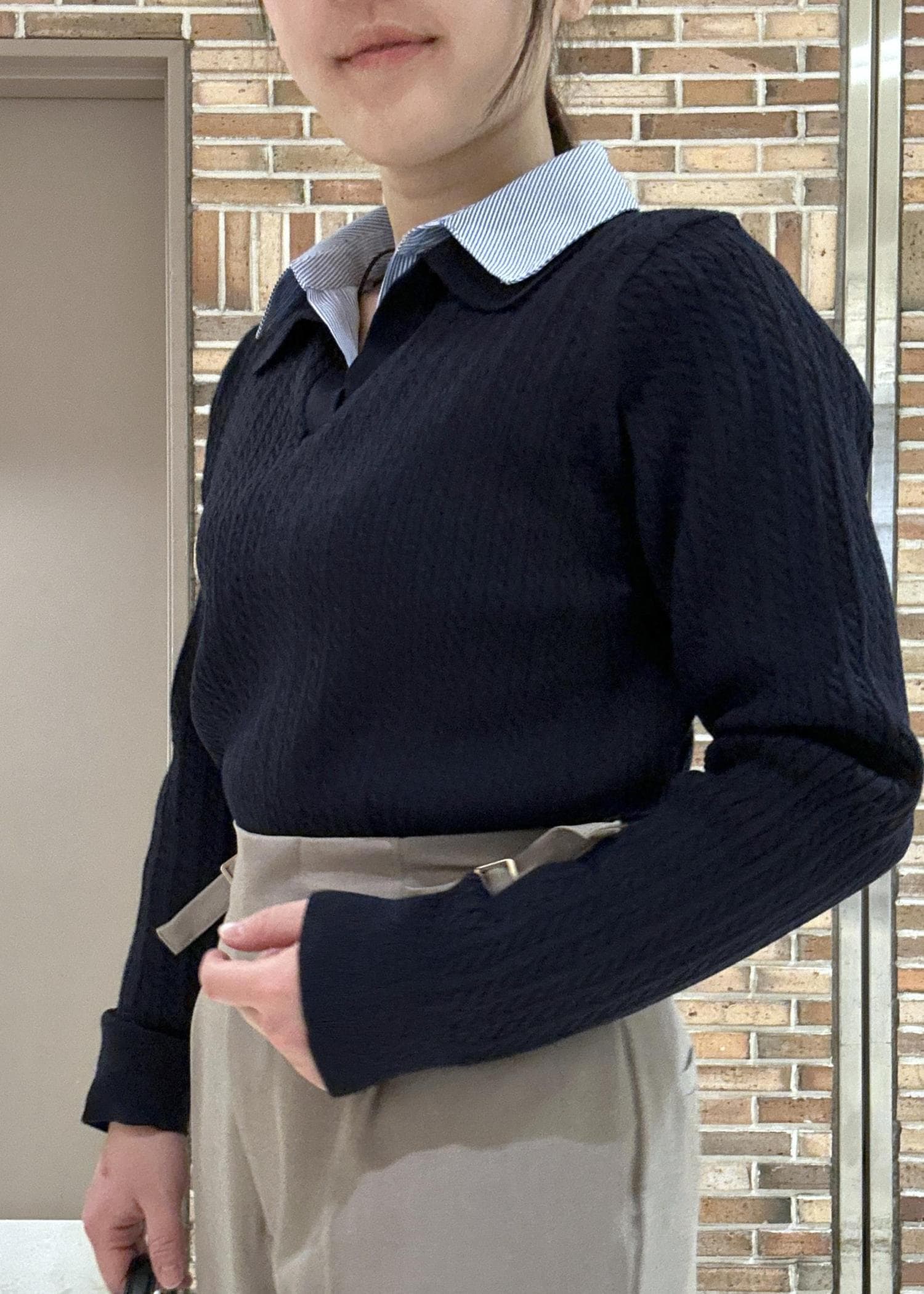 ROPÉ PICNICダブルカラーミニケーブルニットネイビー / F¥5,995レビューレイヤード風がおしゃれなニット。