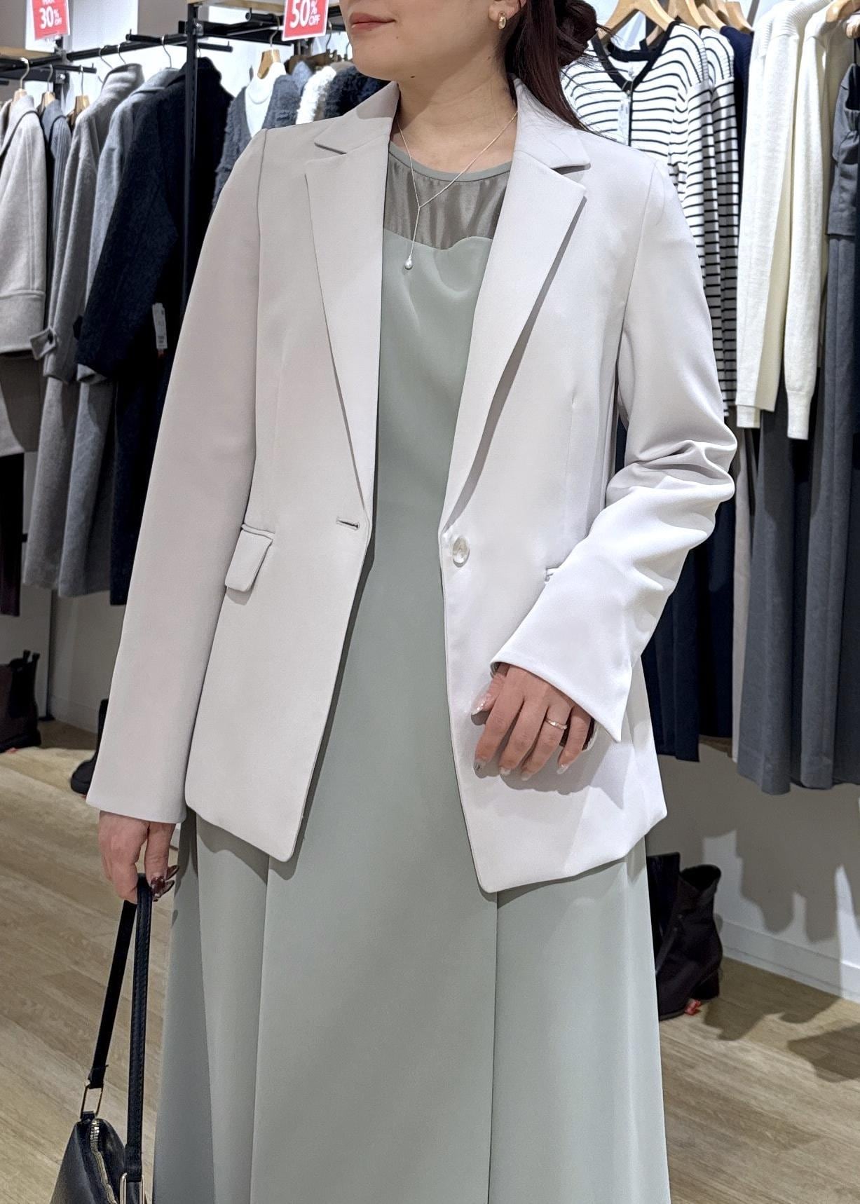 セレモニーシーンに使えるワンピースにジャケットを合わせて