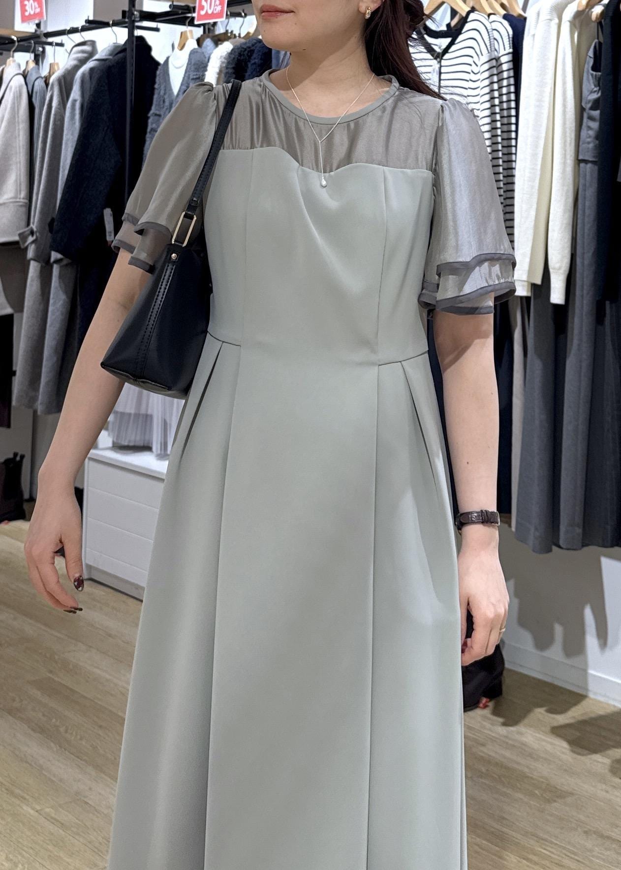 シアー部分も透けすぎない程よい透け感で、肌に近い色のインナーを合わせれば、透け感気にしすぎずに着用できます。