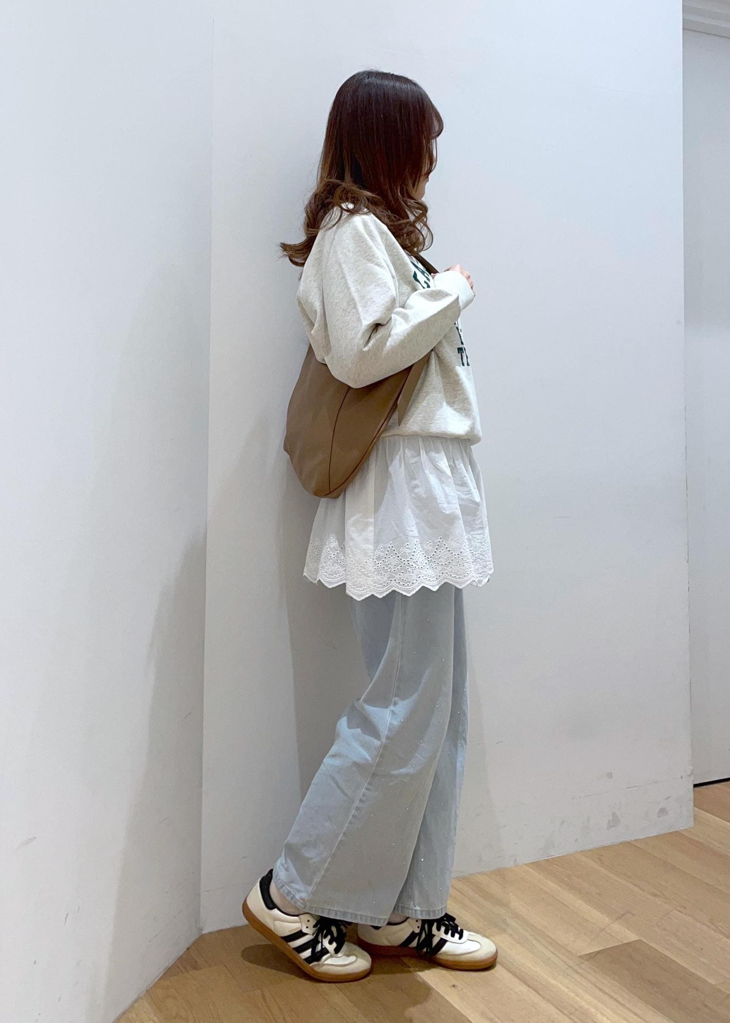 オーバーサイズなのでレイヤードがしやすいです。 -