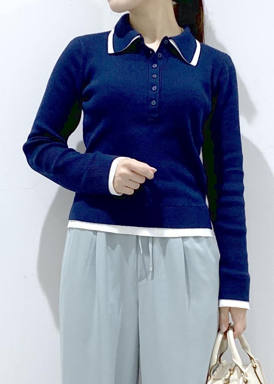 ROPÉ PICNICレイヤード風リブポロニットネイビー / F¥5,489レビュー1枚で重ね着風に見えるポロニットです。