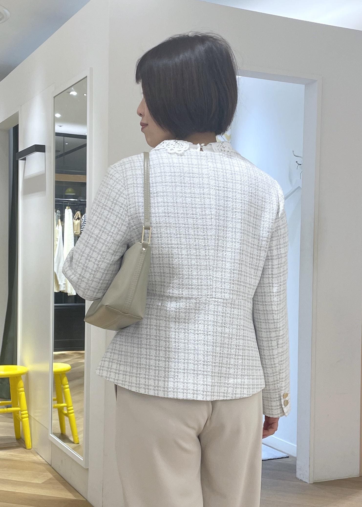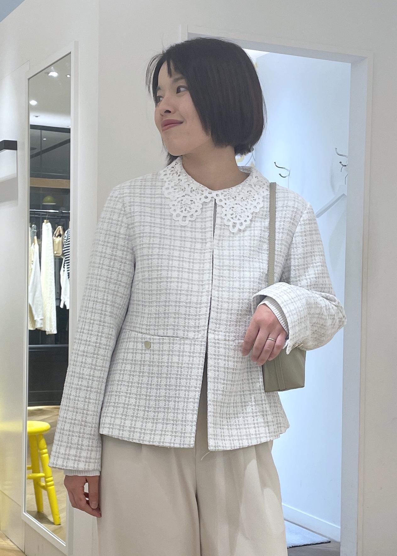 ROPÉ PICNIC【WEB限定カラー】ツイードフレアジャケット/セレモニー対応・リンクコーデライトグレー / M¥10,989レビュー軽く柔らかくツイード素材のジャケットで、羽織り心地も良いです。裾がペプラムシルエットになっているので腰回りなどをカバーしてくれます。着丈はヒップに掛かるくらいの長さで、身頃は程良くゆとりもあり、薄めのニットもインナーに合わせることができます。