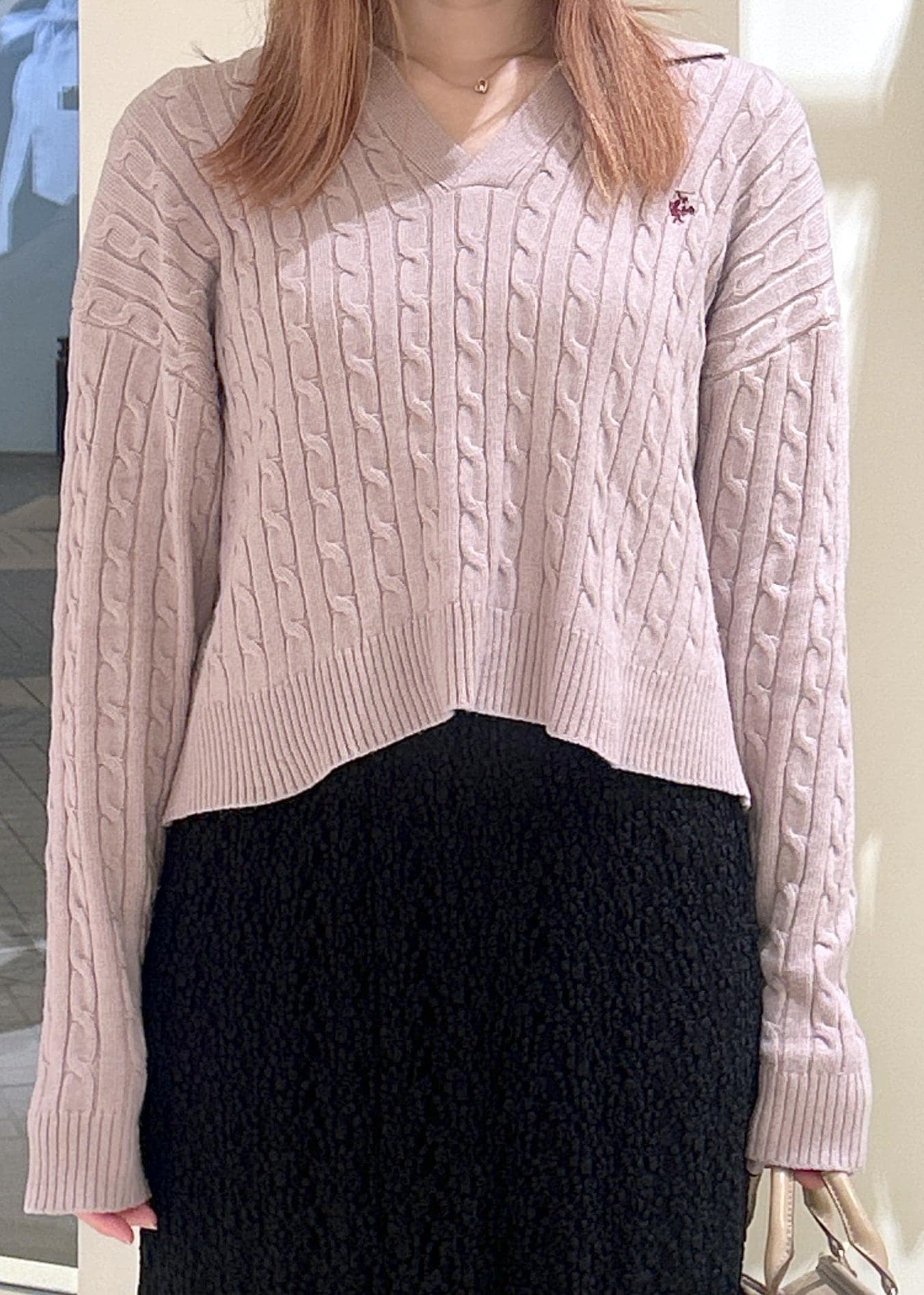 ROPÉ PICNIC【BEVERLYHILLS POLO CLUB・新色追加】ケーブル編みクロップドスキッパーニットベージュ / F¥5,995レビュースキッパーデザインなので抜け感が出てすっきりとした印象で着ていただけます!