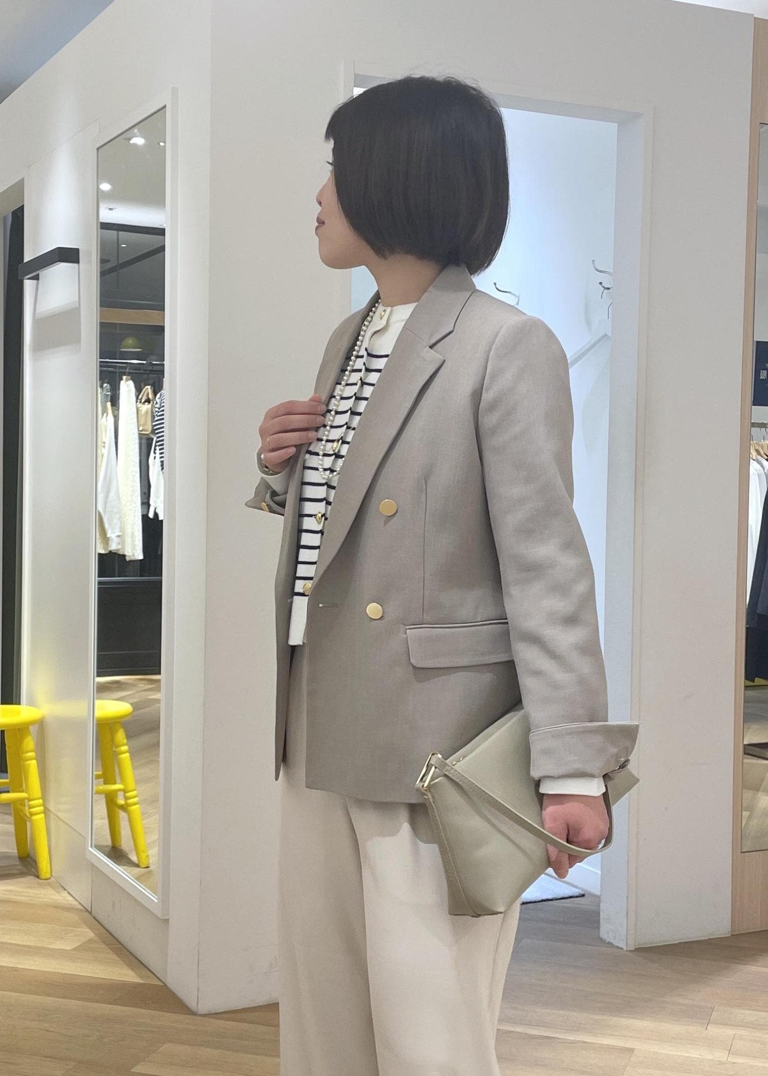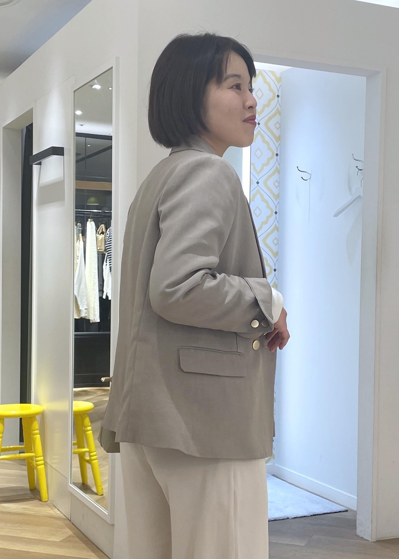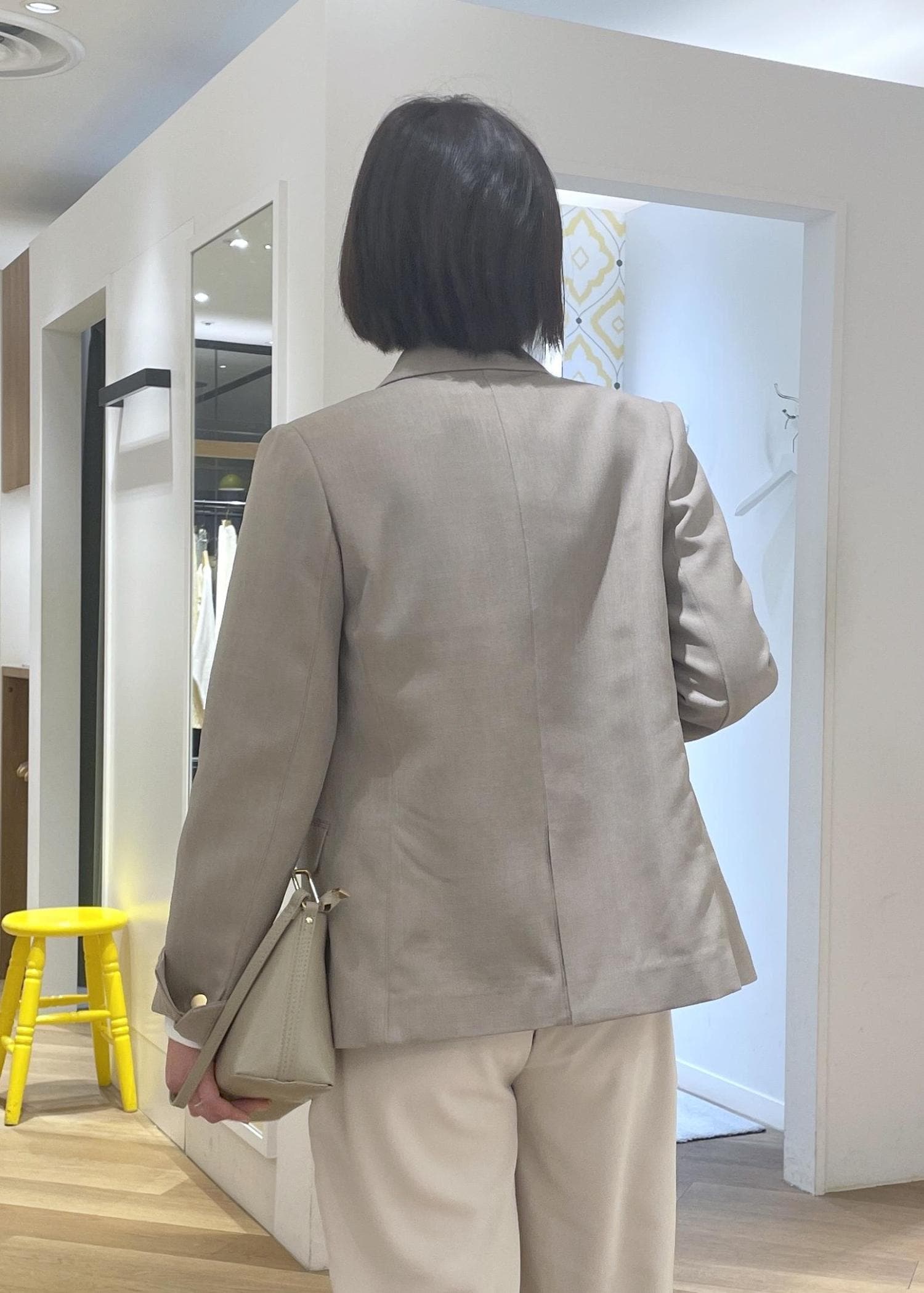 ROPÉ PICNICクリアツイル金ボタンジャケット/セレモニー・セットアップ対応ベージュ系 / L¥8,098レビューハリがあり、ほんのり光沢感のある素材のジャケットです。少しゆったりめでカジュアルな雰囲気で着用したかったので、今回はLサイズを着用しています。着丈はヒップに掛かる長さで、身頃も程良くゆとりがありました。