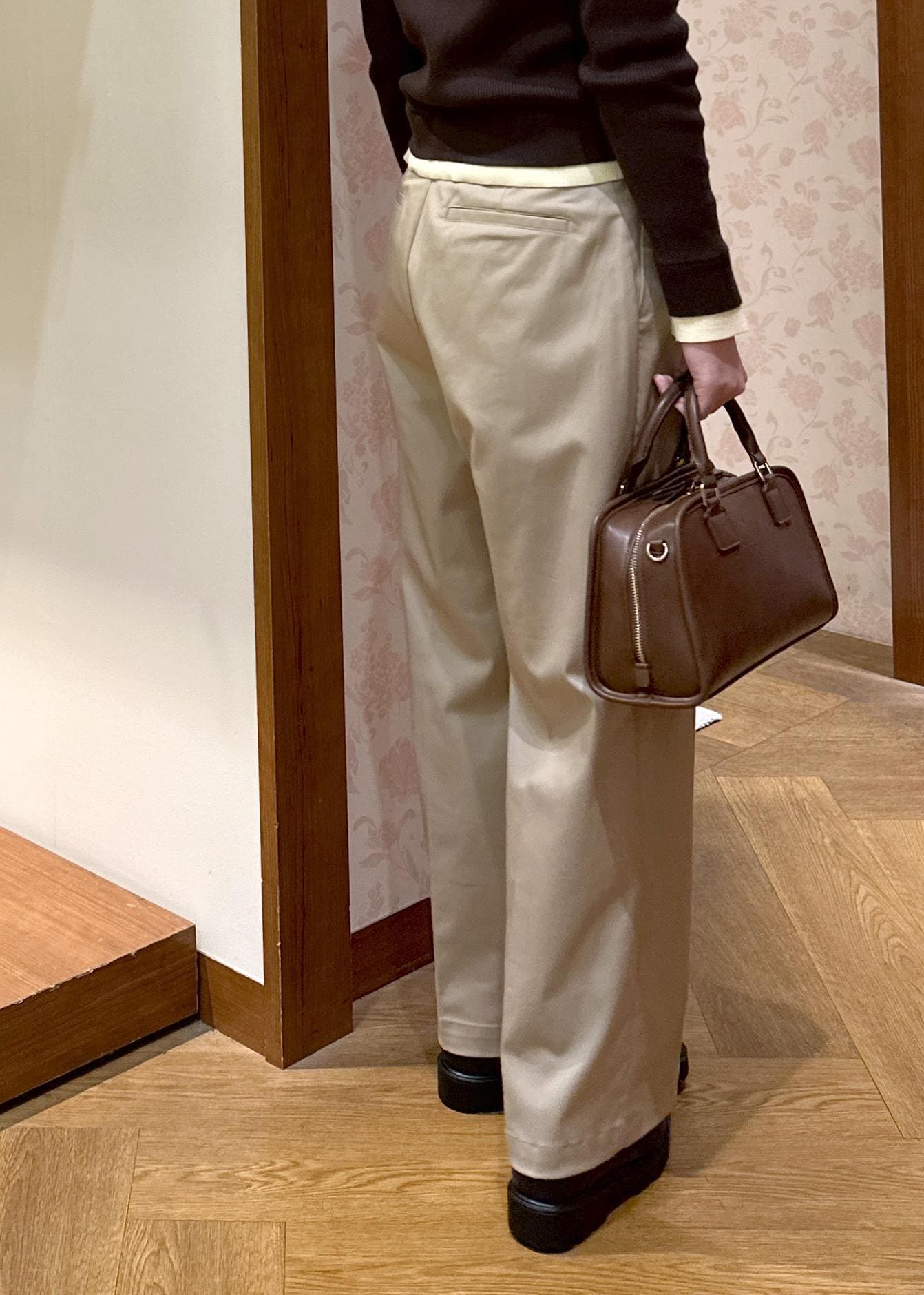 ROPÉ PICNICウエストタックチノパンツベージュ / M¥6,490レビューウエストにゴムが入ってないないので、ゴムが苦手な方にもおすすめです。腰回りがふんわりしたシルエットなので体型カバーしたい方にも◎