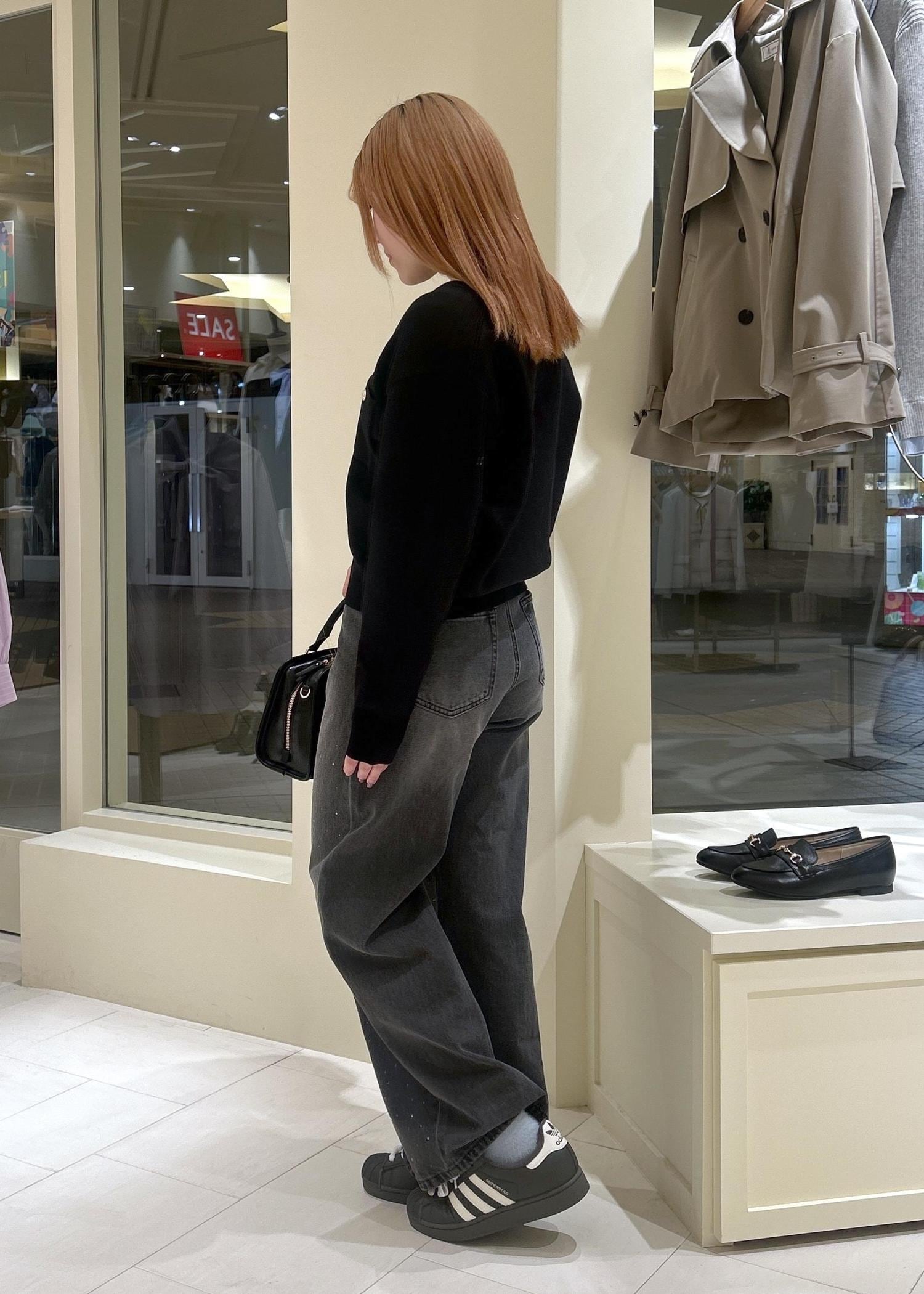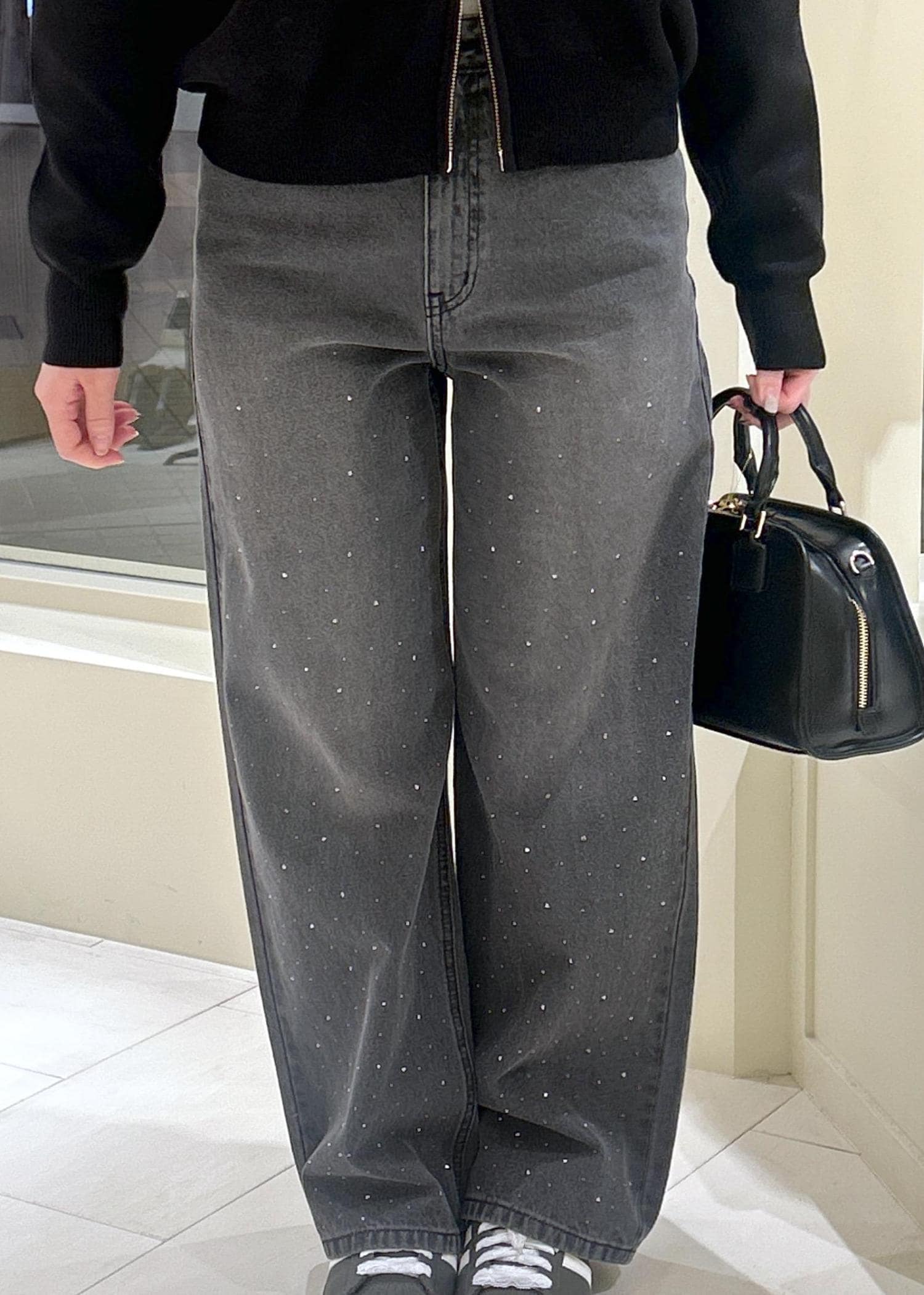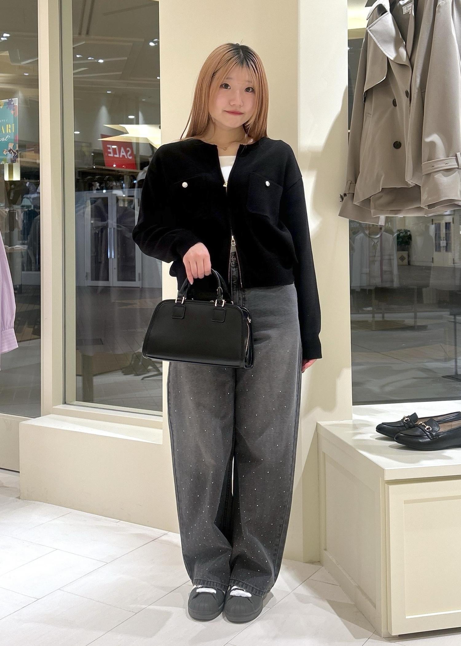 ブラックワントーンでまとめてますがダブルジップで抜け感を出したり、キラキラビジューデニムを合わせることで暗くなり過ぎないようにしました!