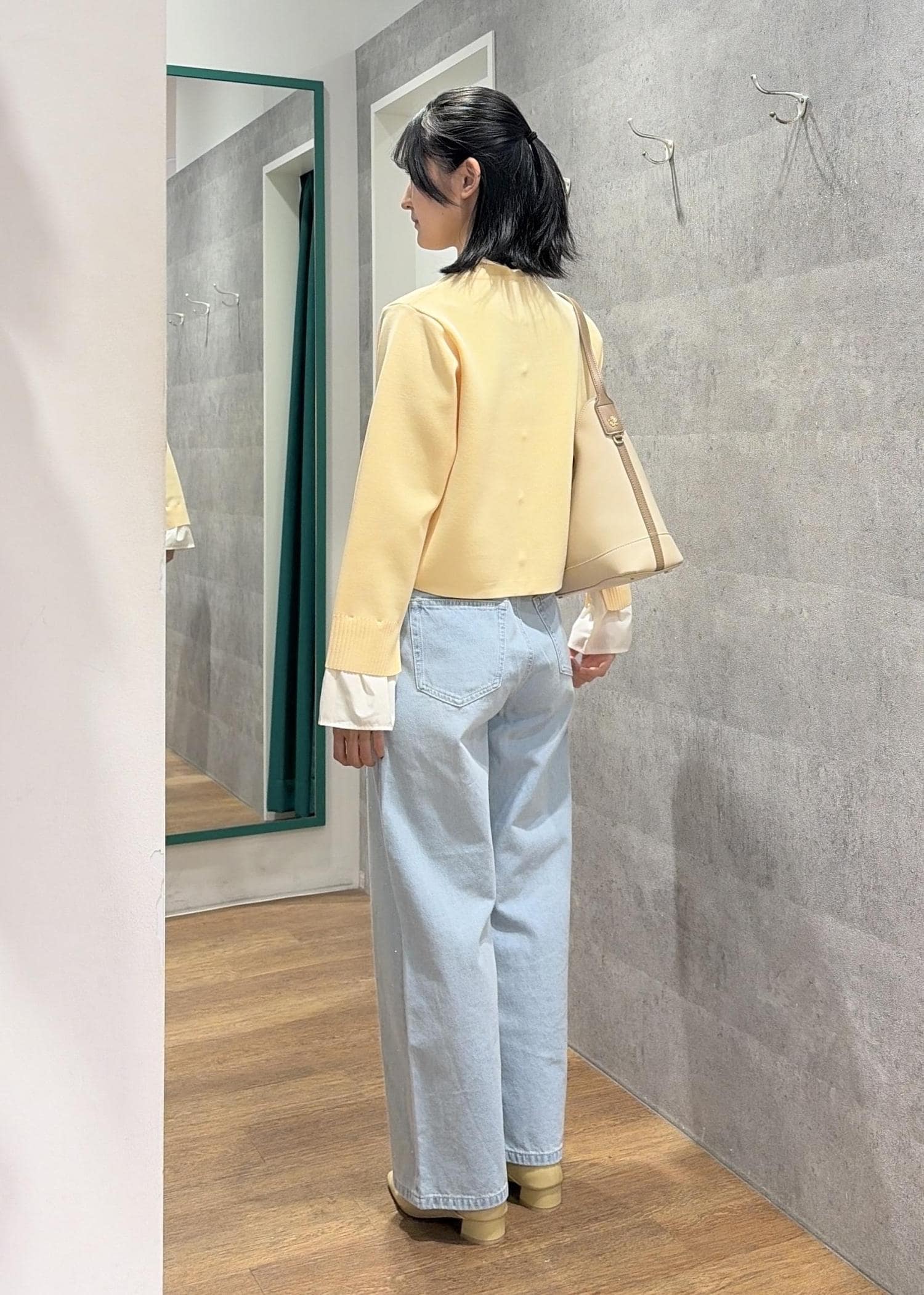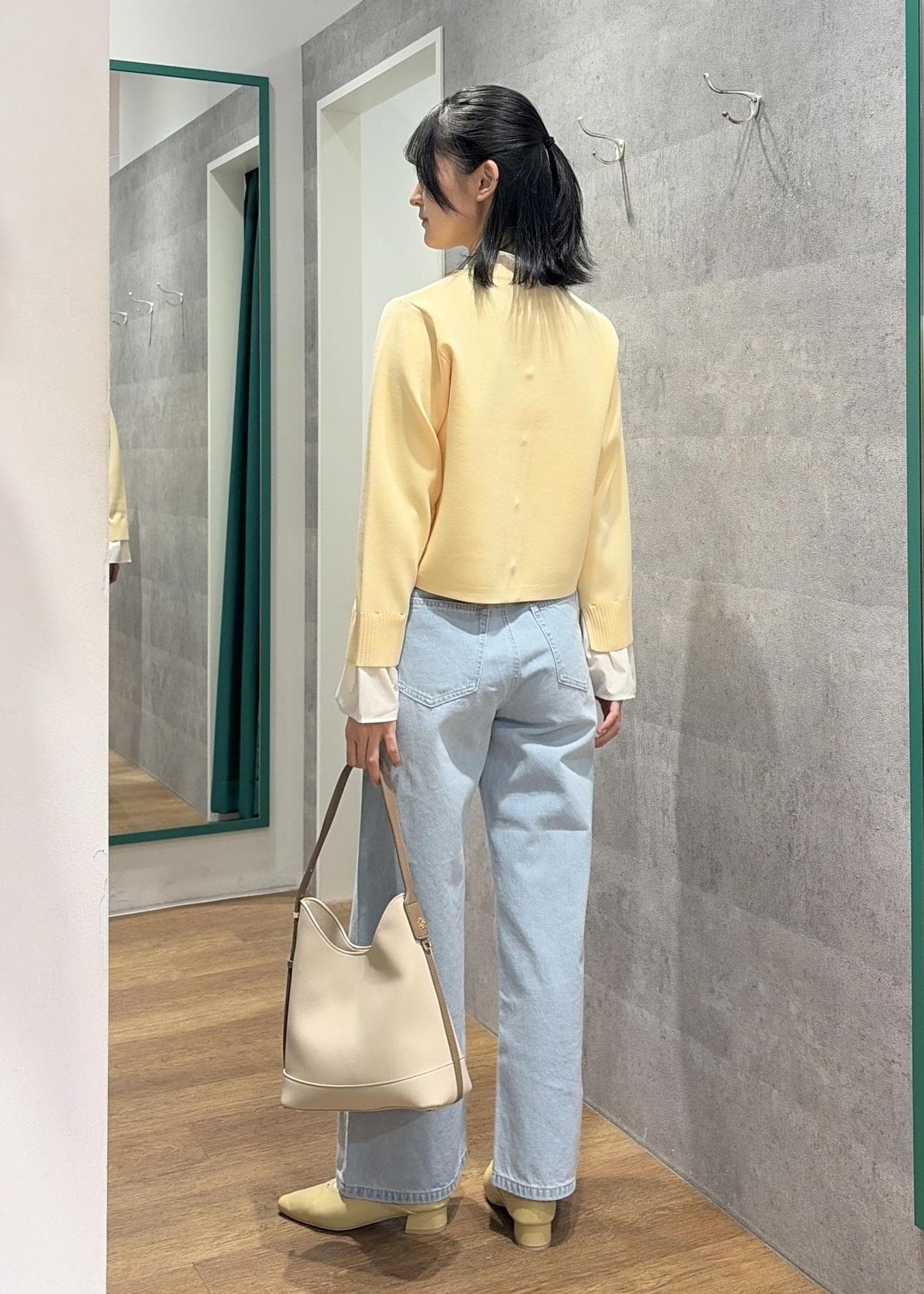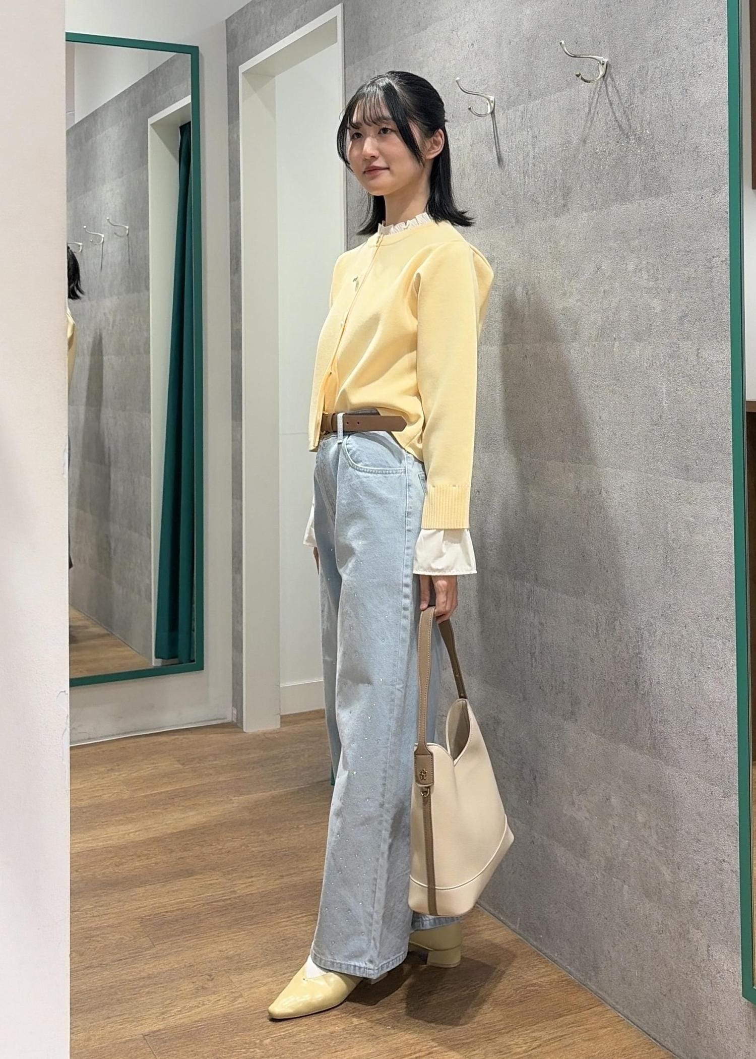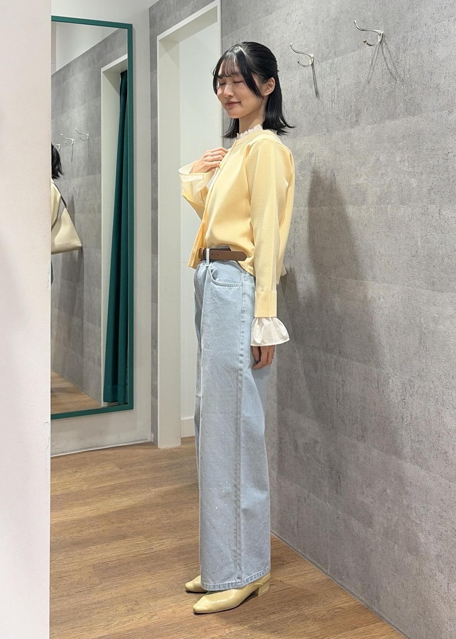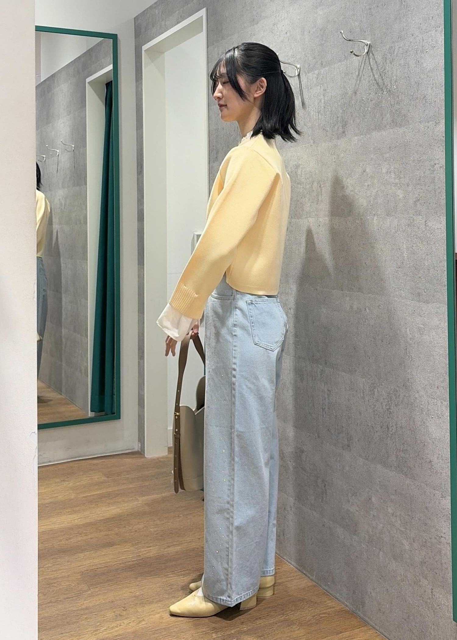 イエローとライトブルーで春らしい明るいコーデにしました。