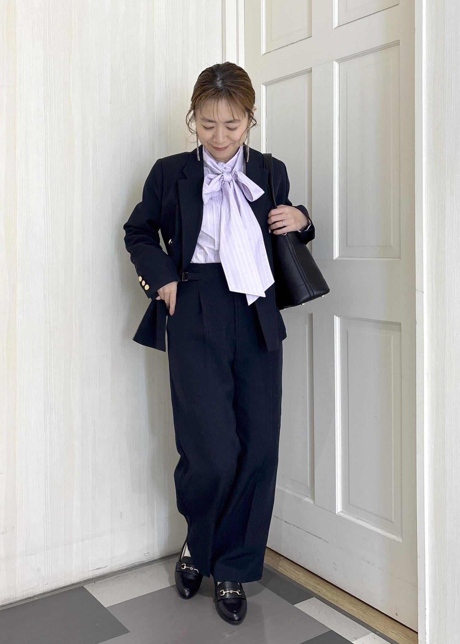 春の重ね着に大活躍のブラウスです。ボウタイはボリュームもあるので、白を選べばセレモニーにも華やかになり、ピンクはオフィス向けに明るさを取り入れる何もぴったりですよ◎