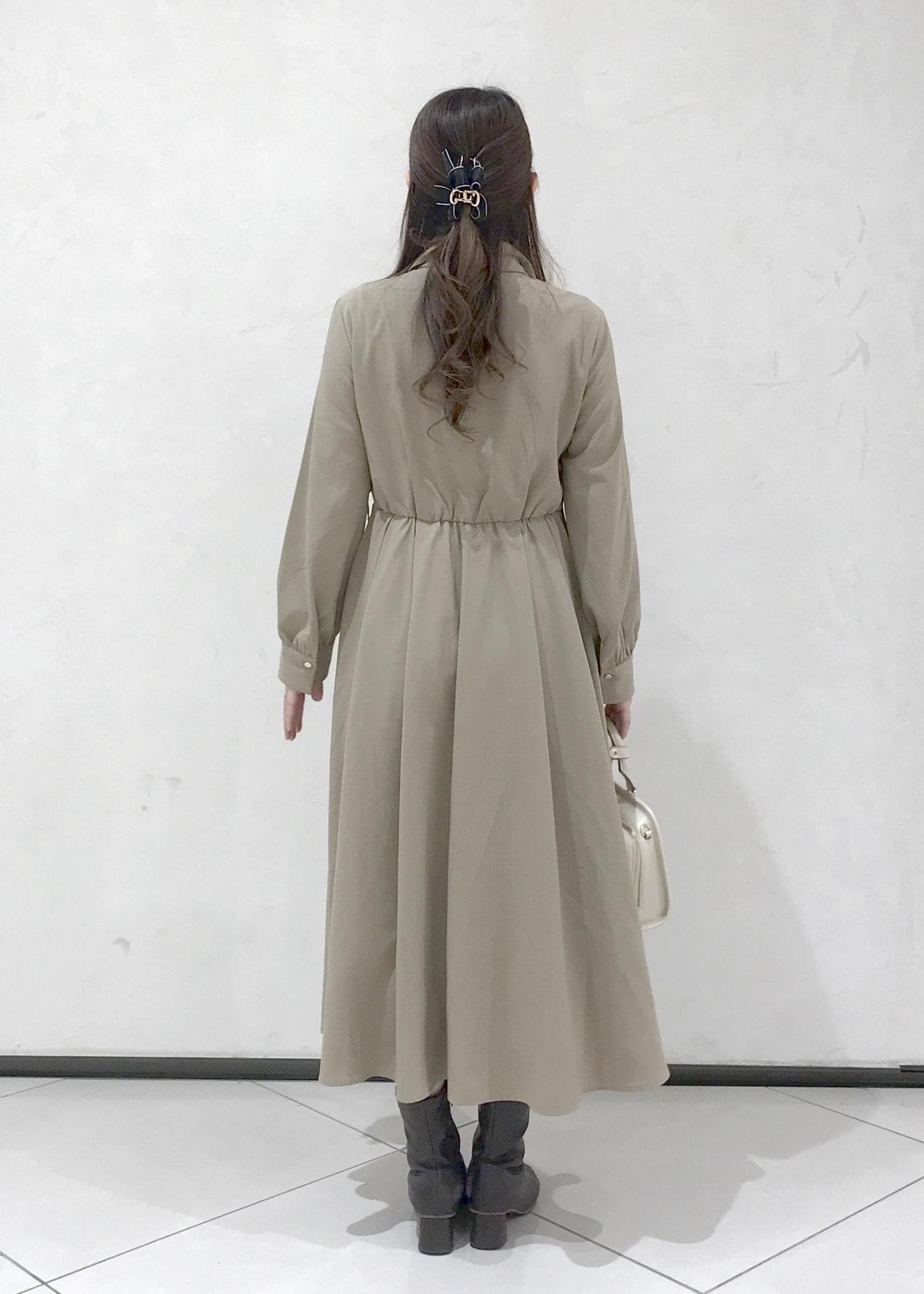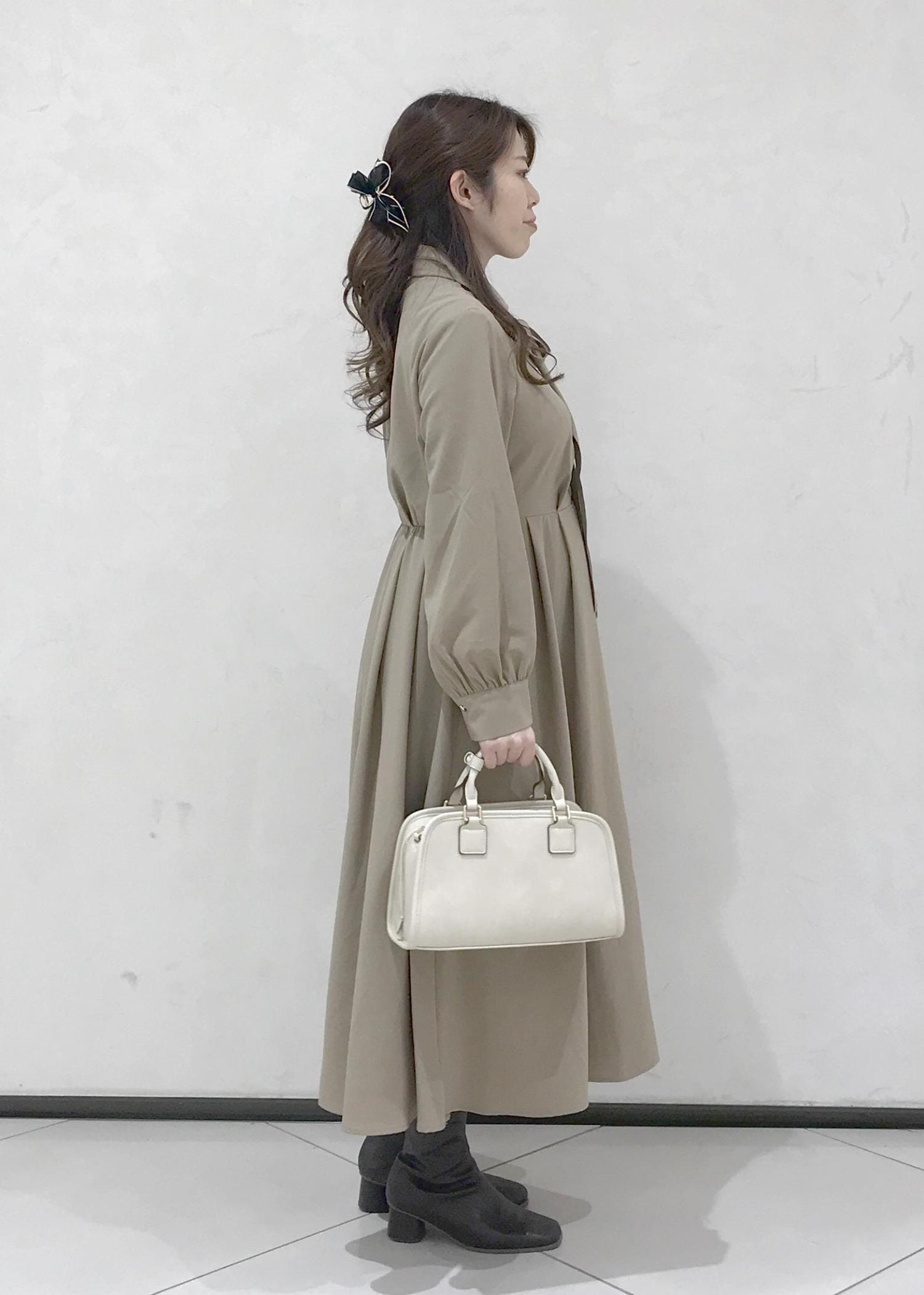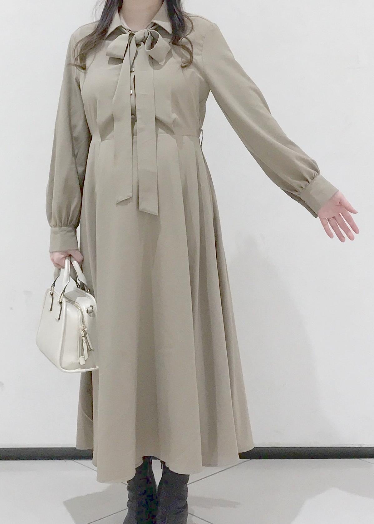 ベージュのワンピースコーデ