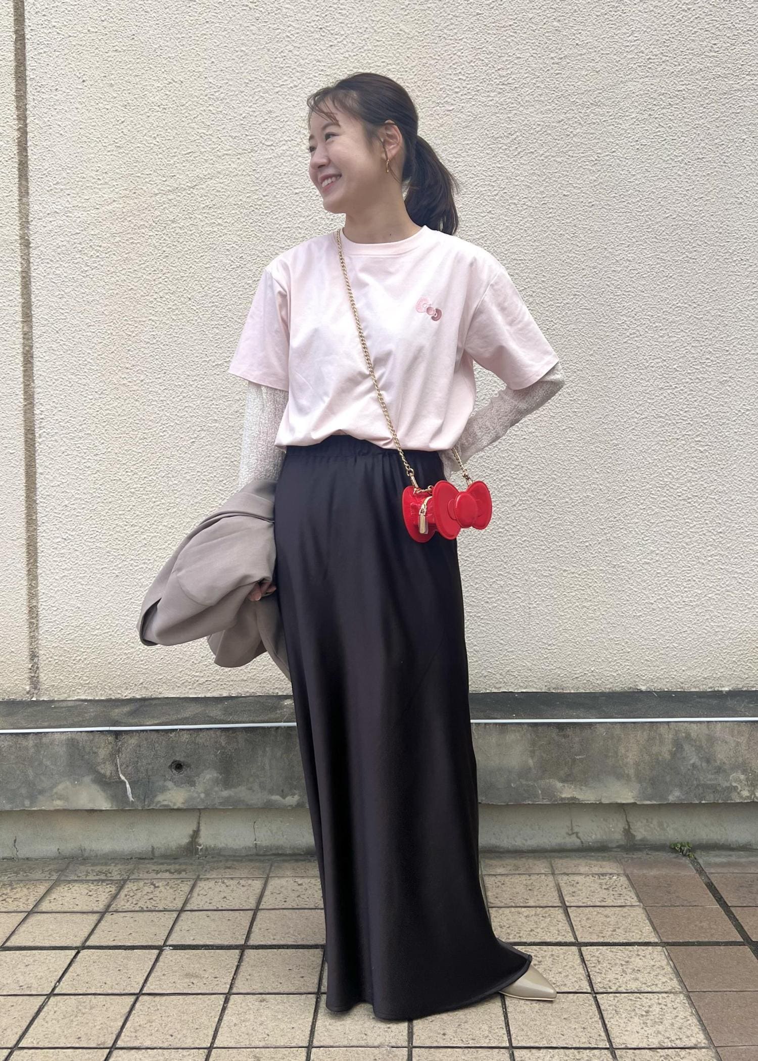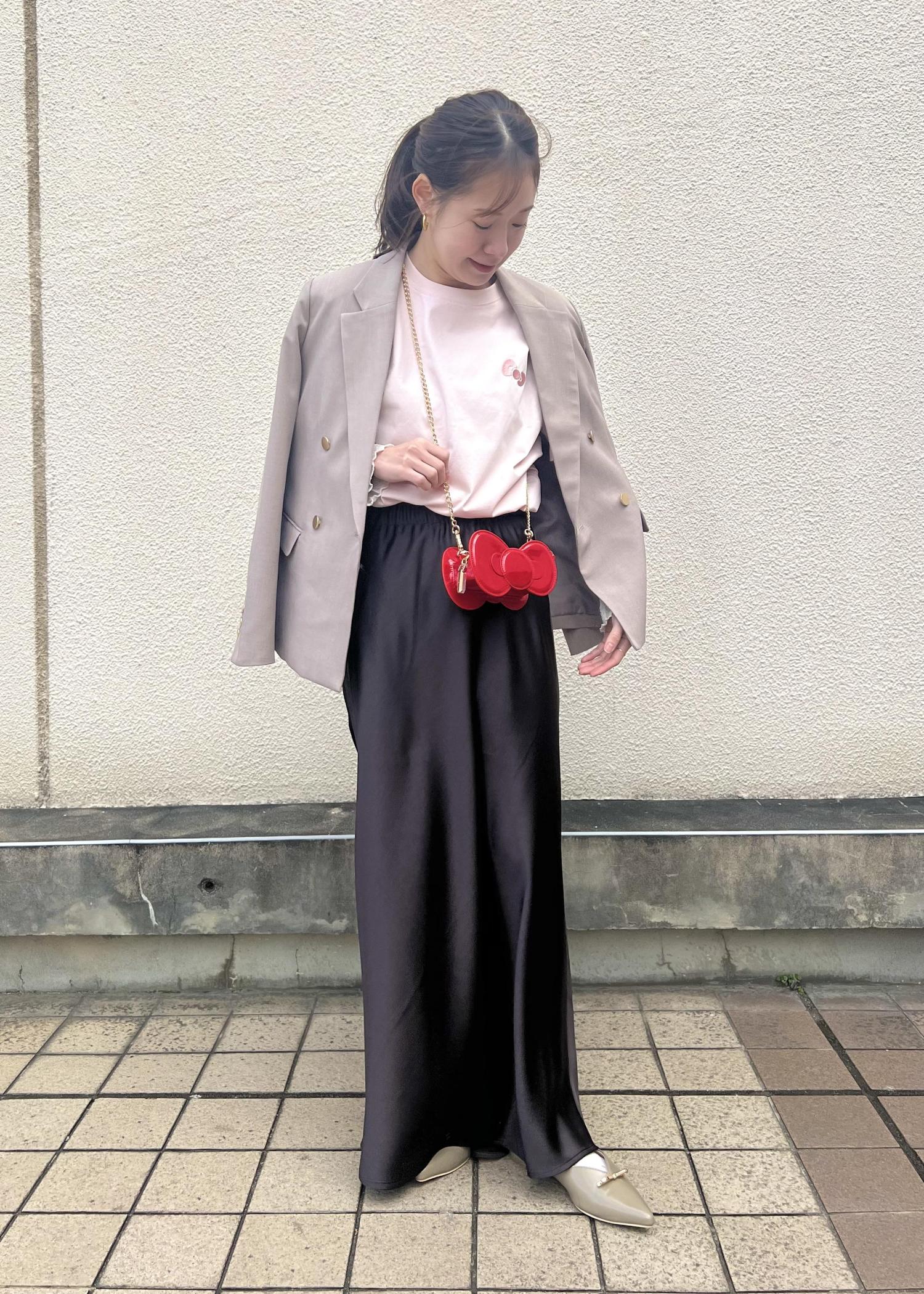 リボン型のかわいいバッグをポイントに、お出かけコーデにしてみました!