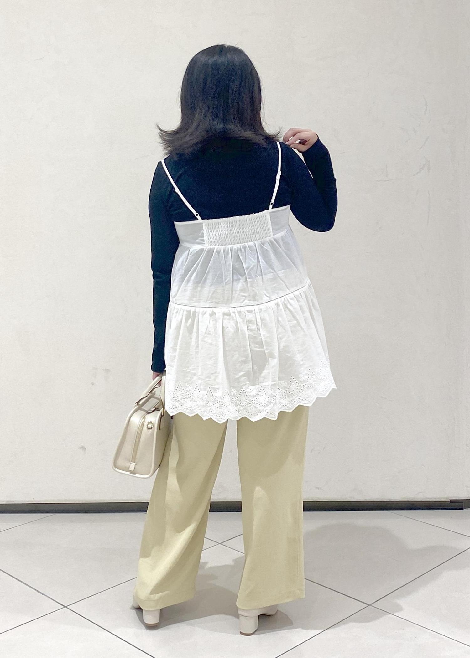 ROPÉ PICNICVネックティアードレースビスチェホワイト / F¥5,489レビューアジャスターで長さも少し調節がききます。背中にゴムも入っており、バストあたりの窮屈感もなく着用いただけます。裾に向かってやや広がるシルエットで、ストレスフリーな着心地です。