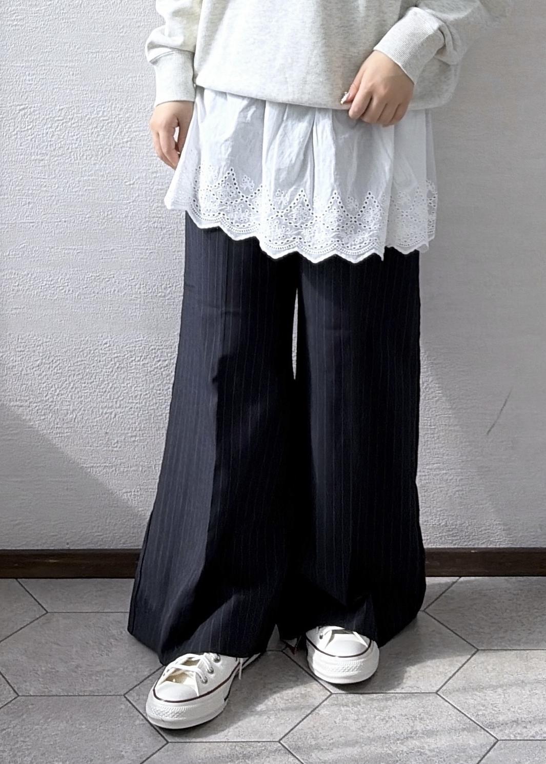上からスウェットを着て流行りのレイヤードコーデもできます!