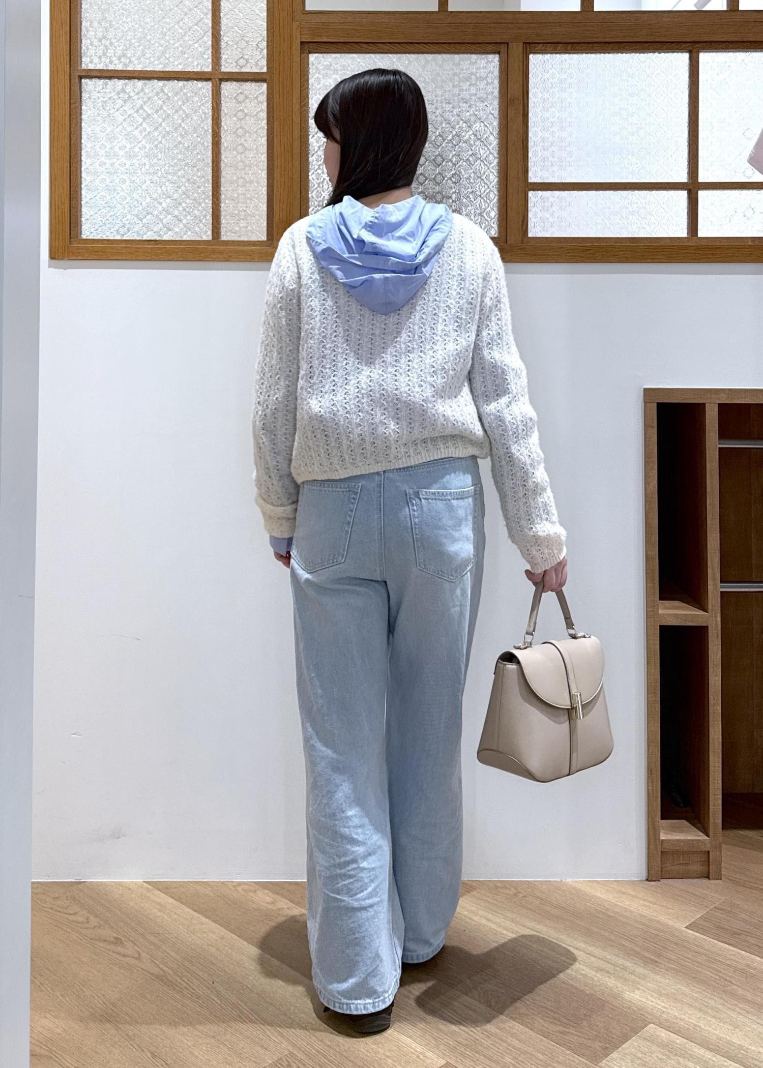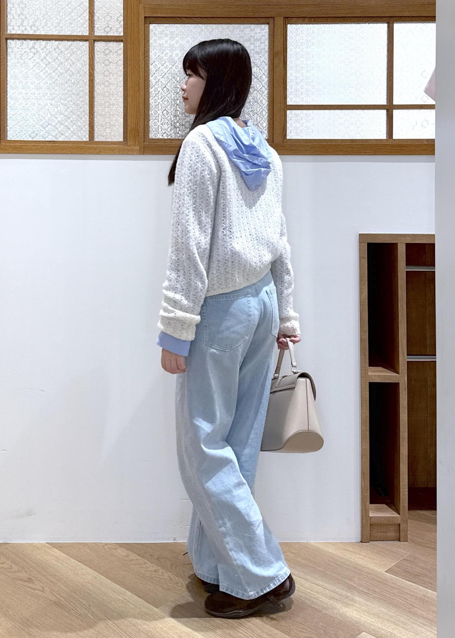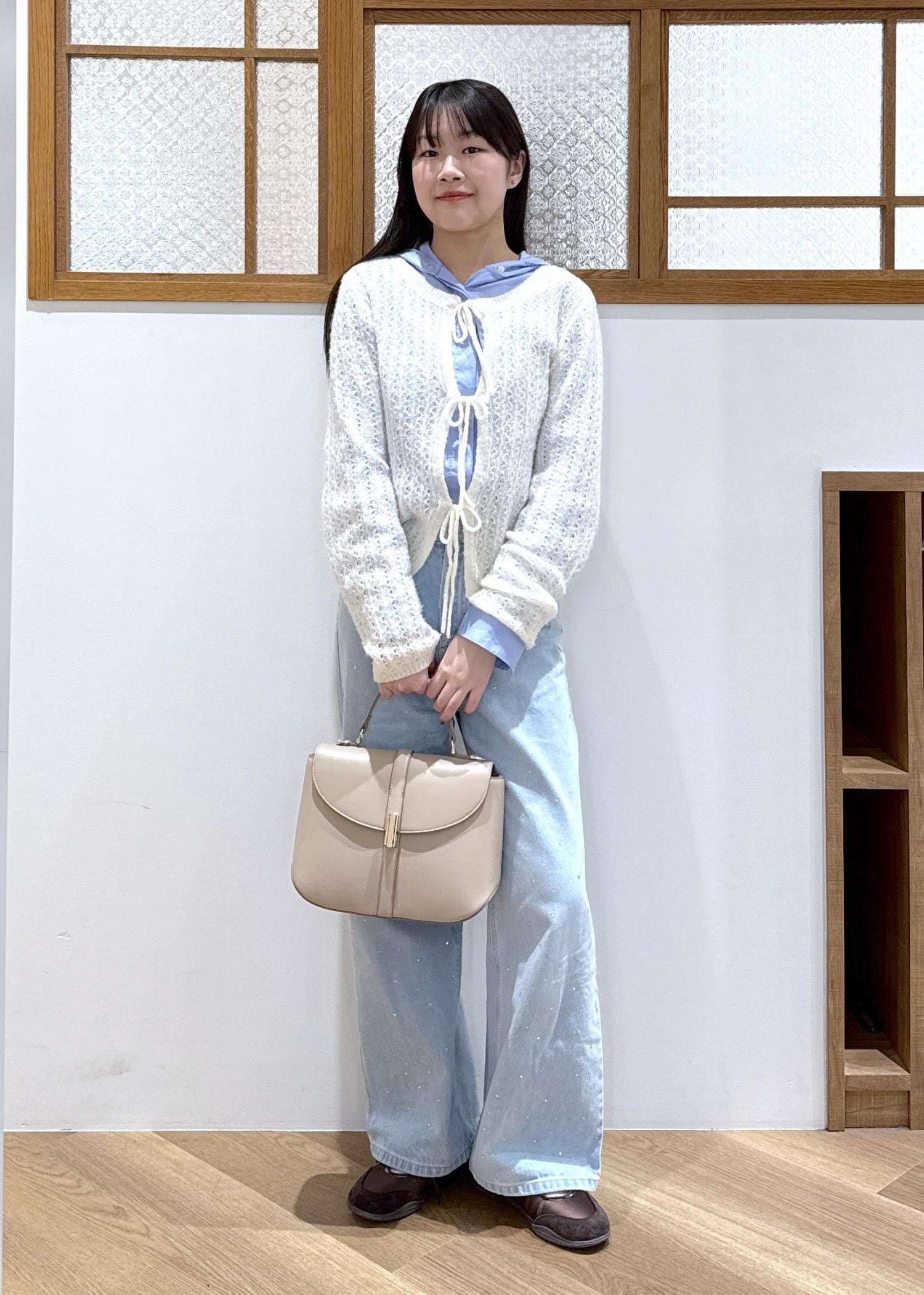 きれいめなバッグを合わせて大人らしく見えるよう、バランスをとりました。