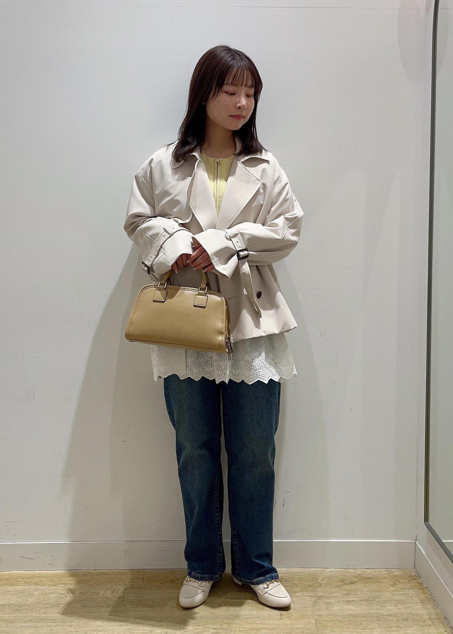 レイヤードしているアイテムは、刺繍が入っていてデザインがシンプルではないところもアクセントになってコーディネートを楽しめます◎