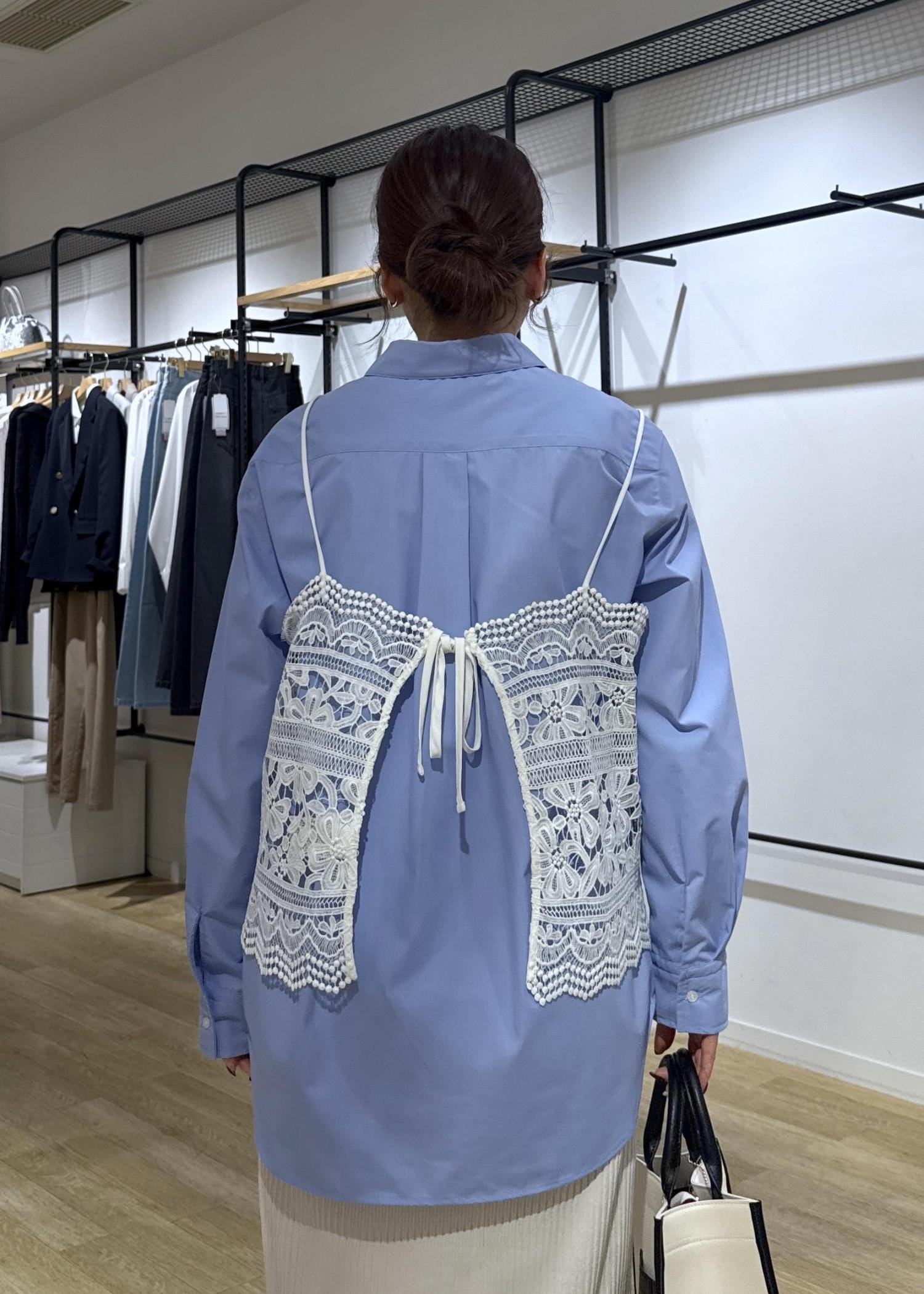 レースデザインでも甘すぎず、きれいめカジュアルな印象で着用できる大人の方にもおすすめのビスチェです。 -