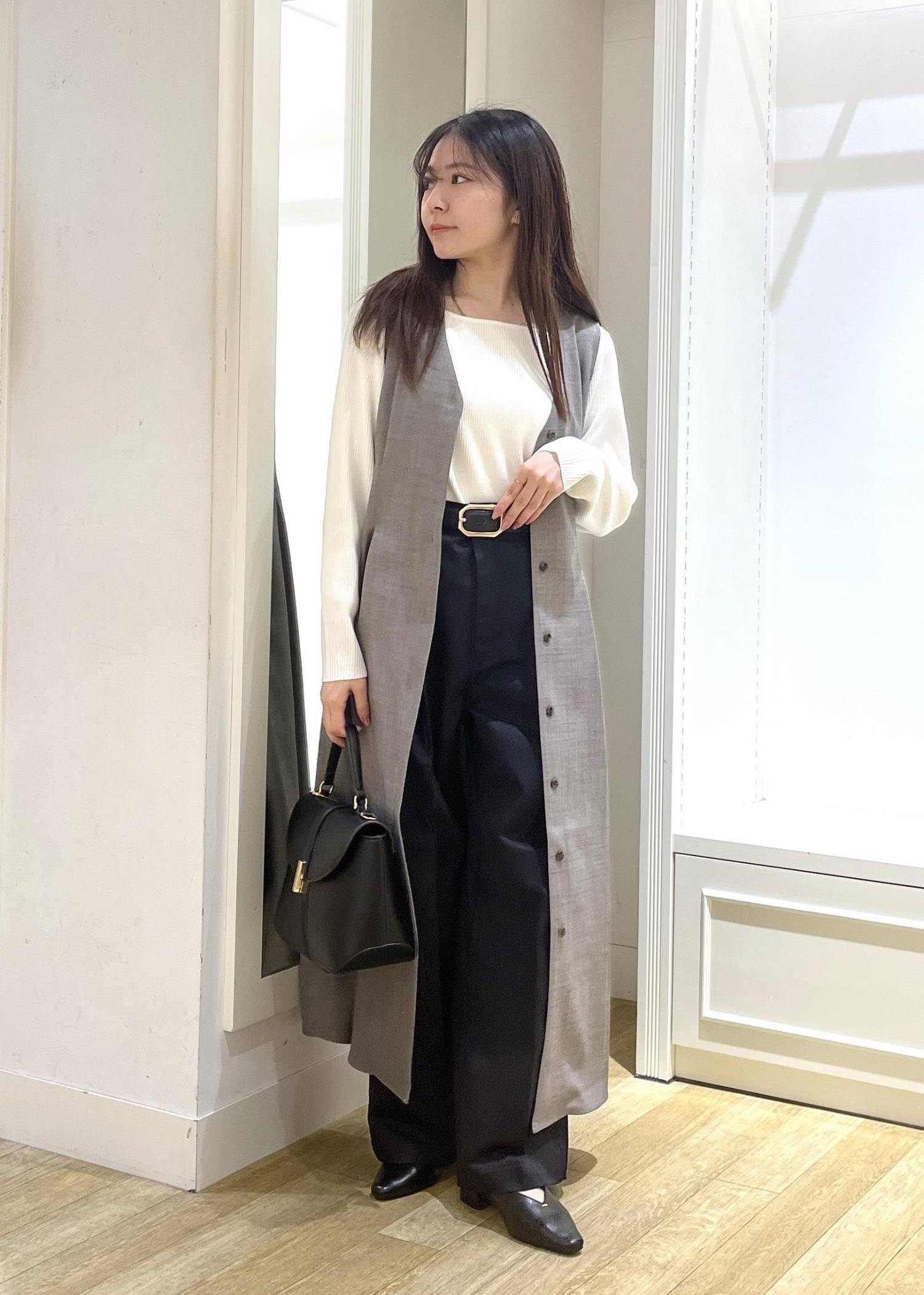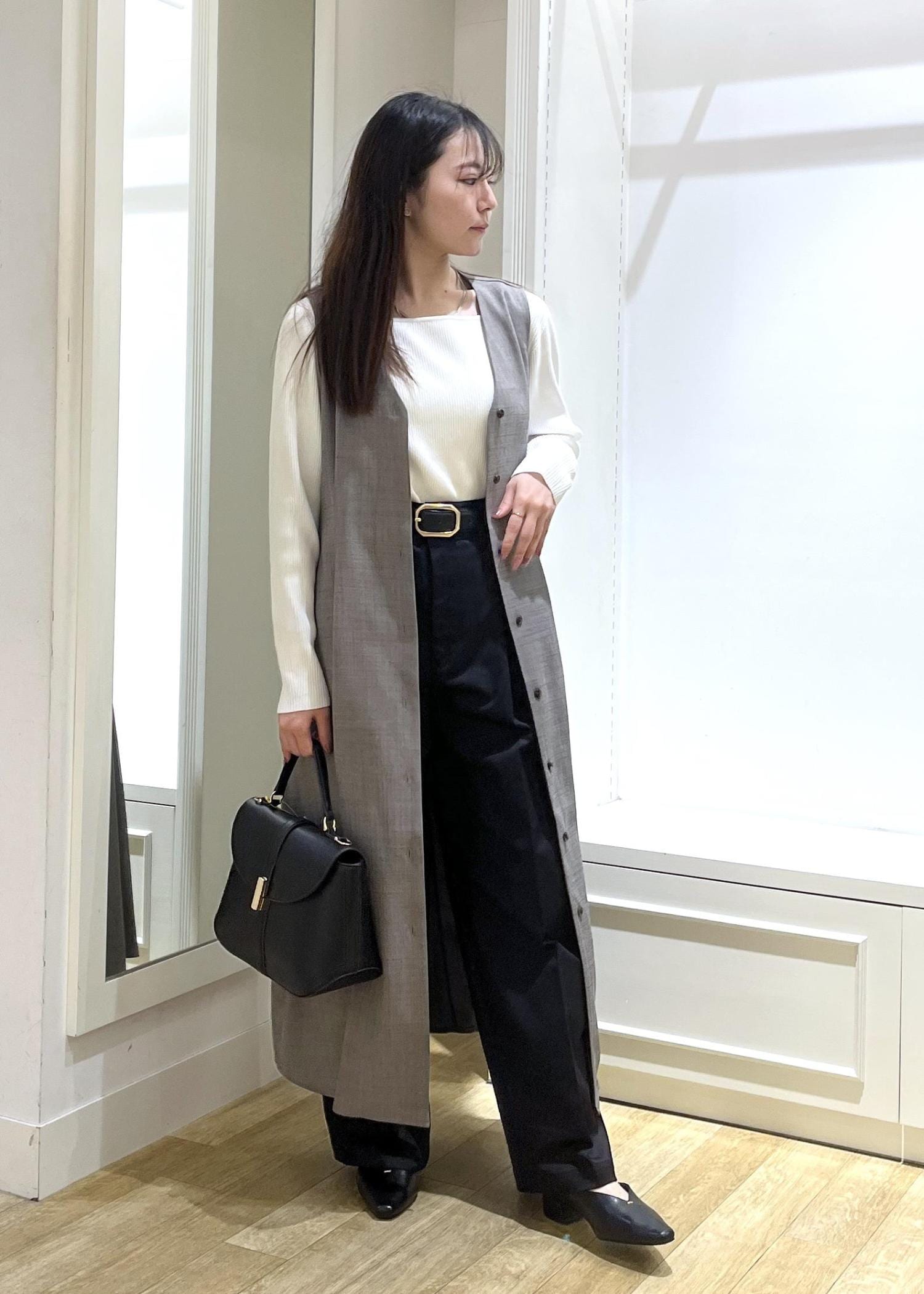 パンツスタイルにして、小物類を黒でまとめて、キレイめになるようにスタイリングしました☺︎
