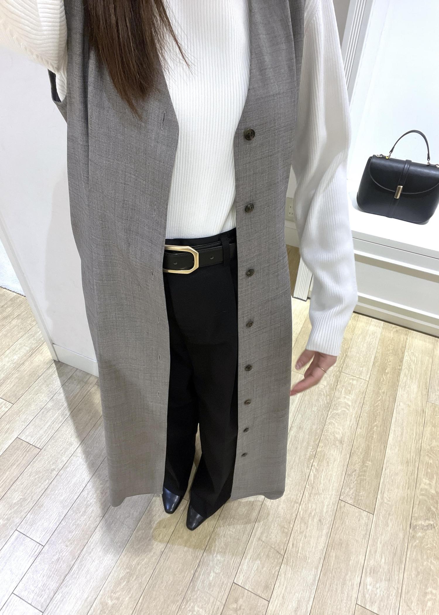ボタンは全て開けることができるので、ジレ風に着用することができます!