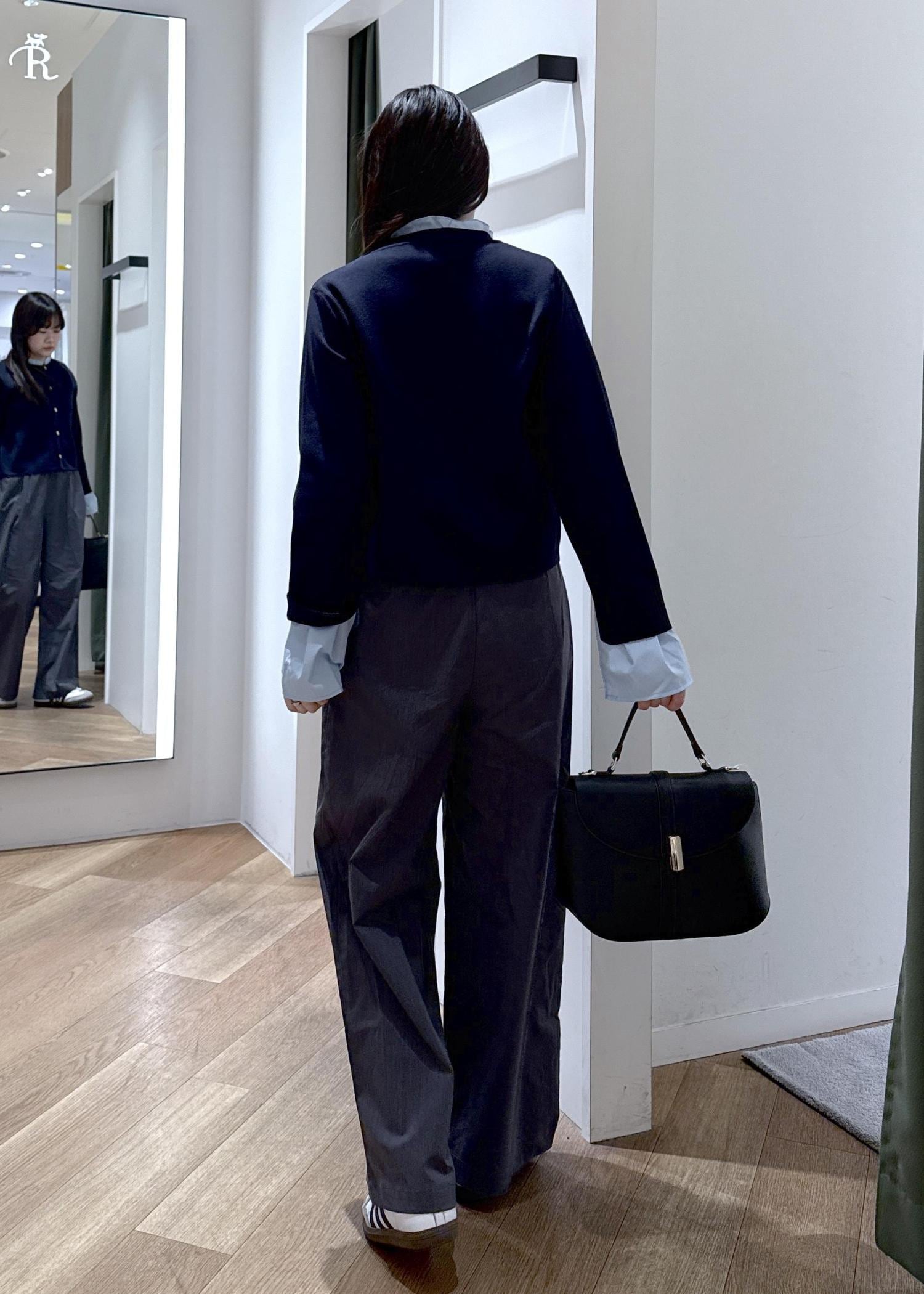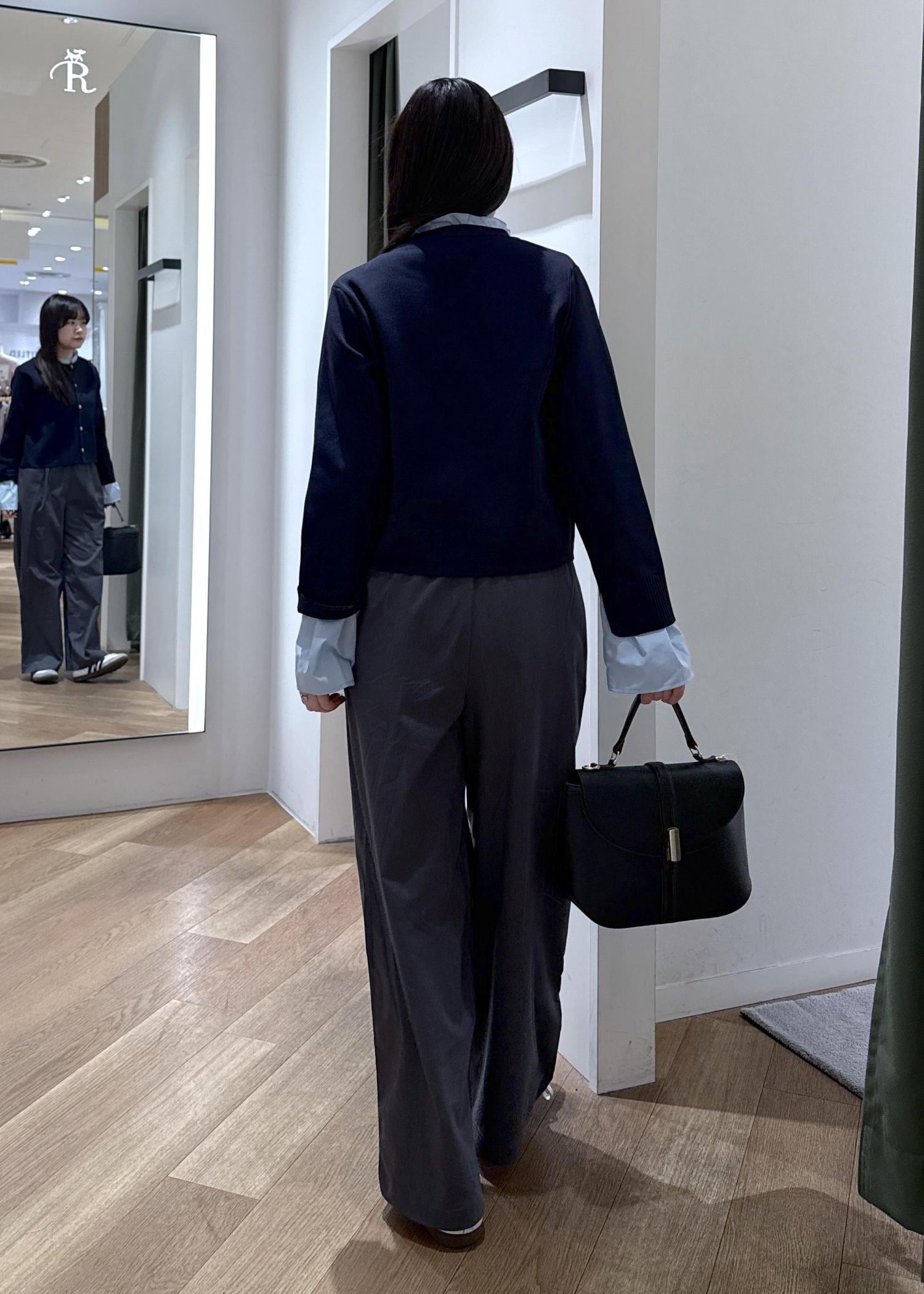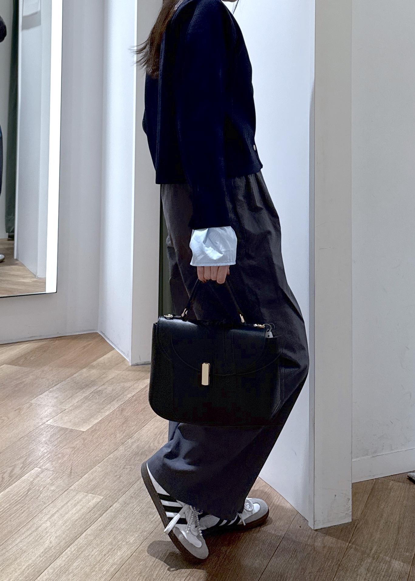 バッグは大人らしいシンプルなデザインのものを選び、ちょっとしたお出かけにも着ていただけるコーディネートを意識しました。