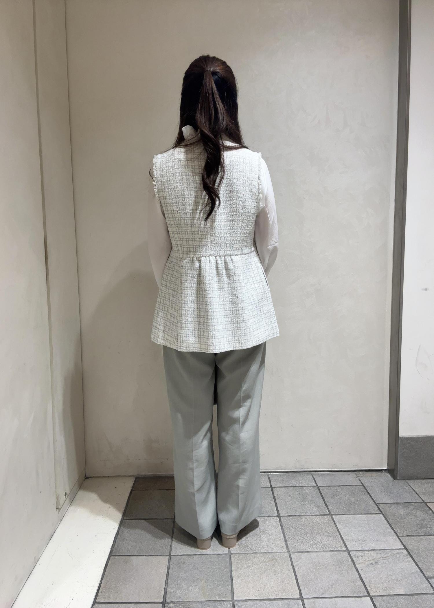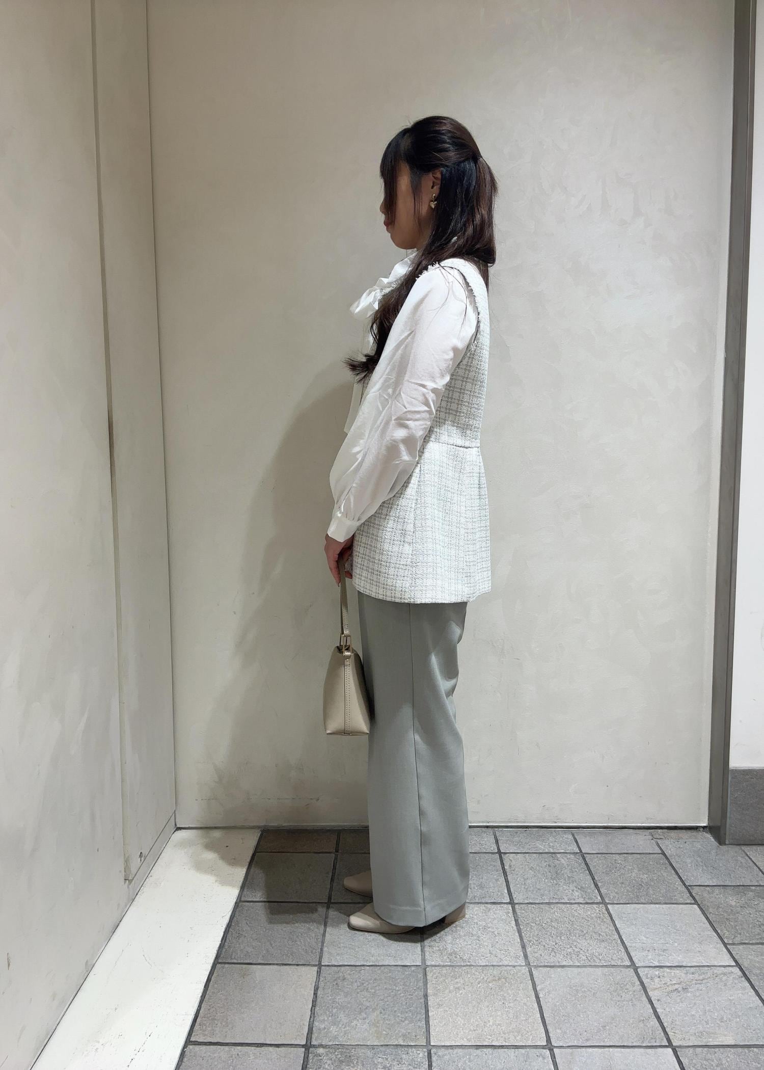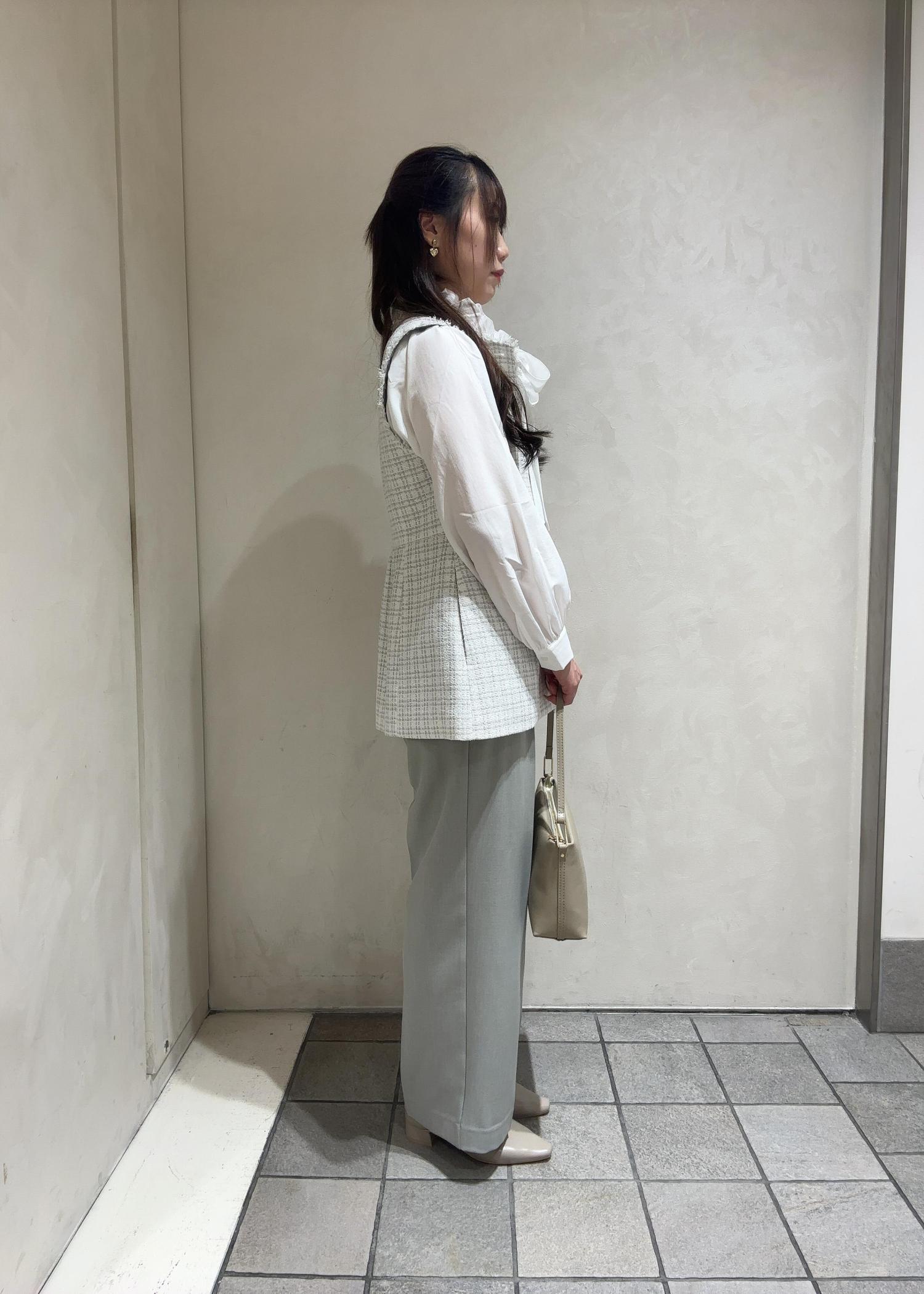 特別な日に着たい、ツイードのジレをメインにコーディネートを組みました!フリルとリボンで華やかな印象へ!