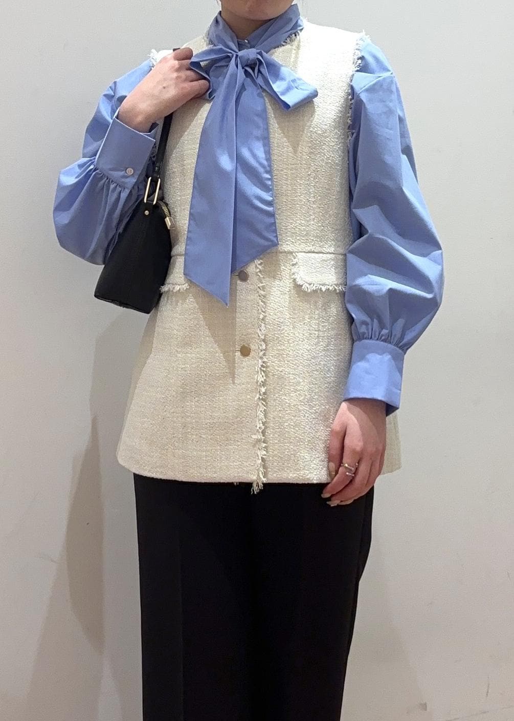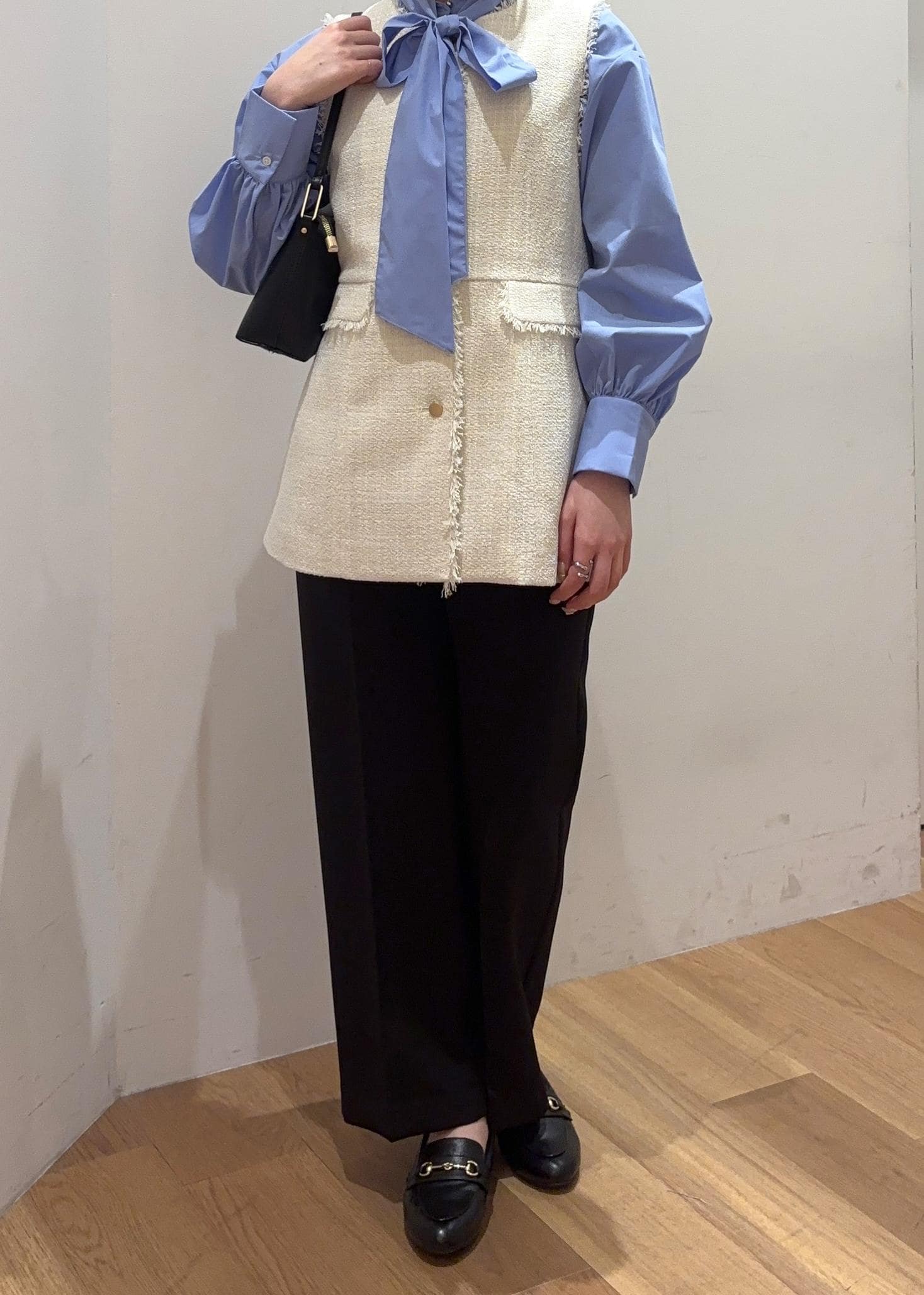 ROPÉ PICNIC【WEB限定カラー】ツイード金ボタンジレベスト/セレモニー対応・リンクコーデオフホワイト / F¥8,998レビューノーカラーなので首周りがスッキリ見えます。