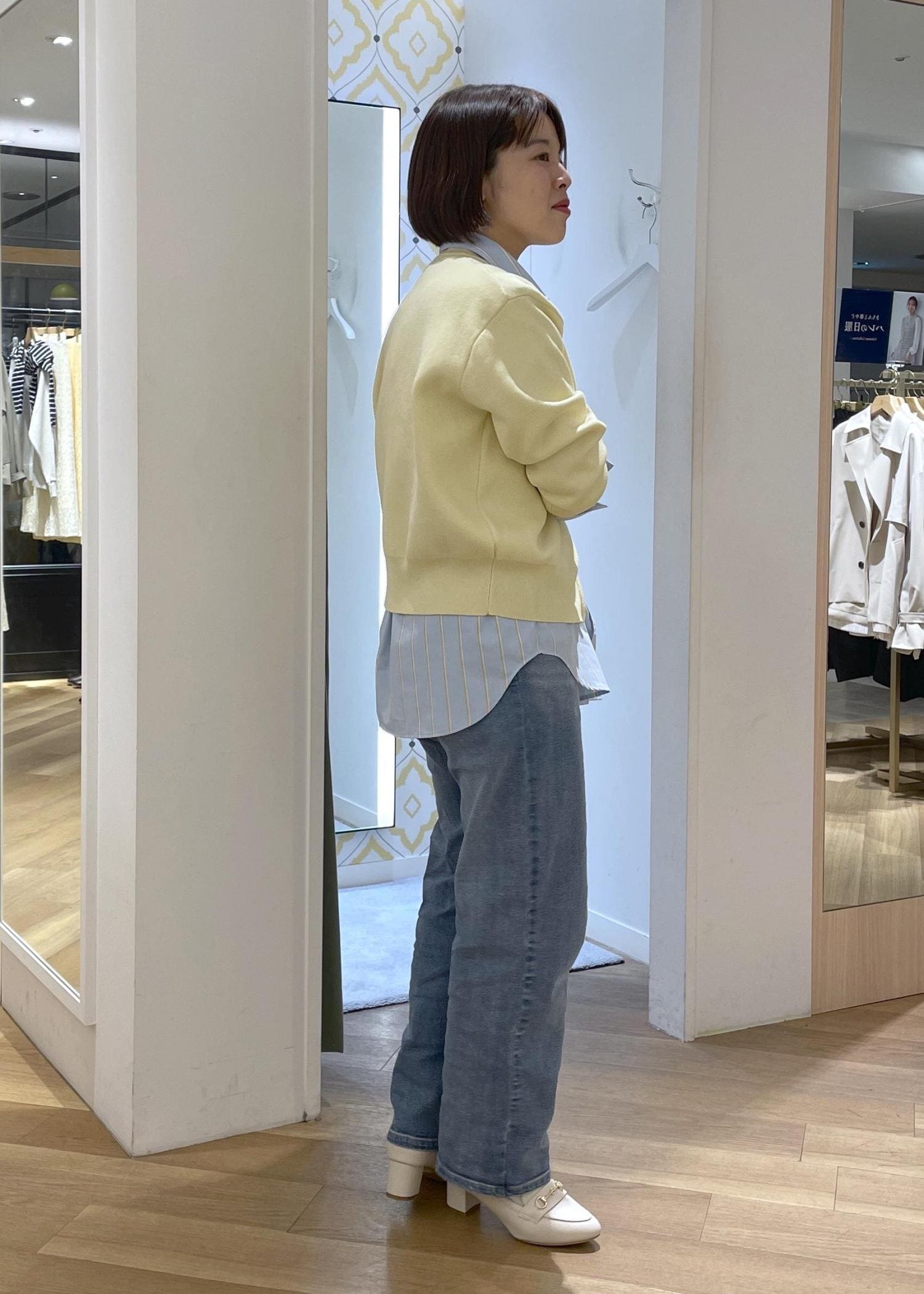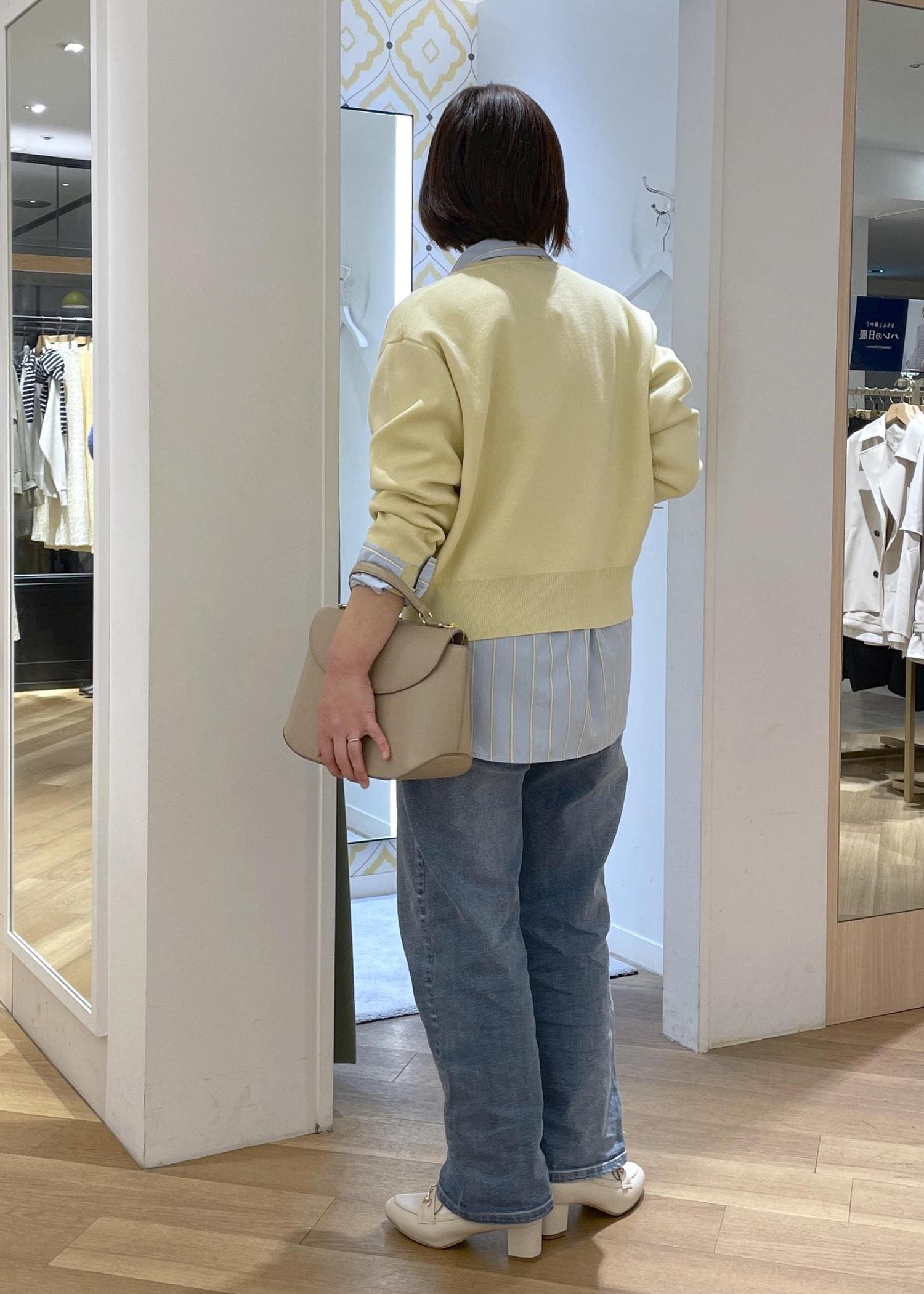 ボトムはデニムを合わせて、休日コーデにもおすすめのカジュアルダウンしたコーデに◎