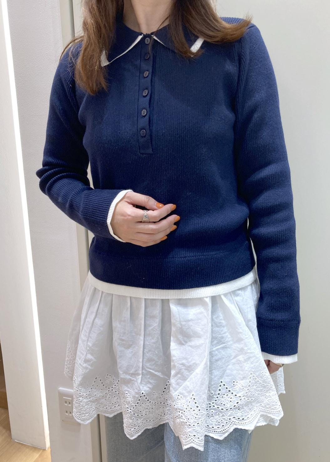 ROPÉ PICNICレイヤード風リブポロニットネイビー / F¥5,489レビューほどよい肉感で体のラインを拾いにくく、すっきりとした印象に。