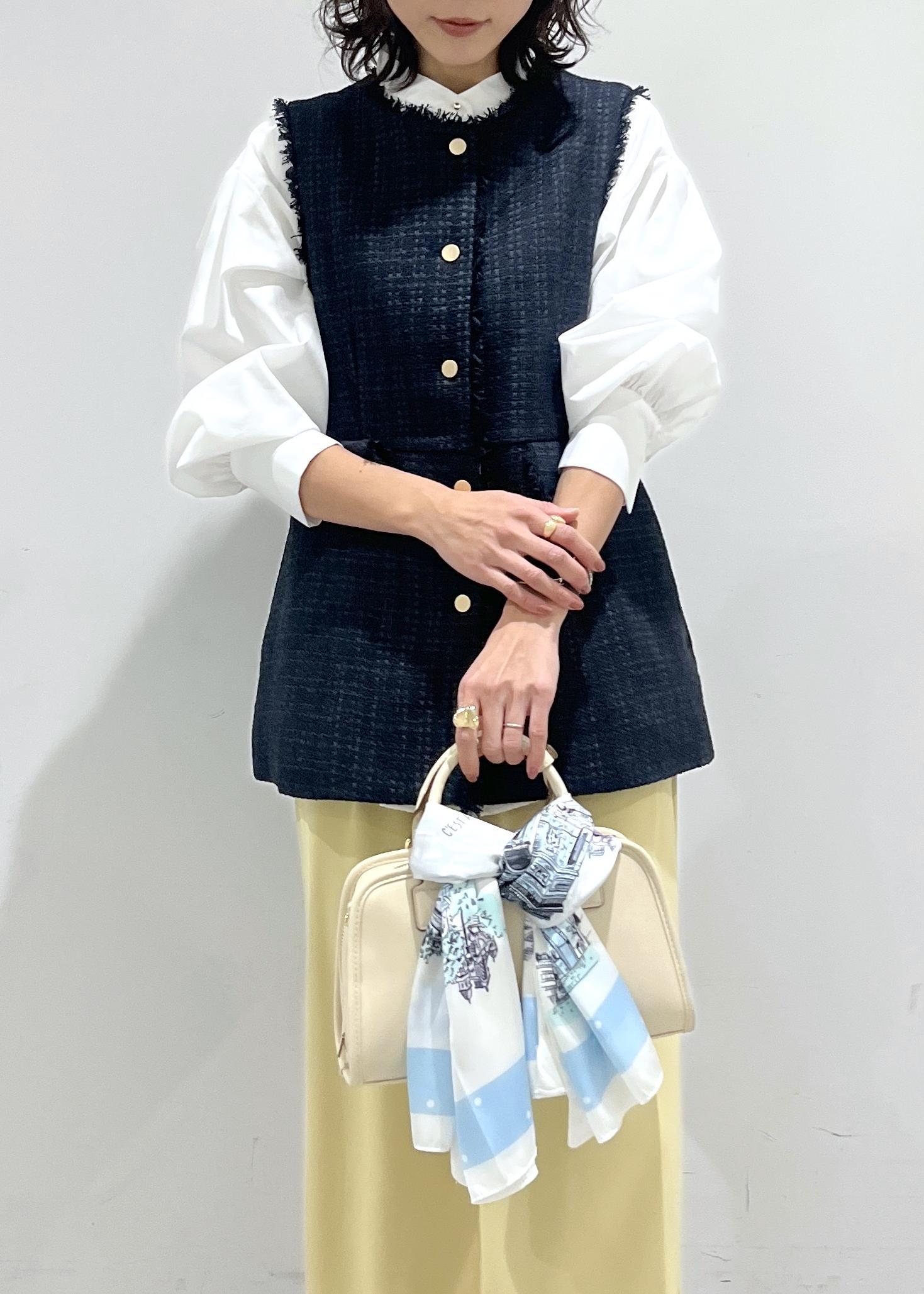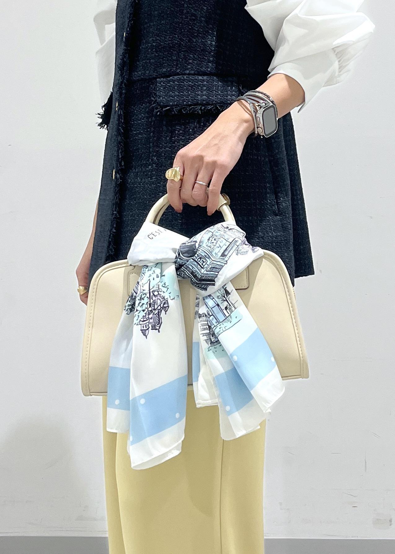 ニット素材やコットン素材と合わせるとスカーフのツヤ感がより際立ち華やかさ、上品さをプラスしてくれます。