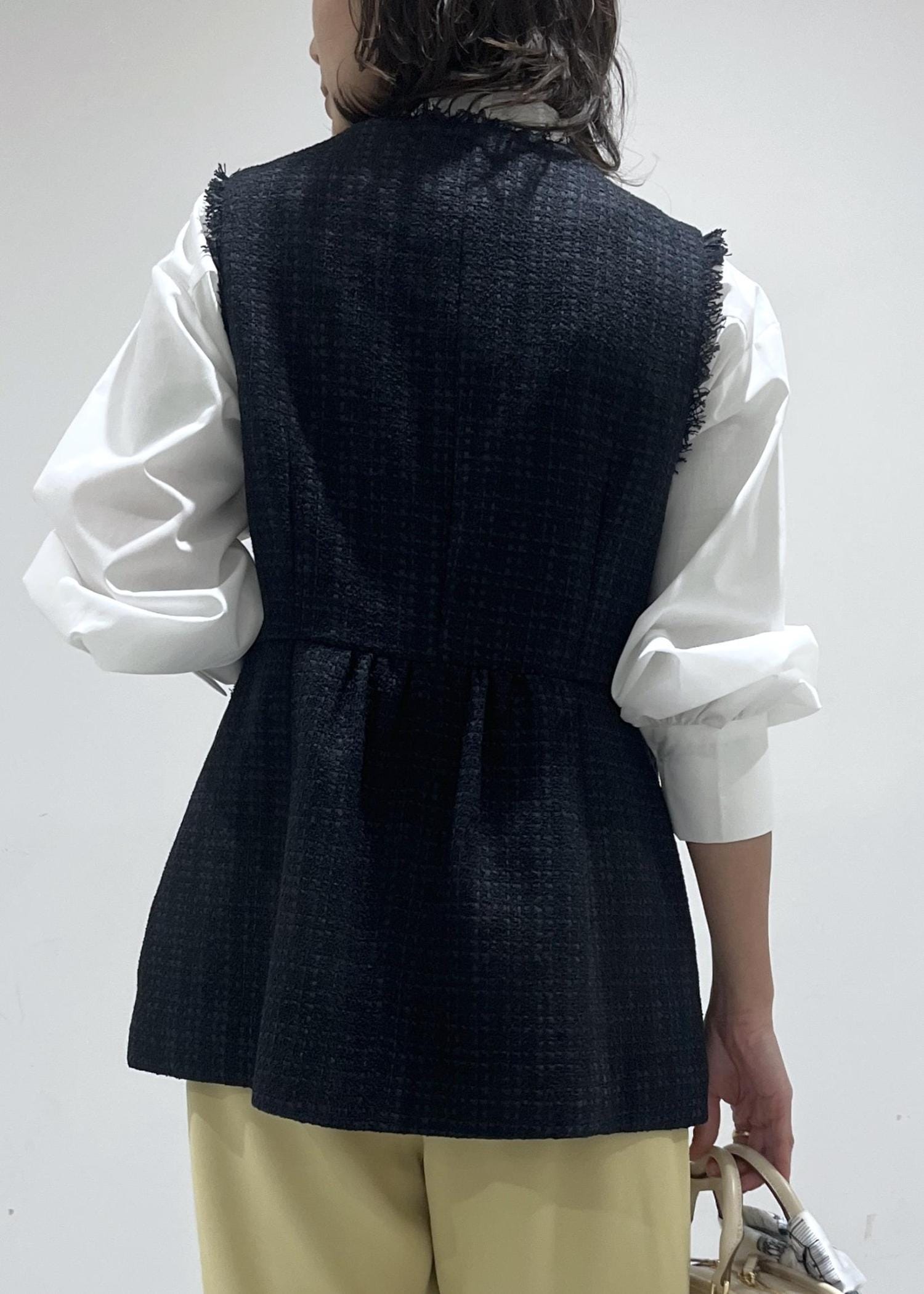 ROPÉ PICNIC【WEB限定カラー】ツイード金ボタンジレベスト/セレモニー対応・リンクコーデネイビー / F¥8,998レビュー薄手のニットやブラウスで前も閉じることができ、ちょうど良いサイズ感でした。