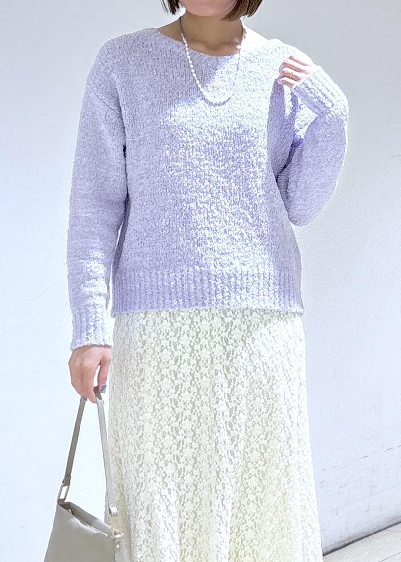 予約ROPÉ PICNICフリンジヤーンラメニットラベンダー / F¥5,489レビューほんのりラメ感がありとても柔らかく、敏感肌の私でもチクチク感なく着用できる素材でした!Vネックで顔まわりをすっきり見せてくれるニットです。程よくゆとりがありインナーに重ね着もしやすかったです♪
