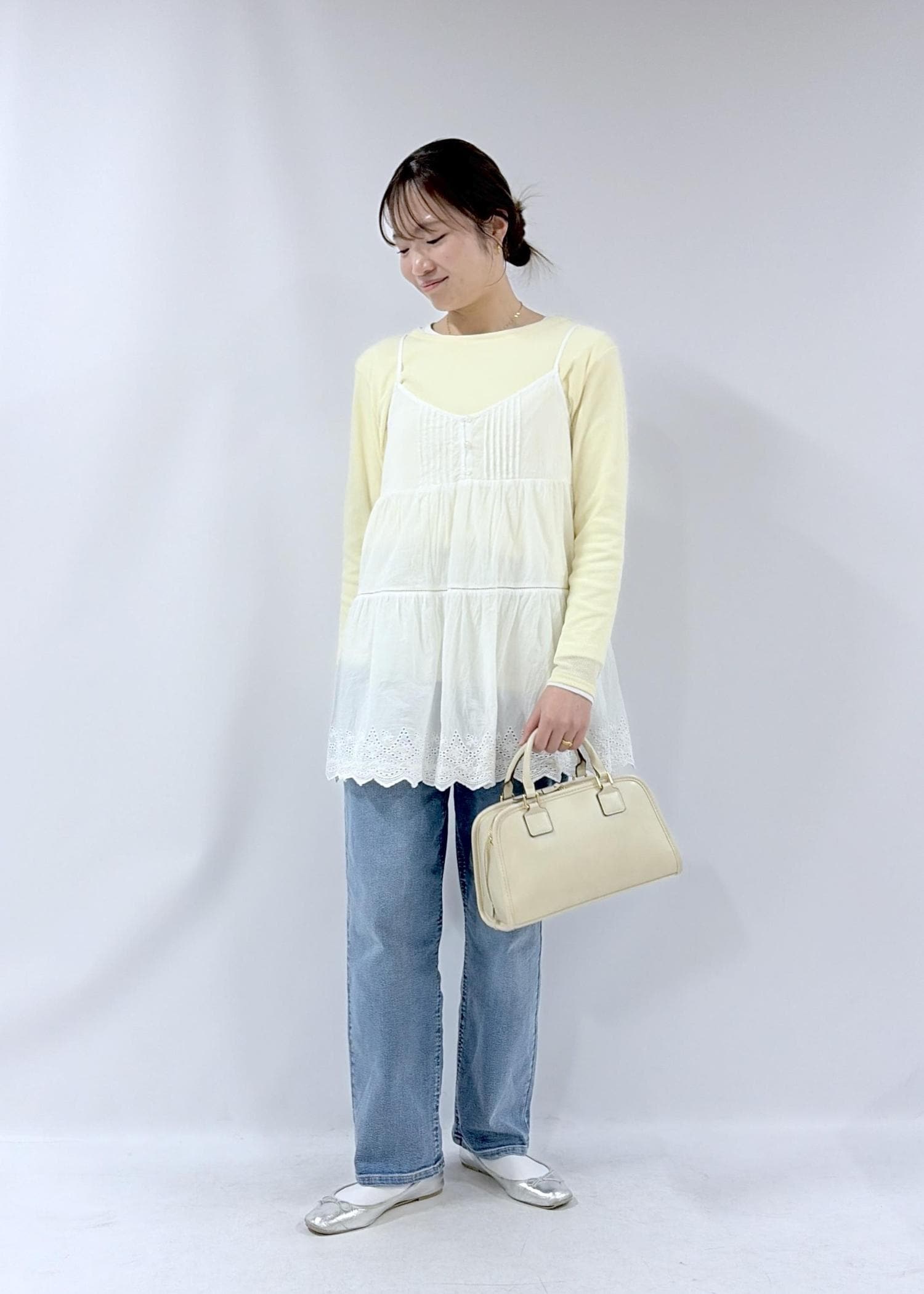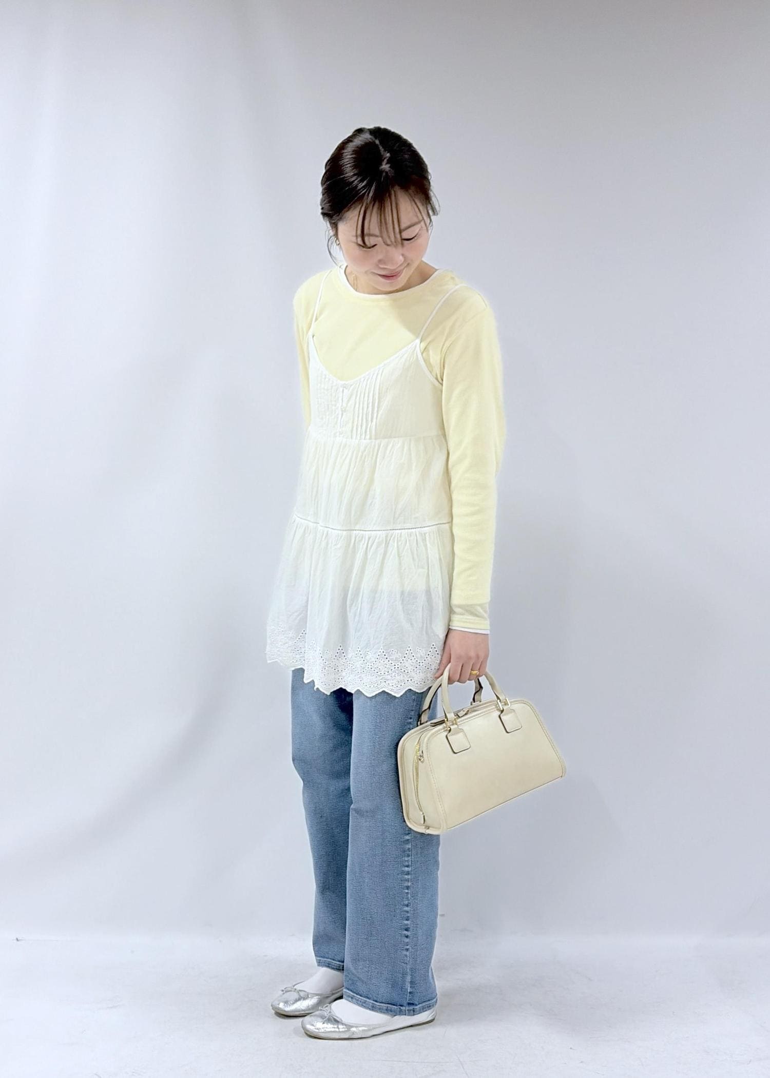 ROPÉ PICNICレイヤード風シアーロングスリーブTシャツクリーム系 / F¥3,498レビュー1枚でレイヤード風になっているトップスです。透け感があります。カラーは淡めのカラーで取り入れやすいです。総リブで伸縮性もあります。