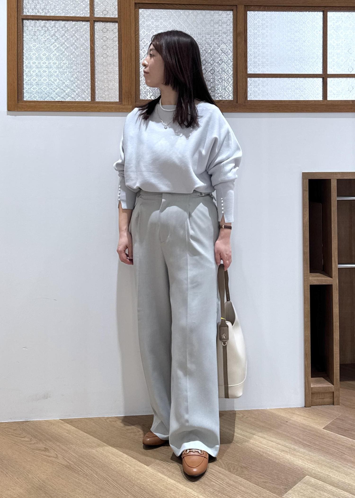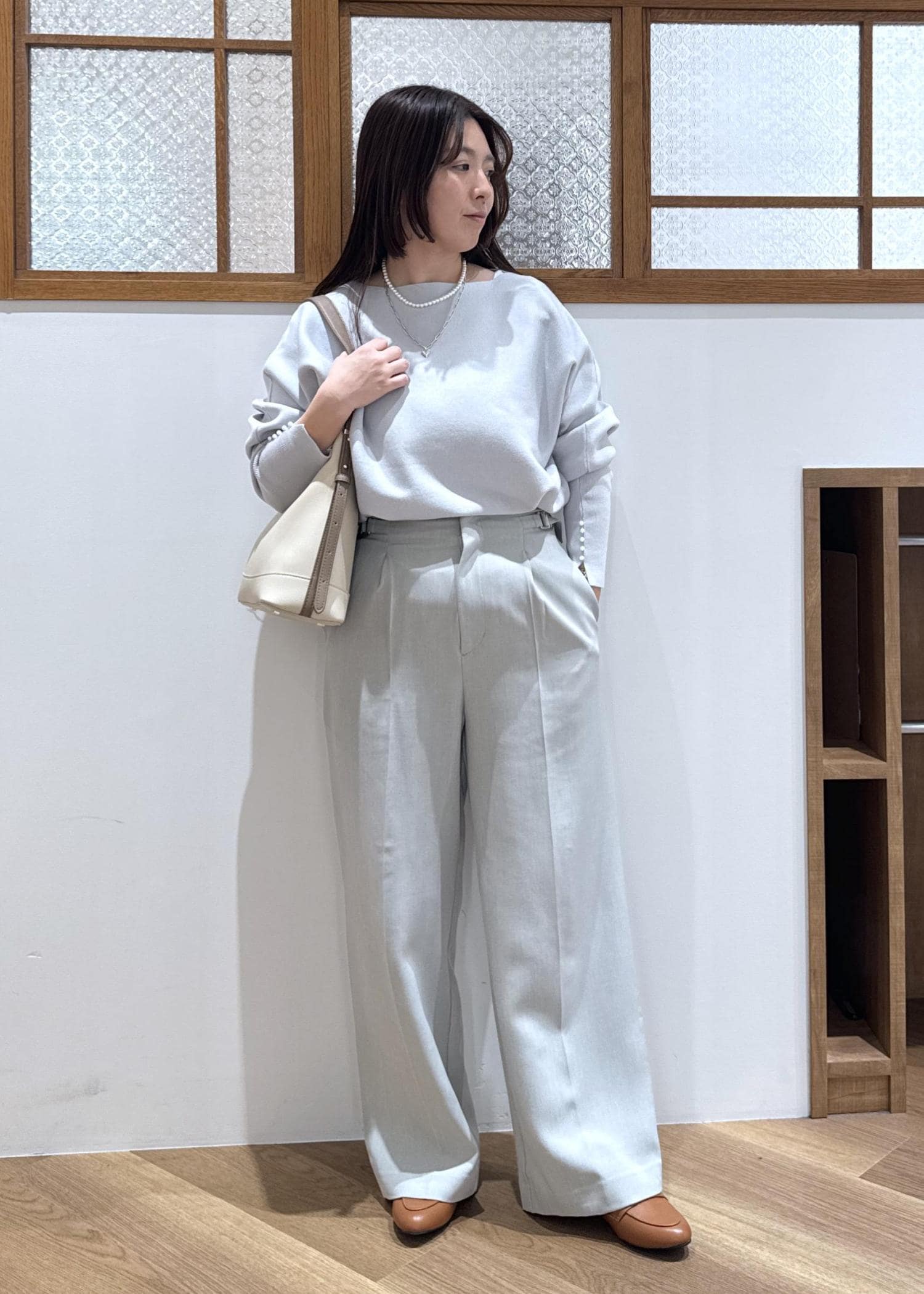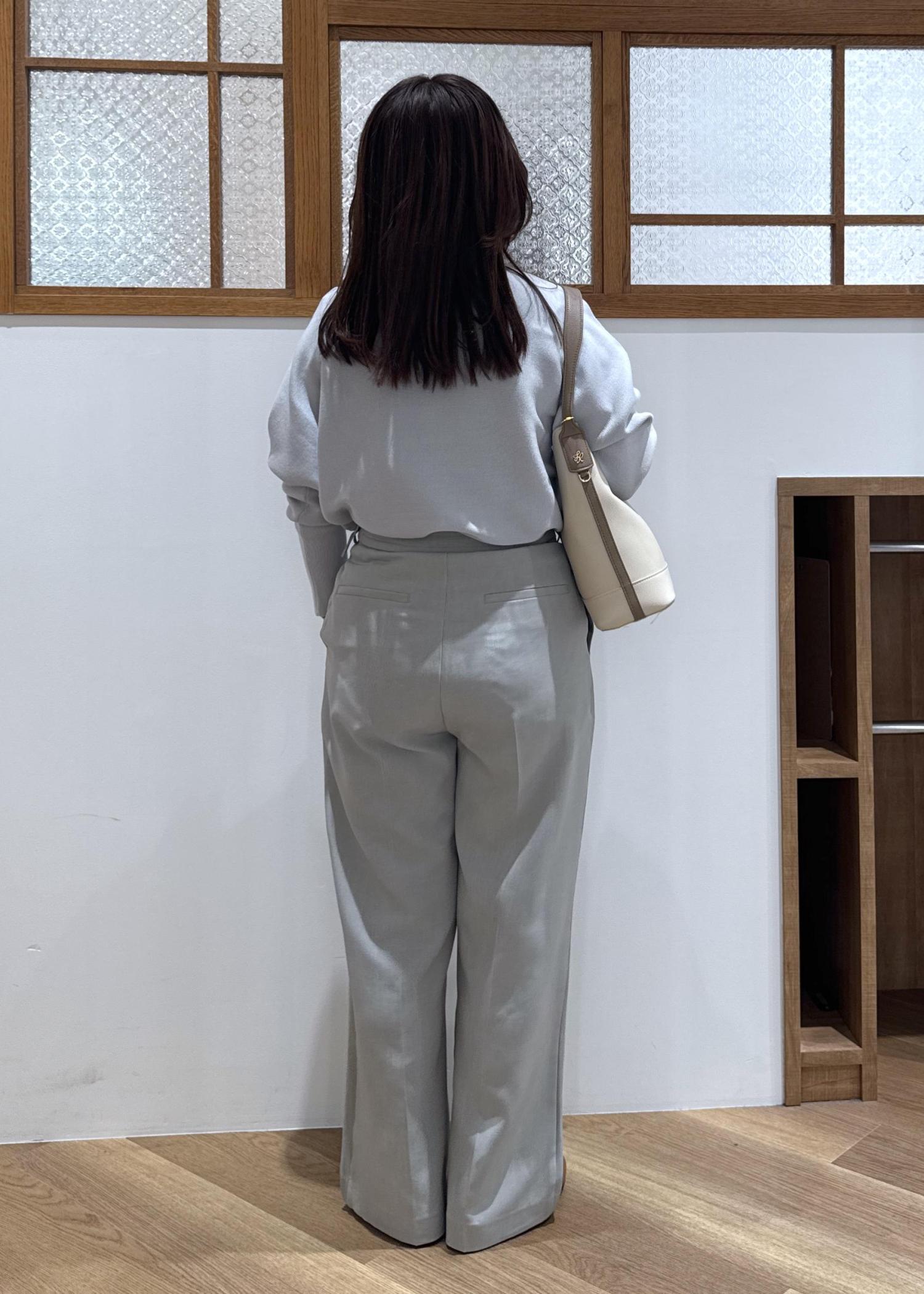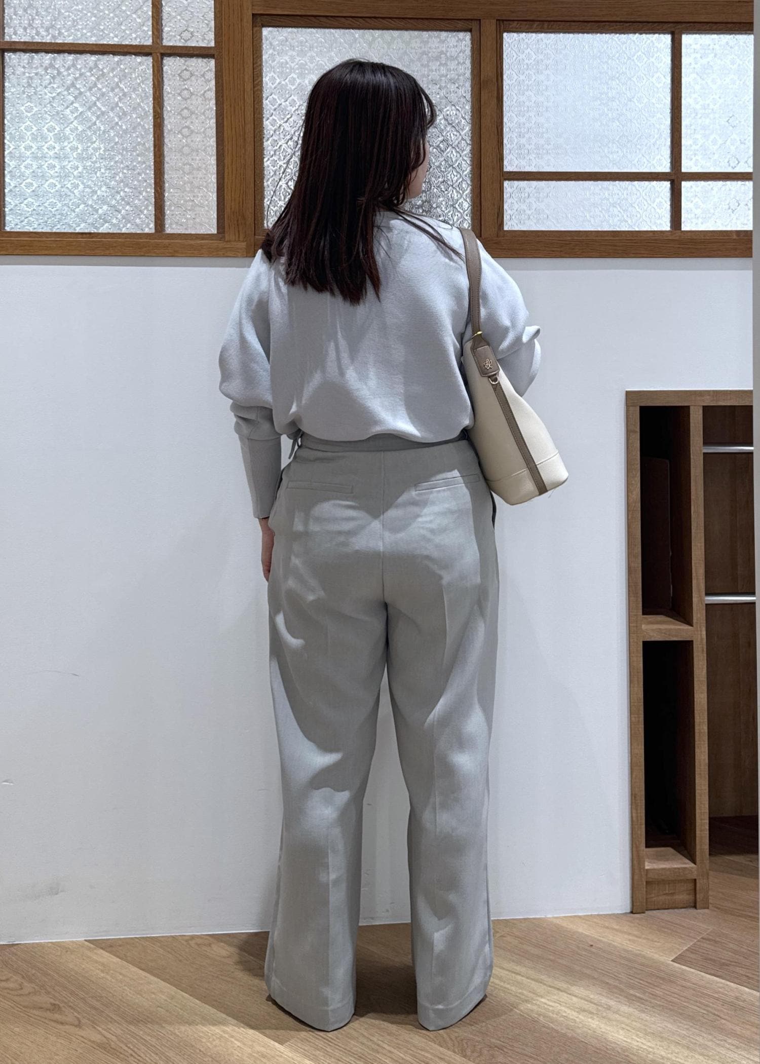 シャリ感ある生地で、程よい張りがありパンツのシルエットがきれいに見えつつも、しなやかな生地で作られているので初春から初夏にかけておすすめです! -