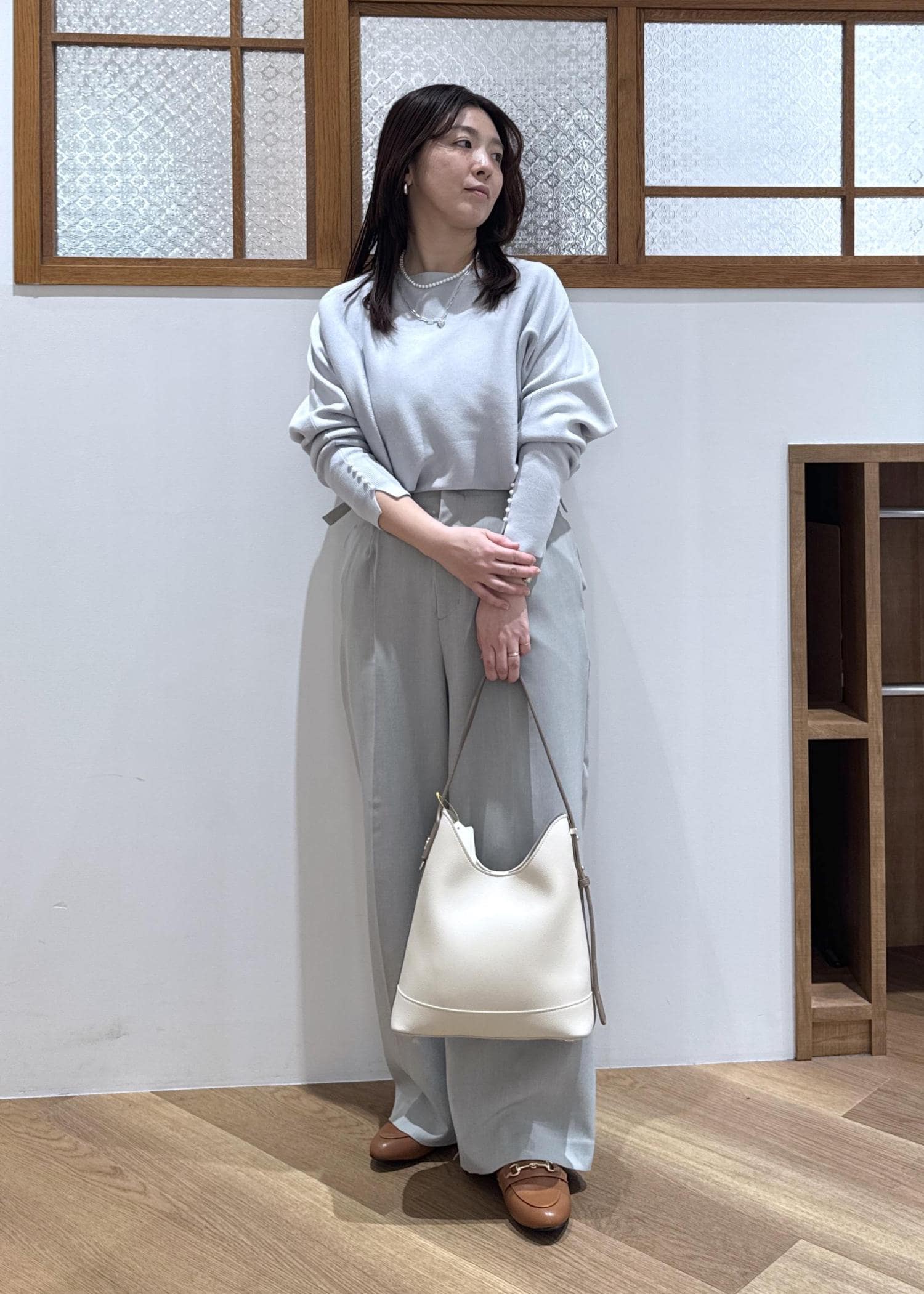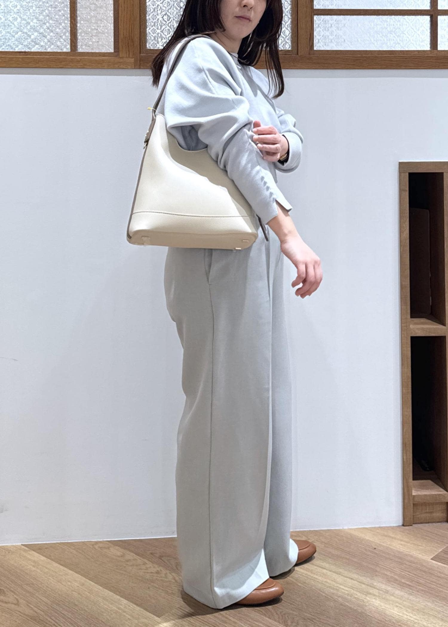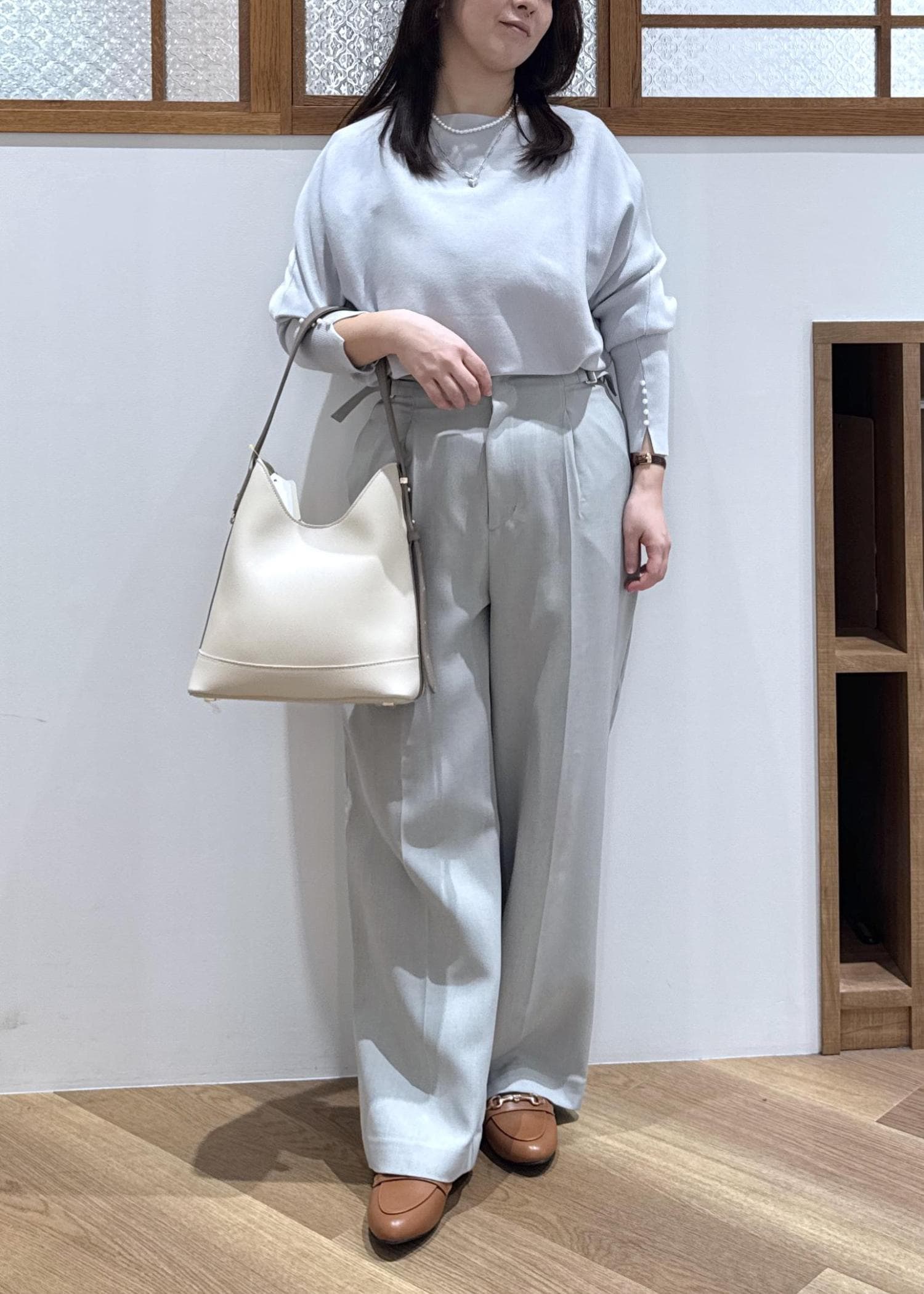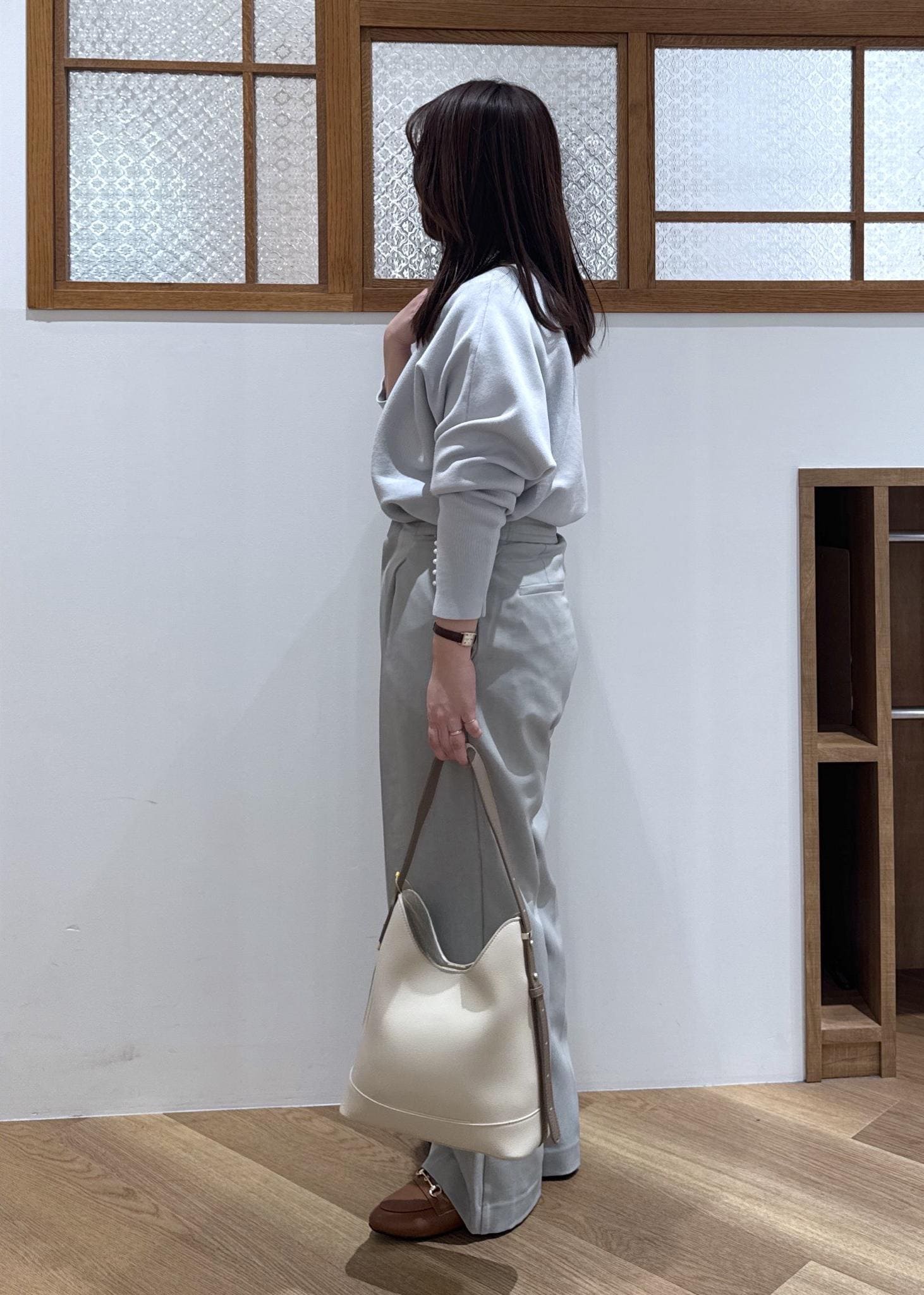 シャリ感ある生地で、程よい張りがありパンツのシルエットがきれいに見えつつも、しなやかな生地で作られているので初春から初夏にかけておすすめです! -