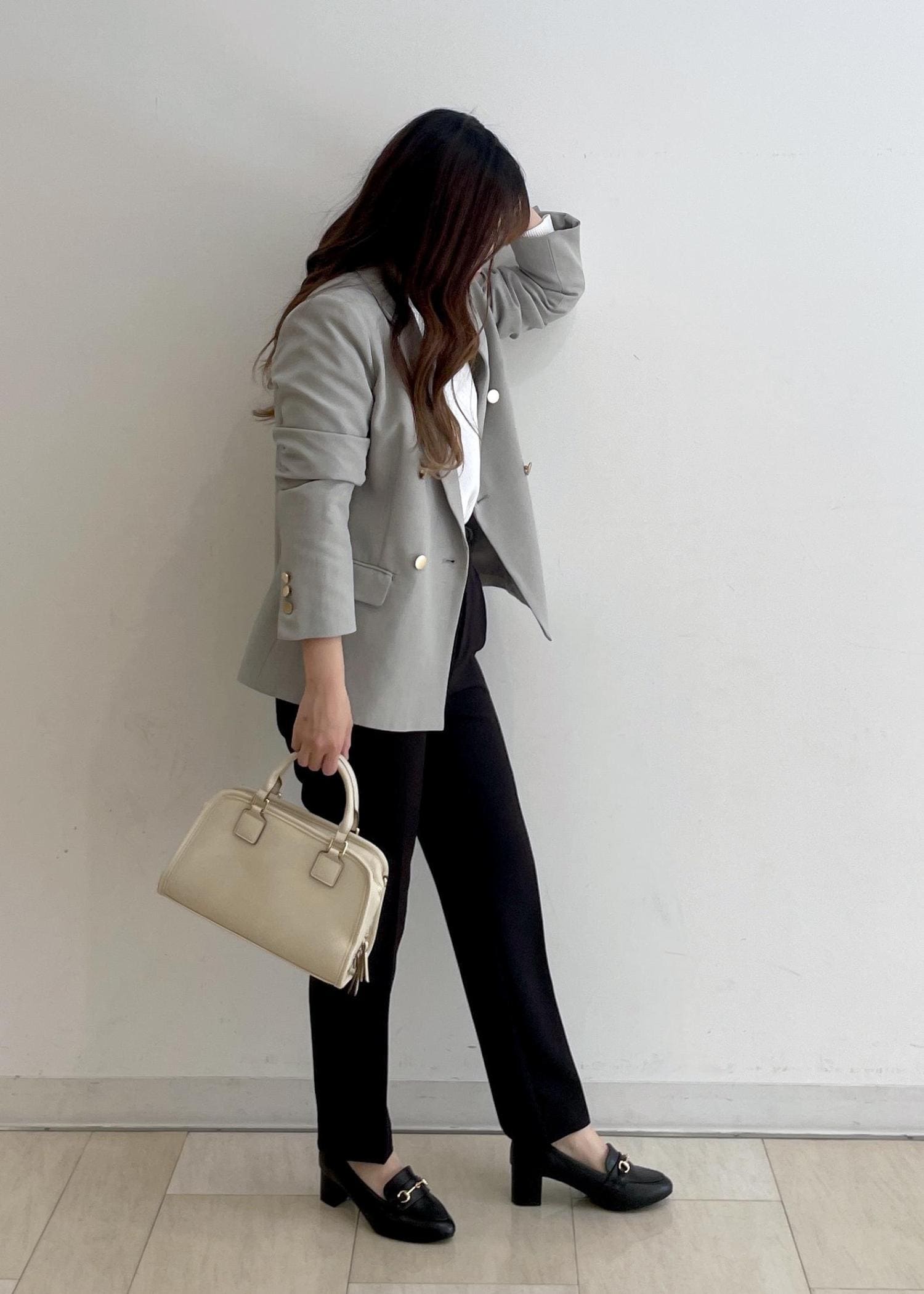 グリーンのジャケットをメインに他はモノトーン出で合わせたコーディネートです!