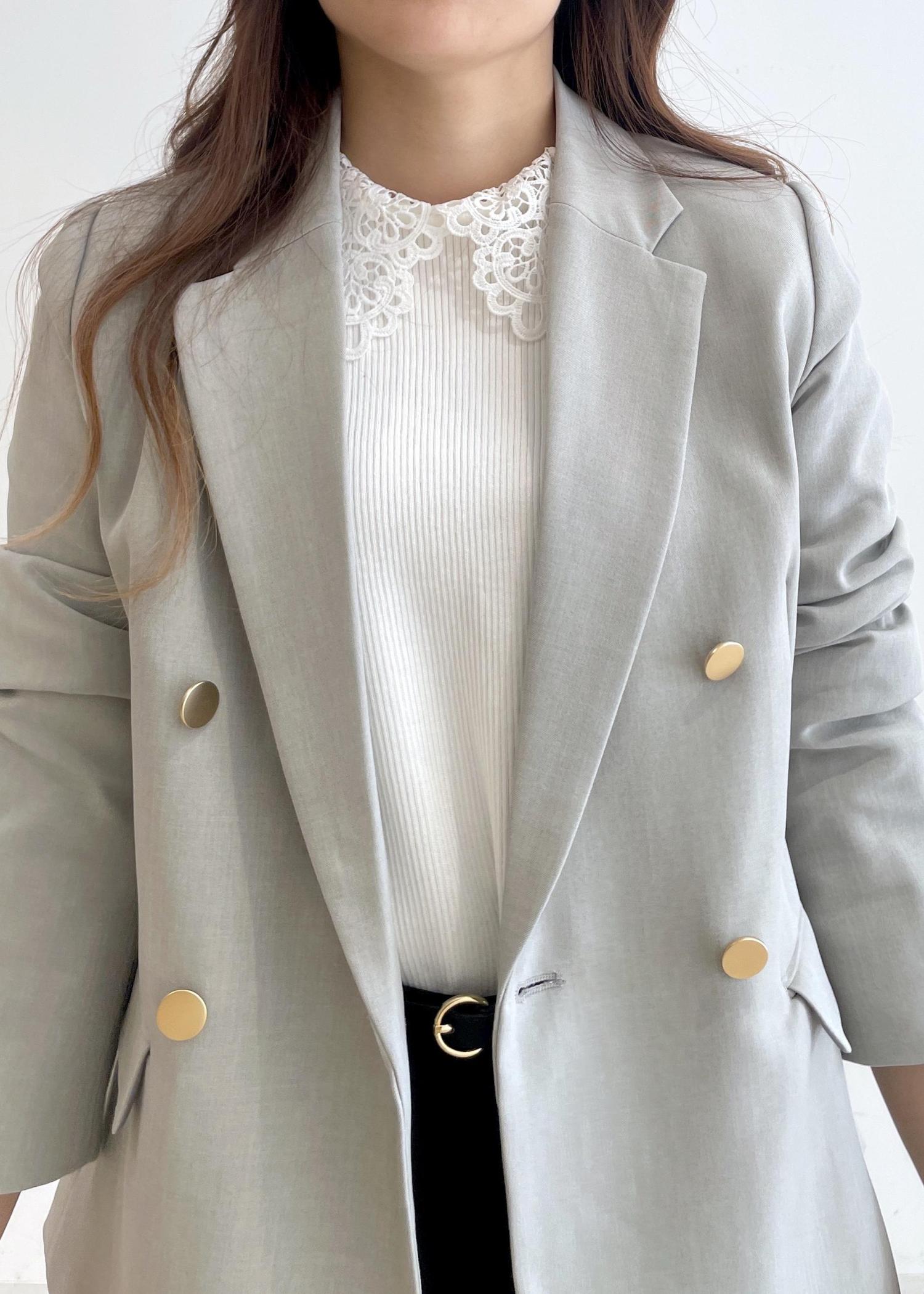 ノーカラージャケットやジレと合わせるときは、襟を出してもかわいいです◎ -