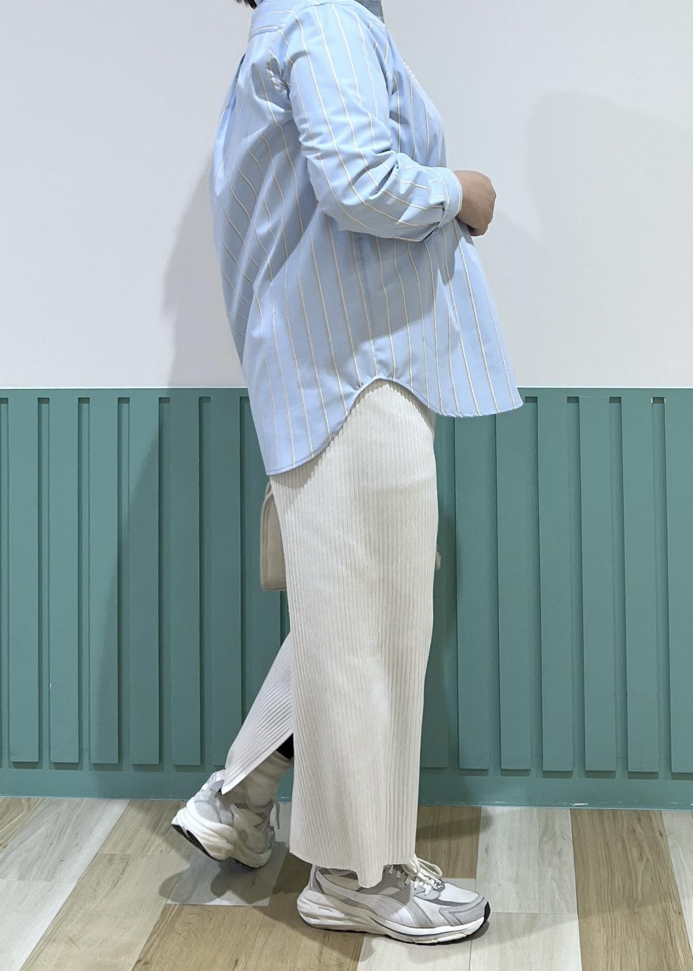 爽やかなシャツにタイトスカートの