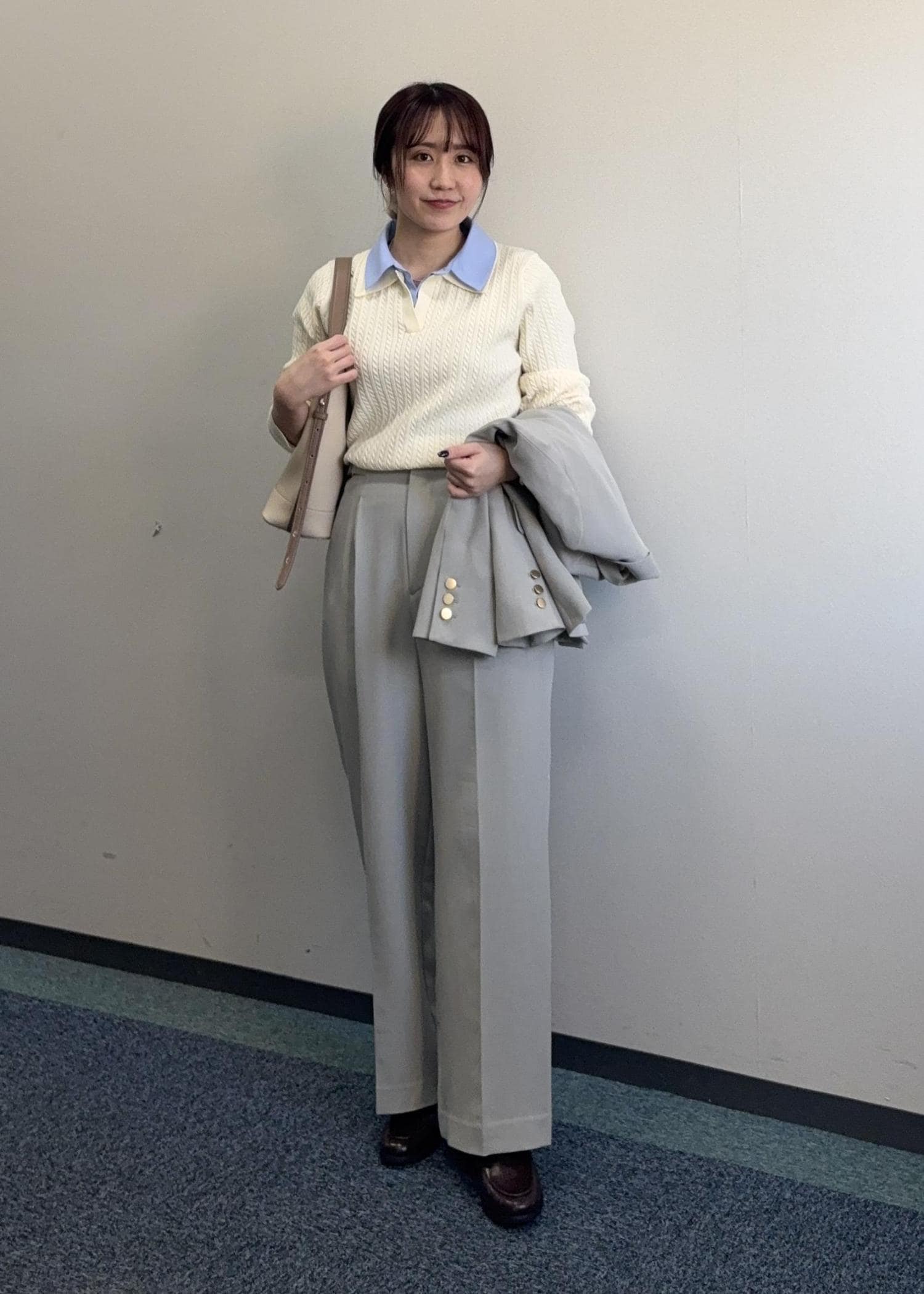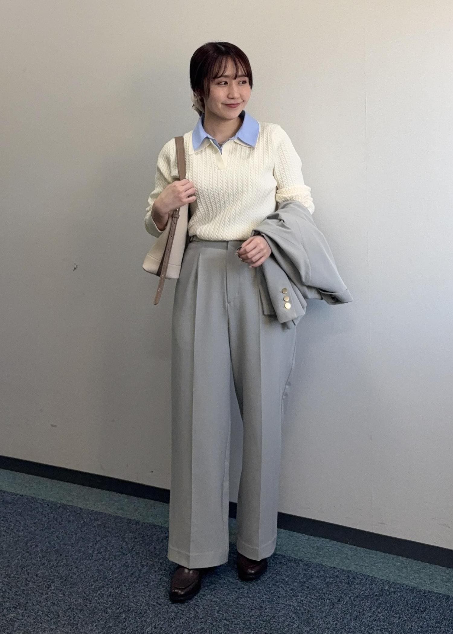 クリアツイル金ボタンジャケットを使ったキレイめコーデ。