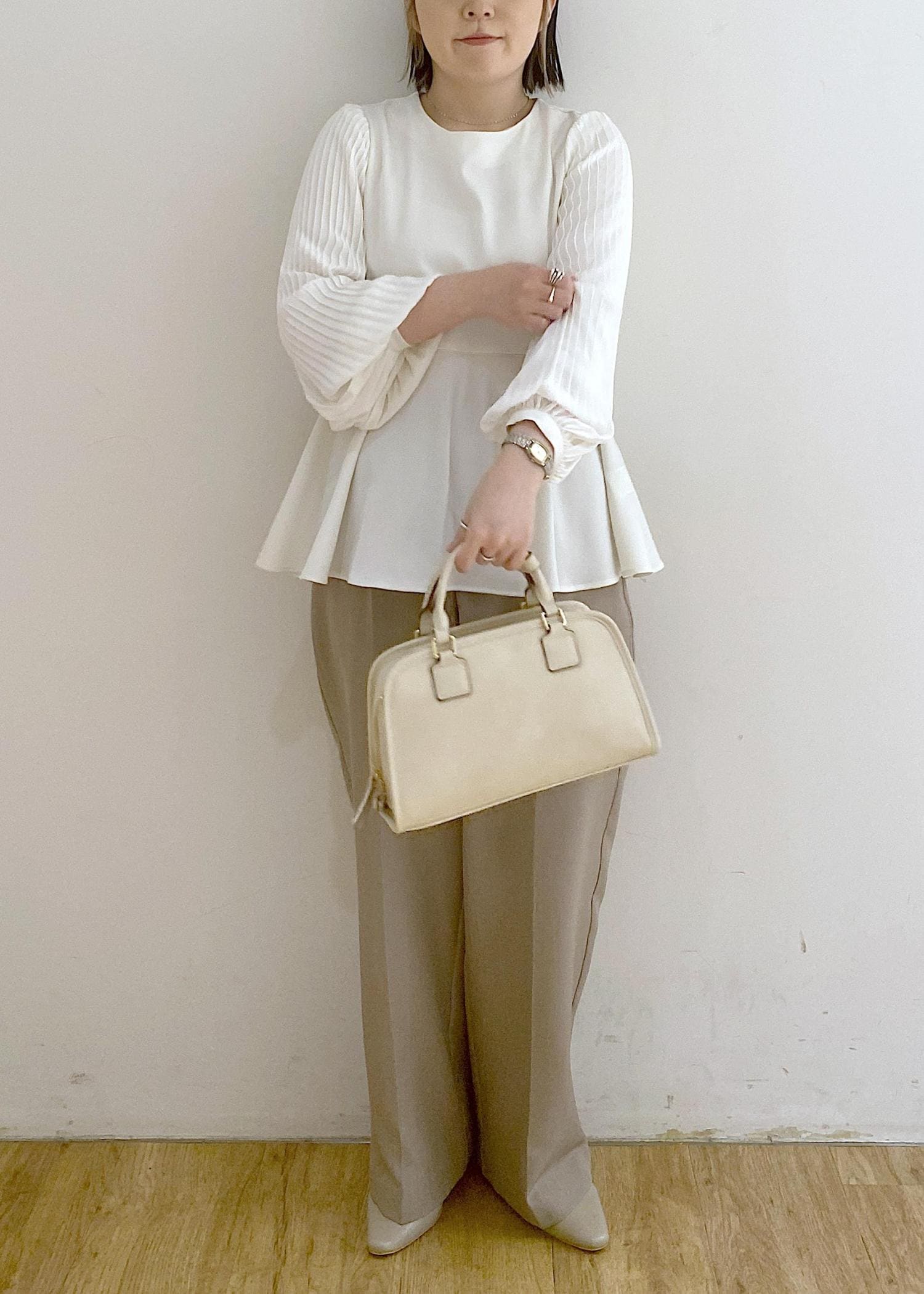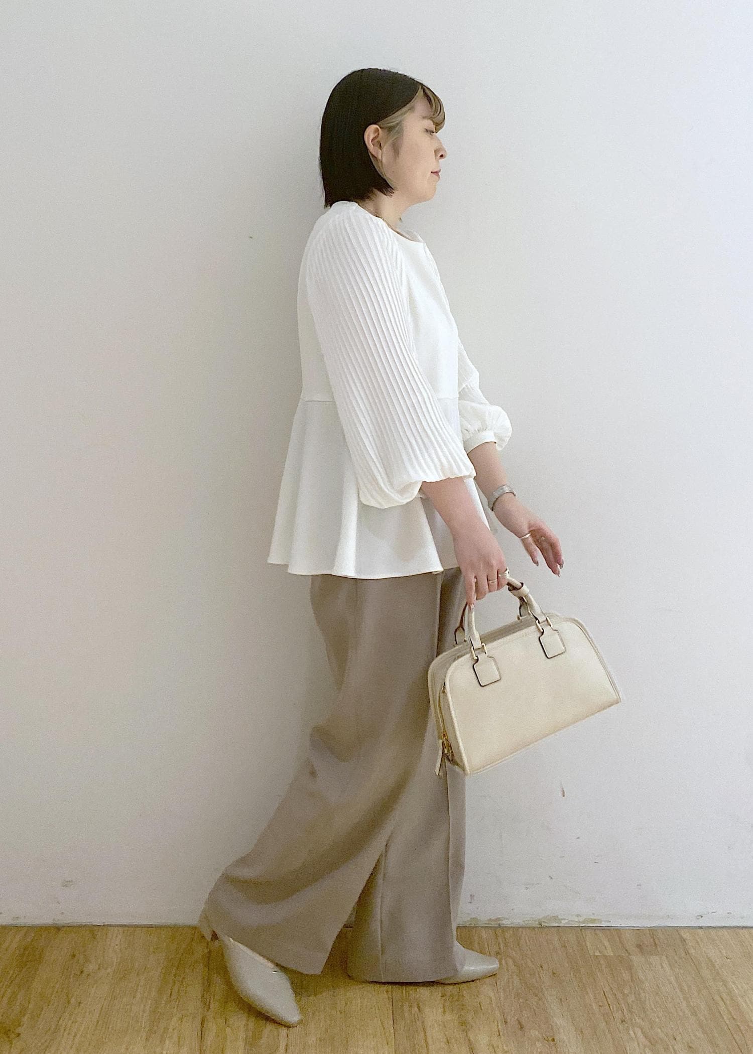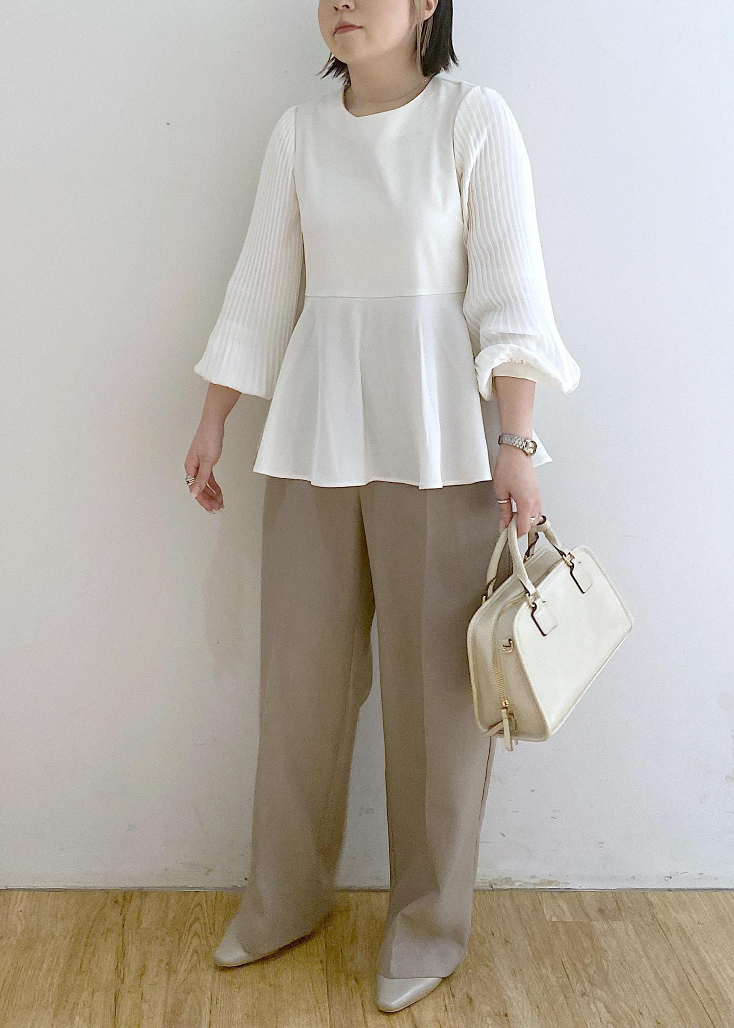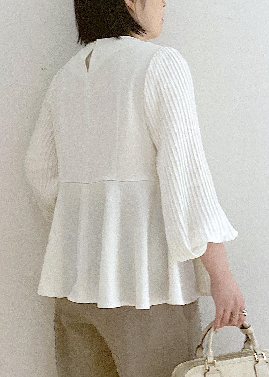 ROPÉ PICNIC袖プリーツフレアブラウスホワイト / M¥5,489レビュー156cmだとヒップまでかかる着丈でした。袖のプリーツが上品でとってもきれい☺︎ホワイトだと少し透け感があったのでインナーは明るめがおすすめです◎