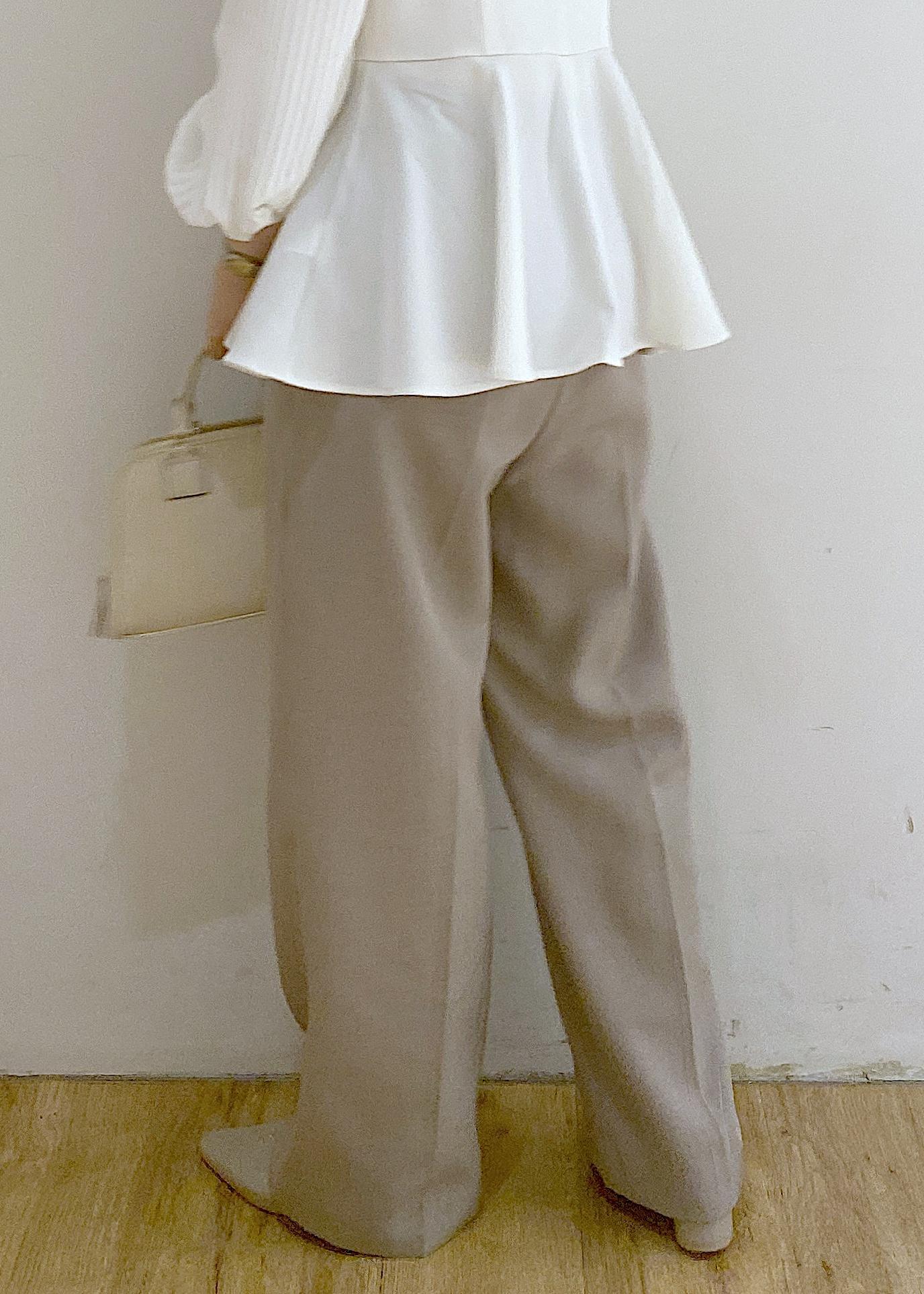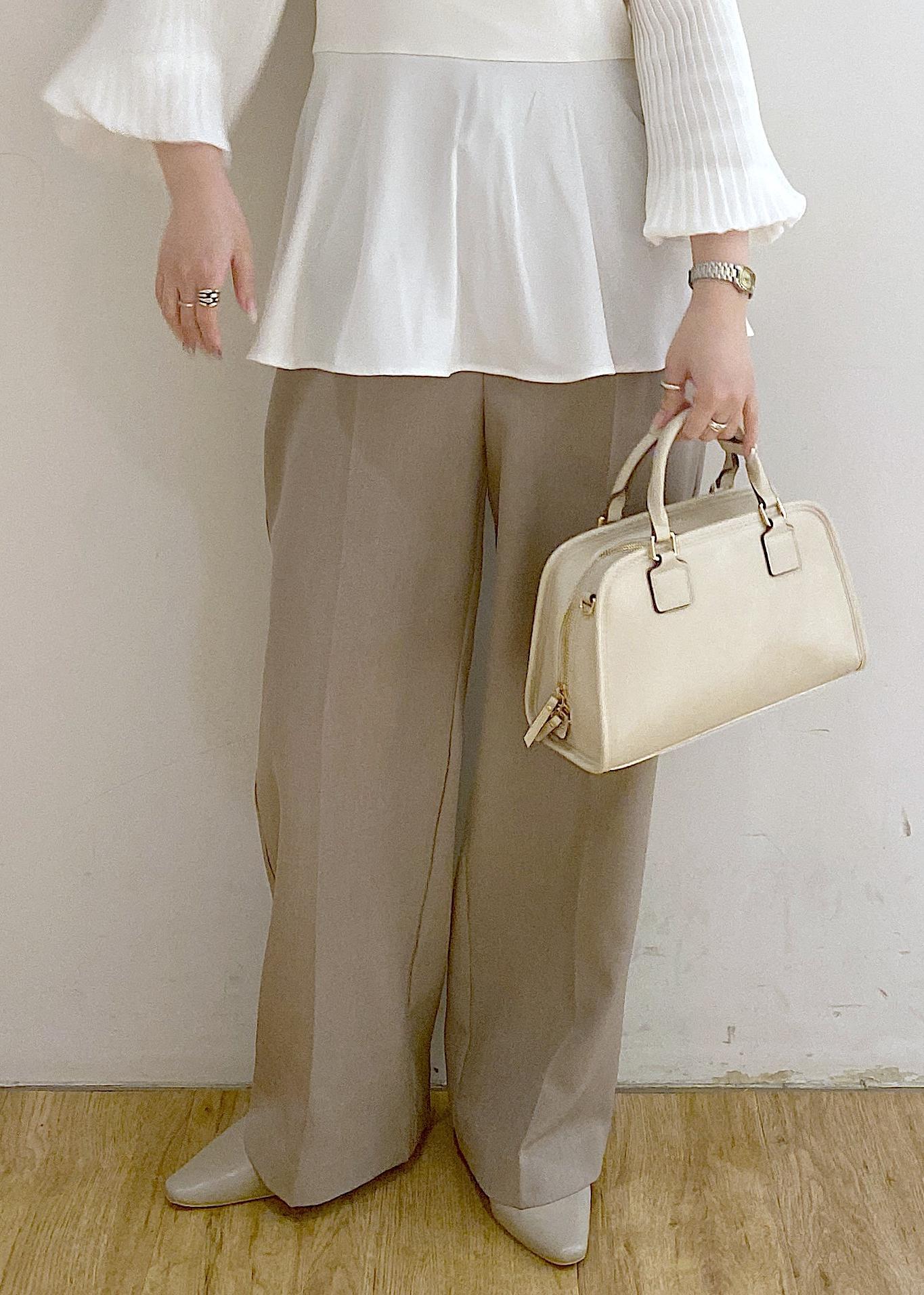 ROPÉ PICNICクリアツイルワイドパンツ/セレモニー・セットアップ対応ベージュ系 / M¥5,995レビュー156cmだと踵にかかる着丈。ウエストも少し緩いのでサイドのベルトを少し絞って着用しています!キレイめで着るならジャストサイズがおすすめです◎今回はヒールで合わせていますが、フラットシューズだと地面につきそうかなと思いました。