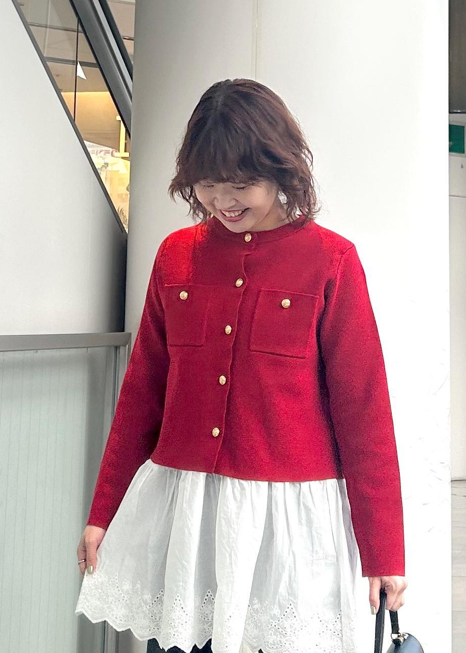 ROPÉ PICNICミラノリブ金ボタンニットカーディガンレッド / M¥5,489レビュー生地感は柔らかく、肩周りも楽に着用しやすいです。