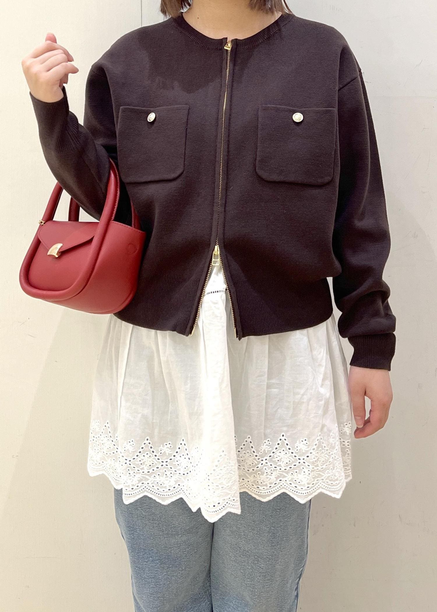 ROPÉ PICNICミラノリブダブルジップニットカーディガンダークブラウン / F¥6,490レビューダブルジップで少し開けるとすっきりした印象になります!