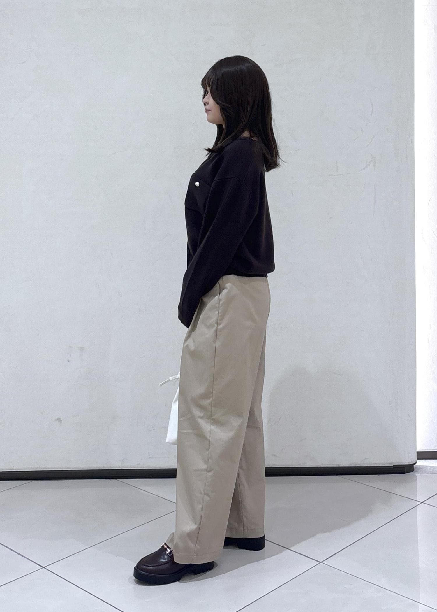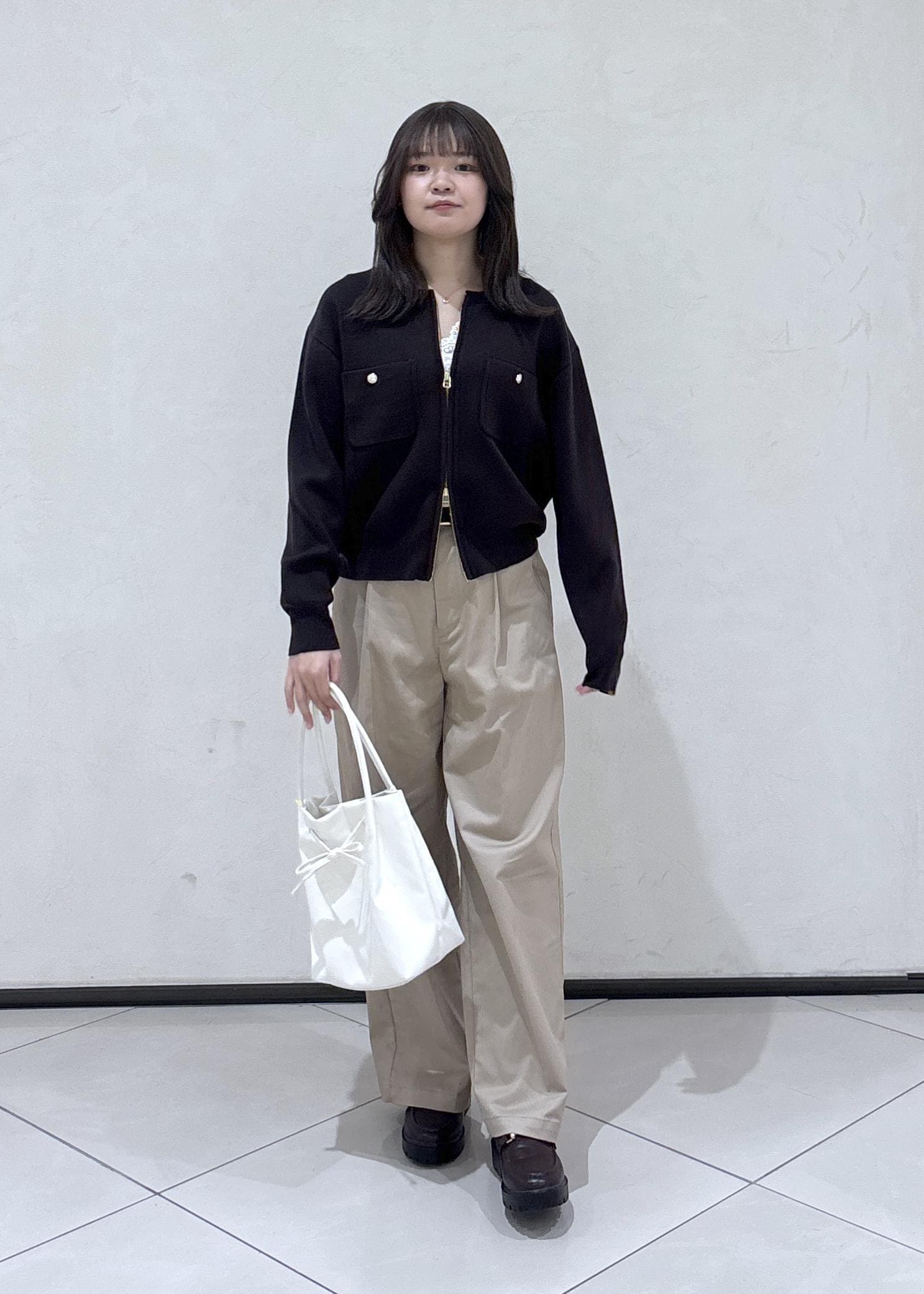 ブラウンが大好きで、春でもブラウンを着たいので、インナーにレースタンクトップと、明るい色のバッグを合わせて重たくなりすぎないコーディネートにしました!