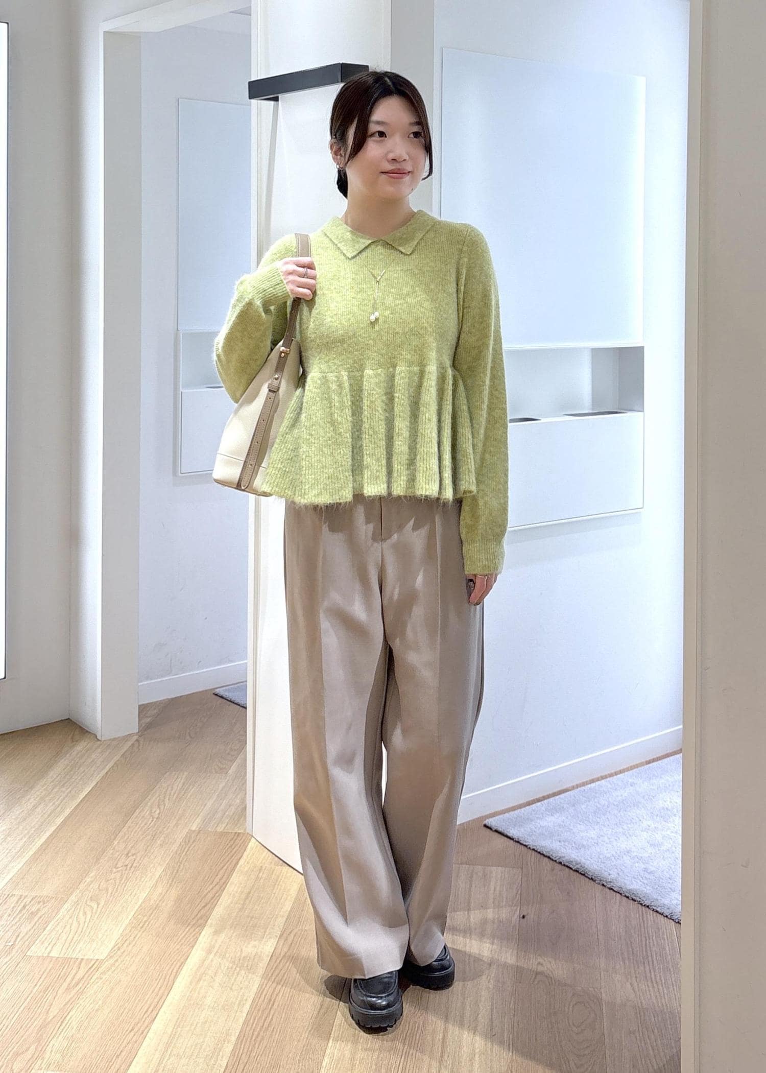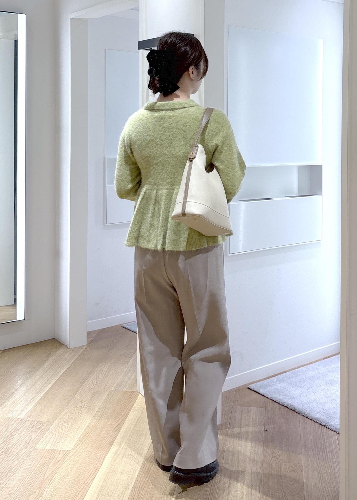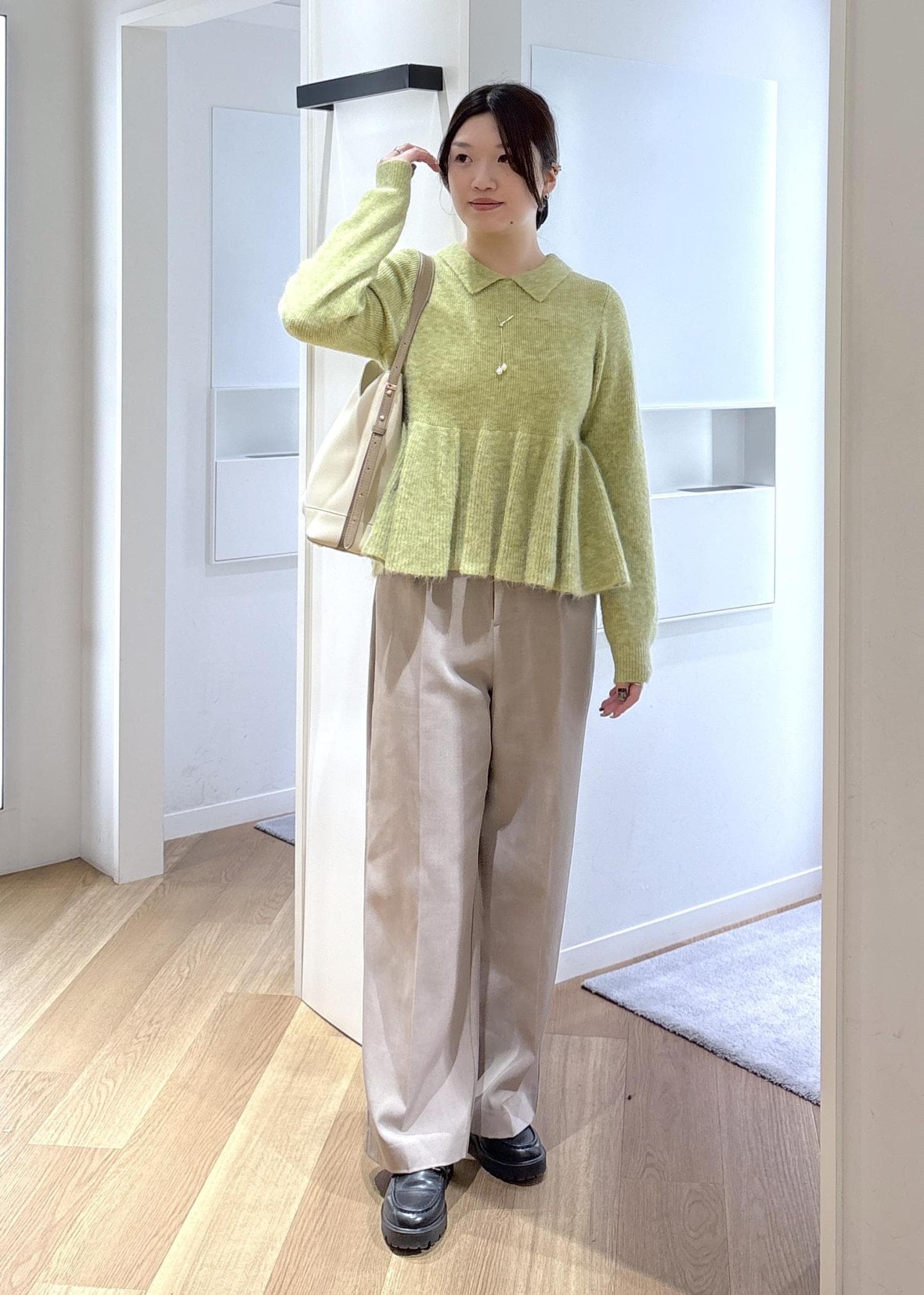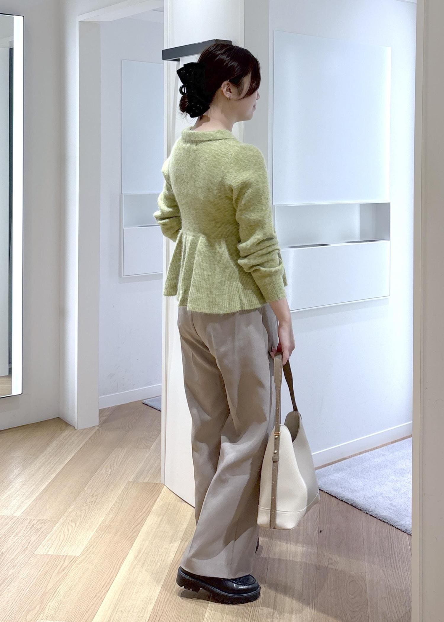 厚手すぎないので着膨れするかんじはなく、ペプラムのシルエットで腰回りをカバーしてくれます。