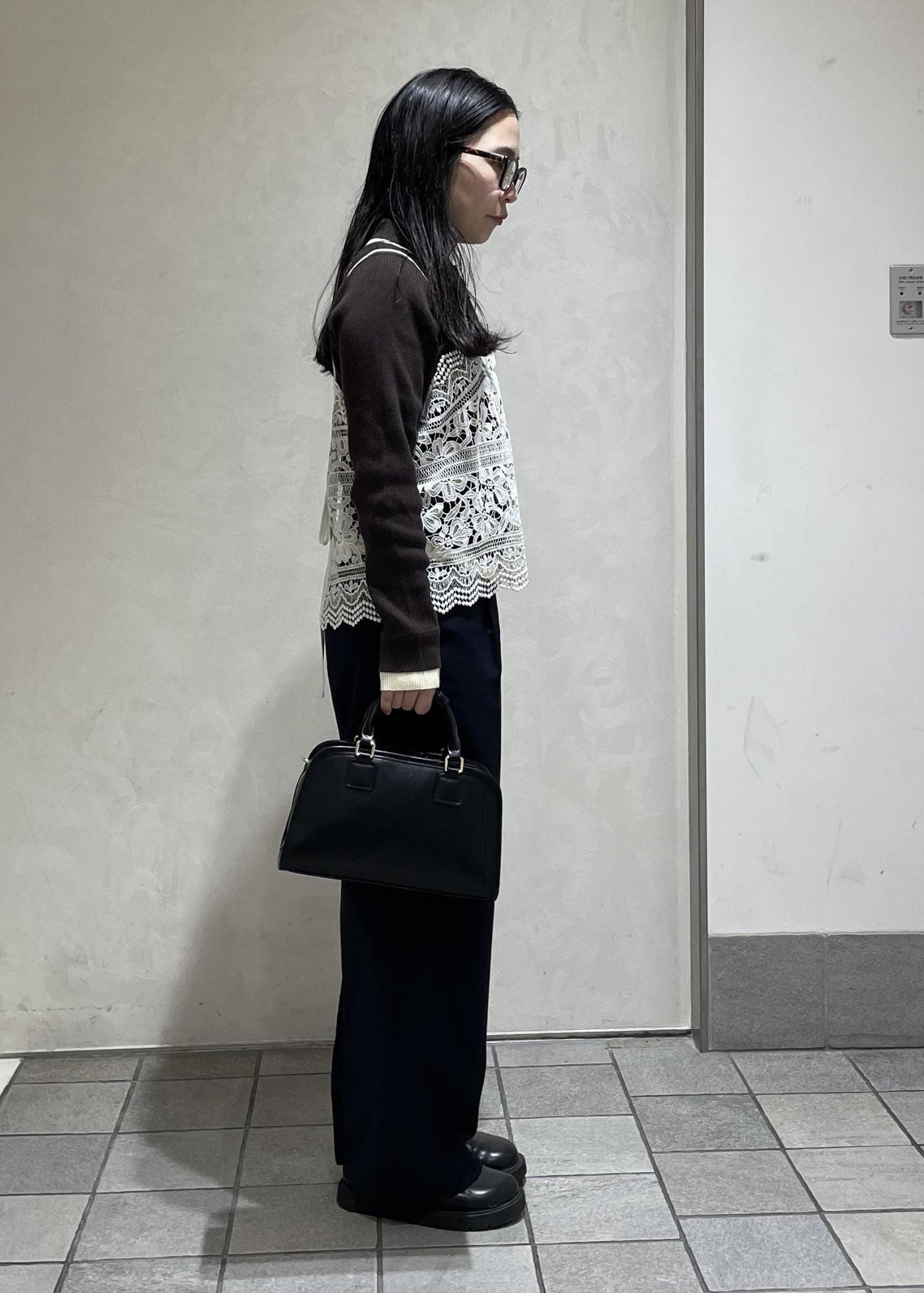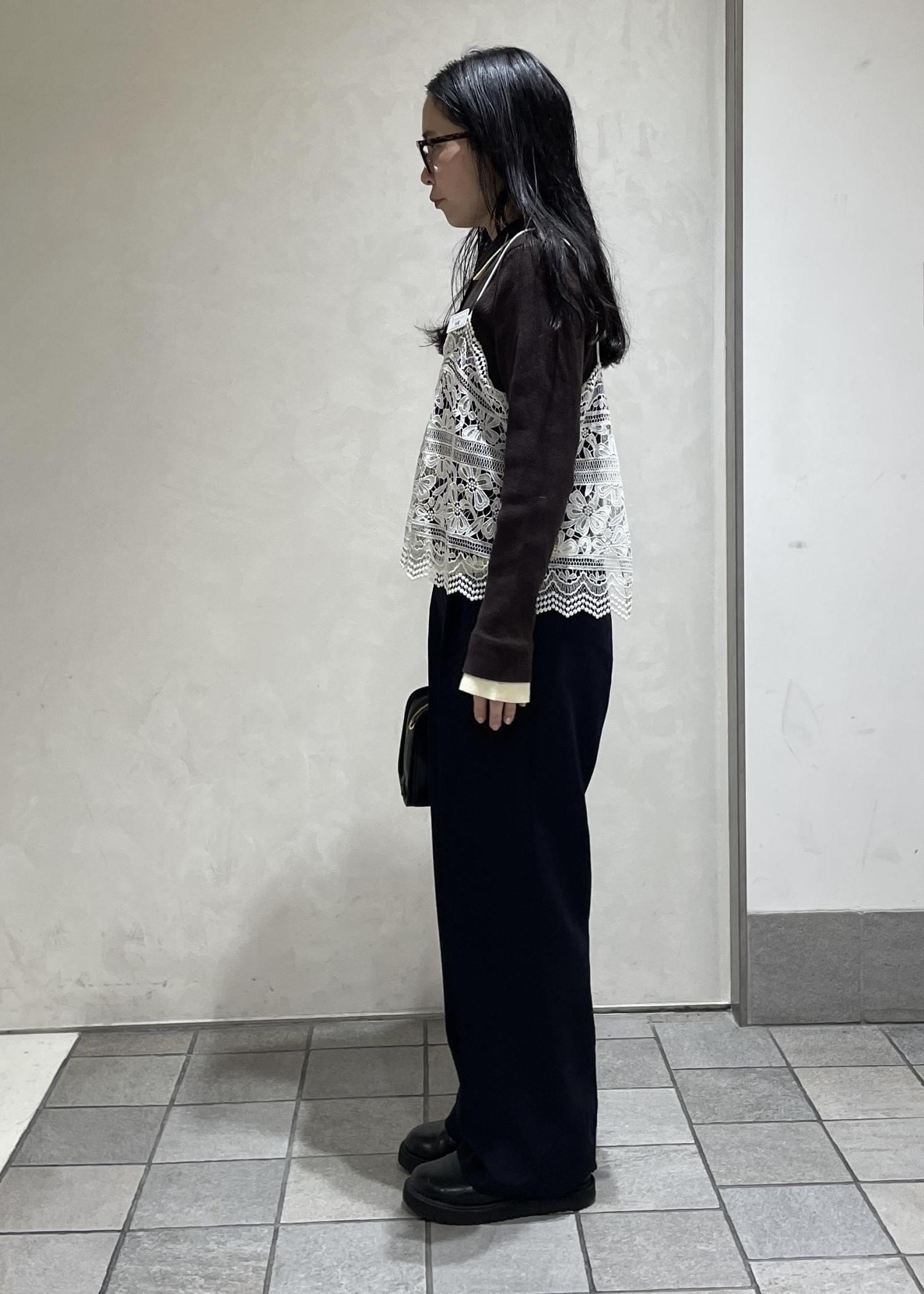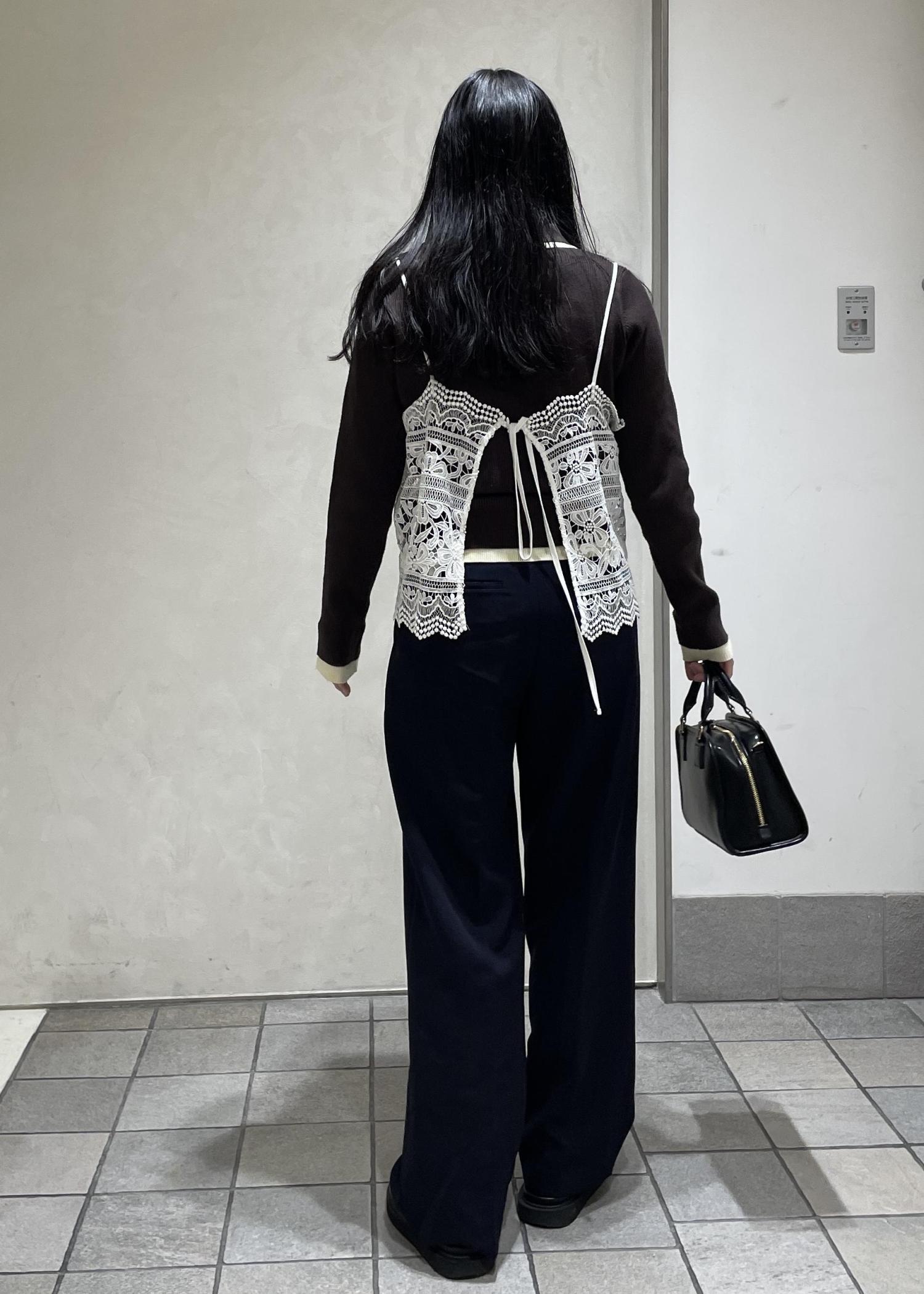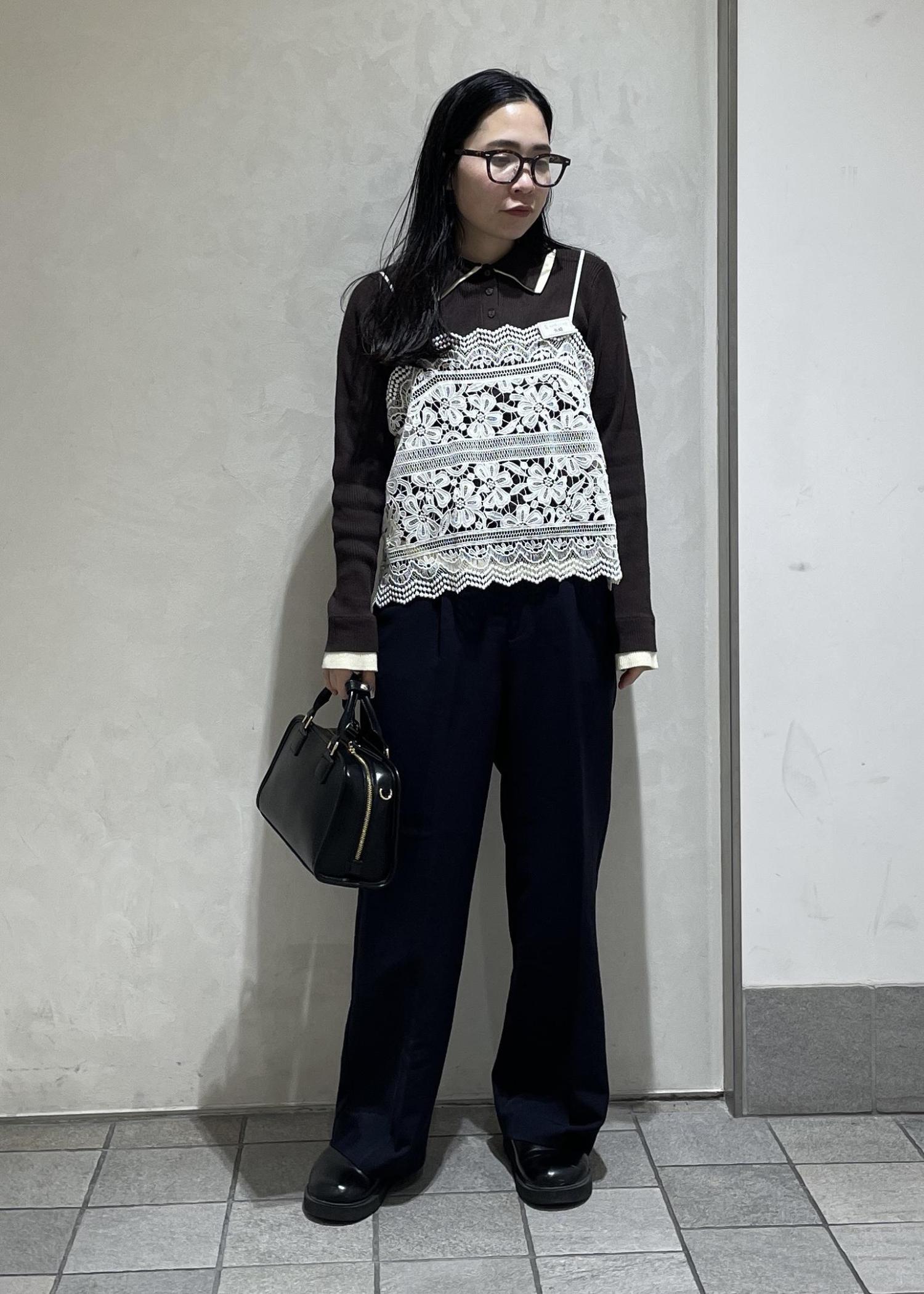 レイヤード風のポロニットも、レースビスチェと合わせて春っぽくしました!