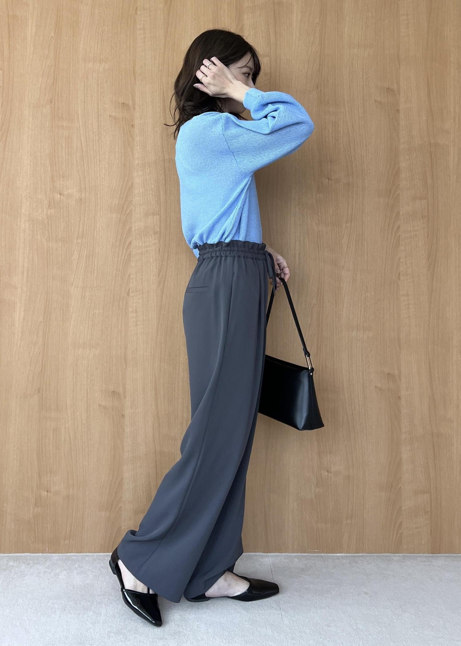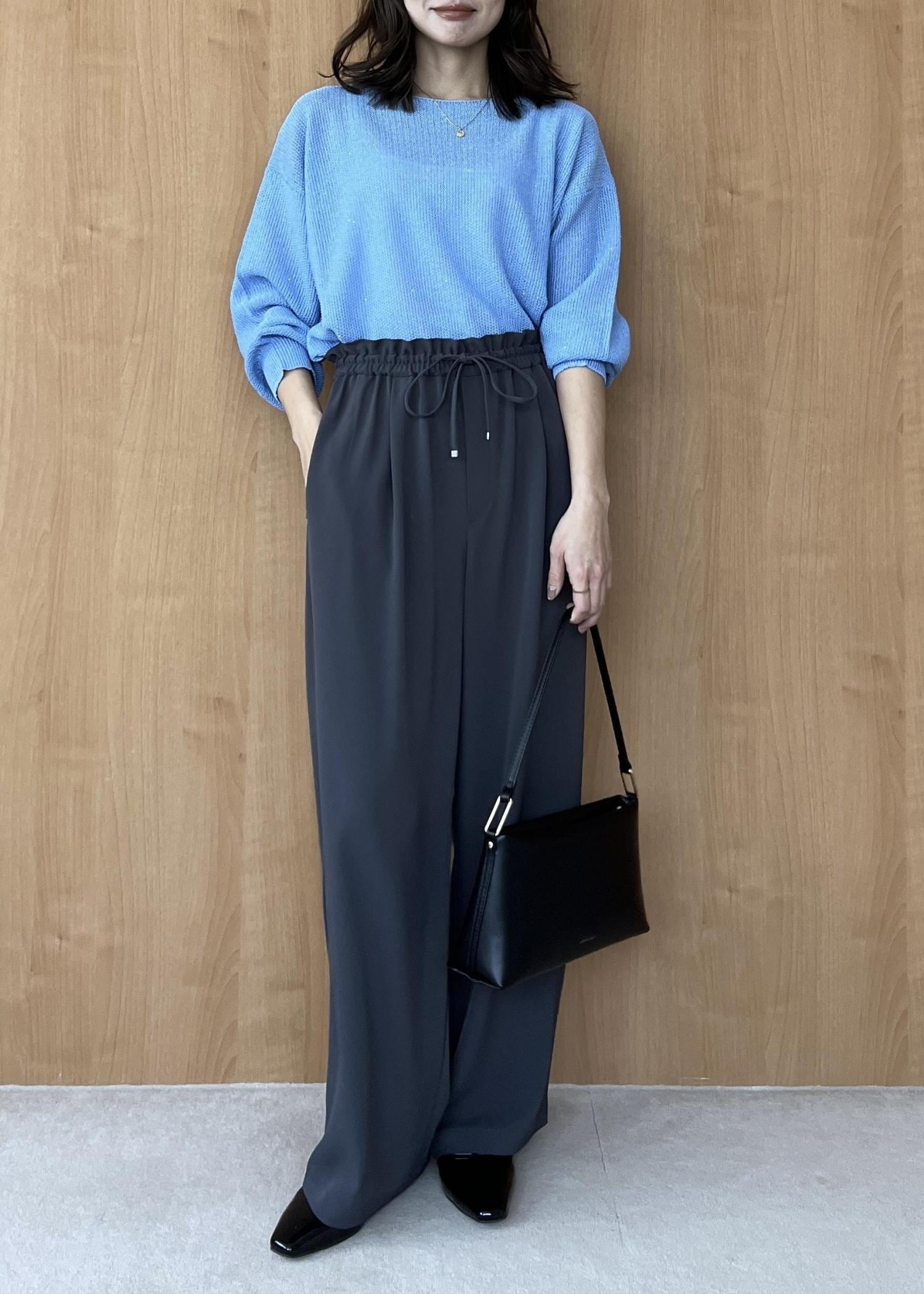 ウエスト総ゴムなので締め付け感なく着やすいサイズ感。