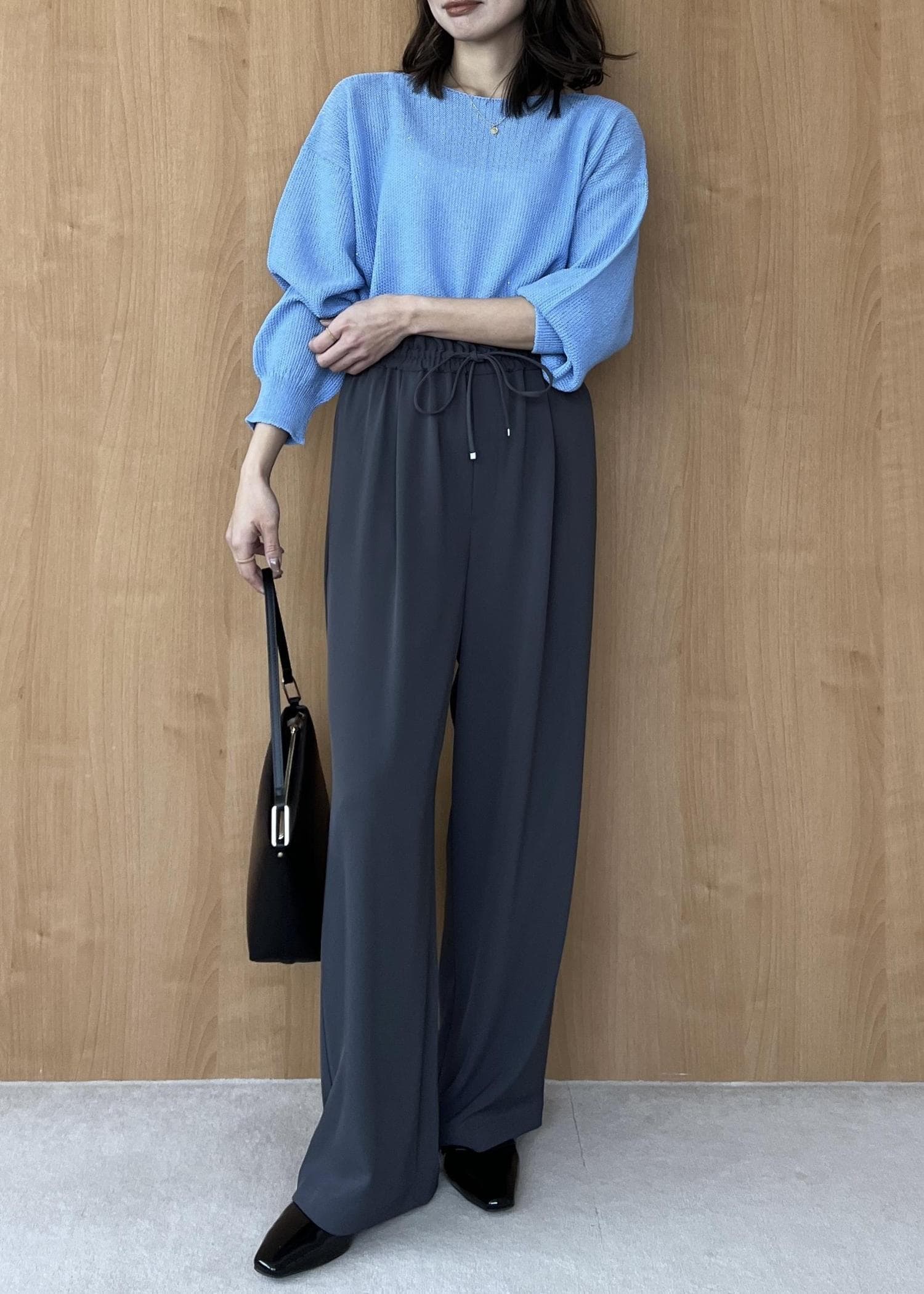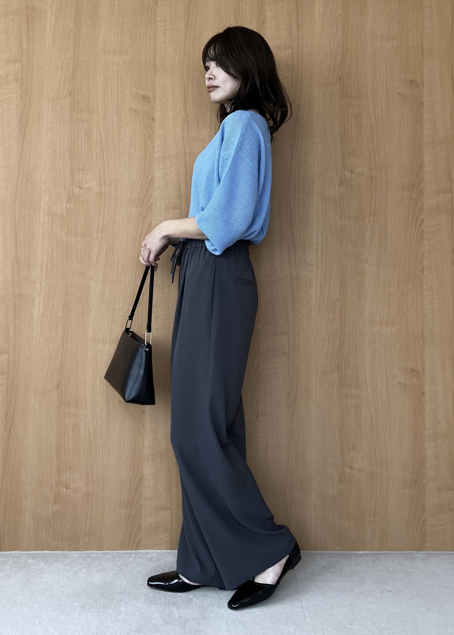 シンプルな合わせですが、カラーや素材感にリラックス感をプラスすることでラフでもきちんと見えするシンプルコーデにしました。